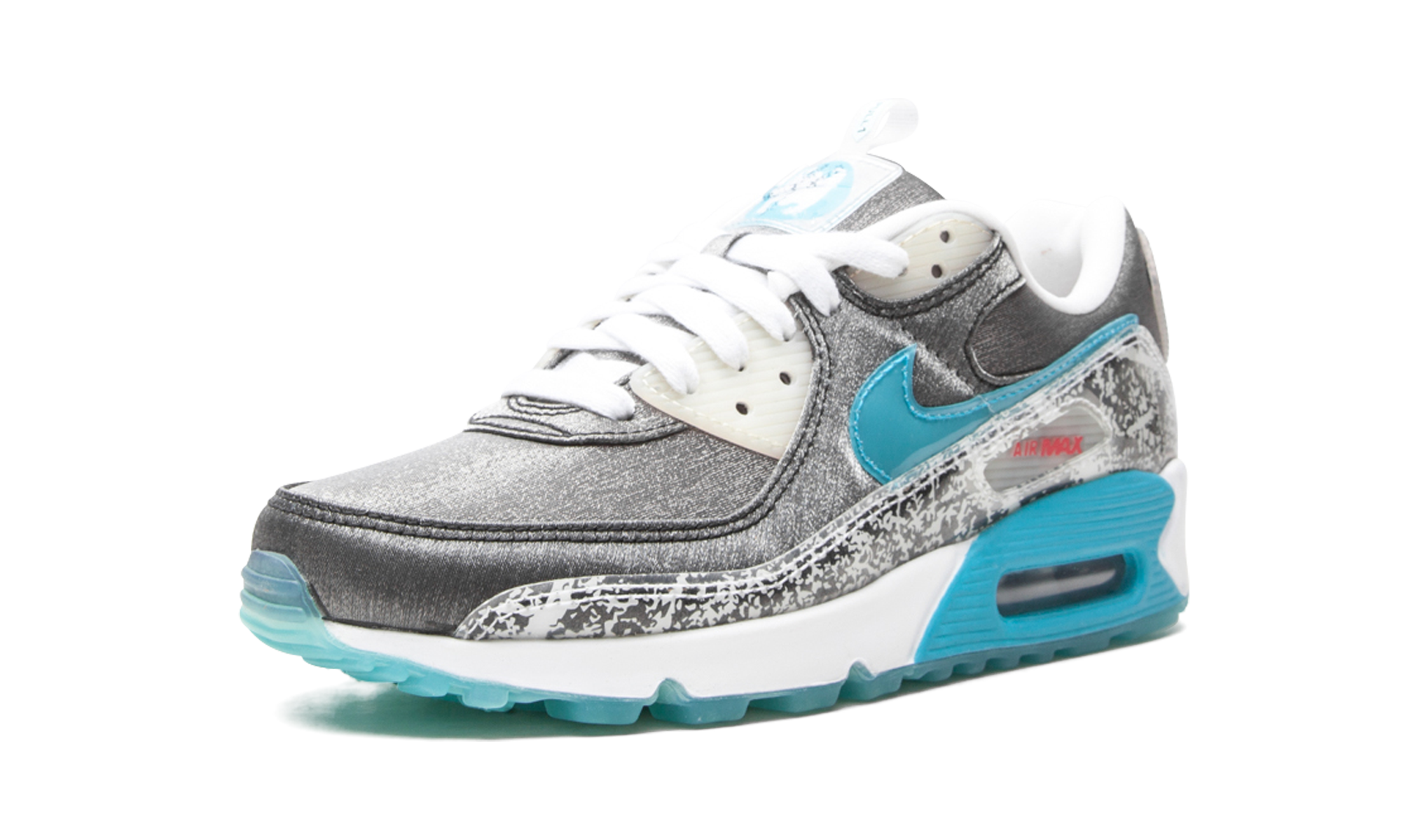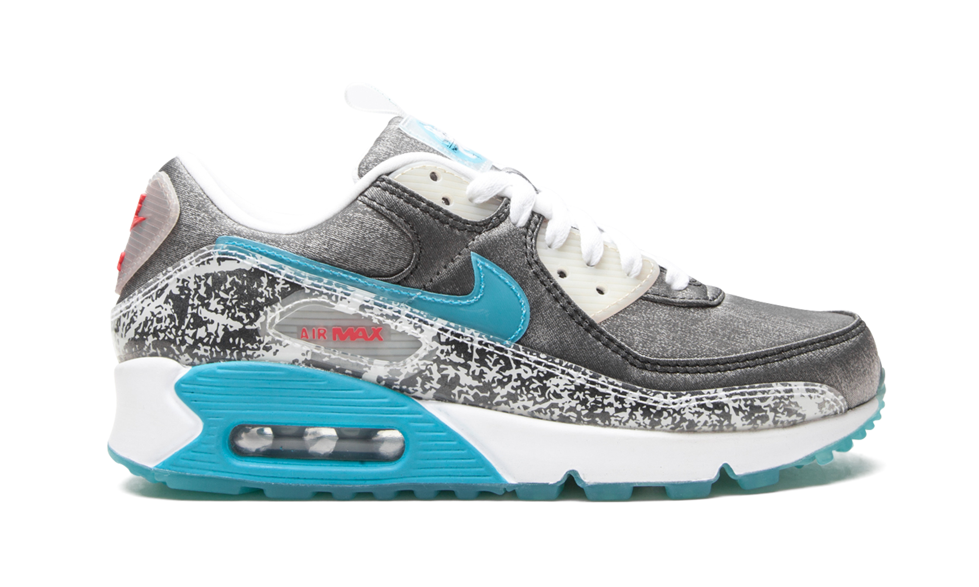 The Women’s Nike Air Max 90 “Rice Ball” is a women’s exclusive colorway of the running shoe inspired by Onigiri, a traditional Japanese dish also known as rice ball. Made from white rice, shaped into a triangle and commonly wrapped in nori, Onigiri is one of the more unusual (but delicious) inspirations Nike has ever used when designing a colorway of the Air Max 90. Design wise, the pattern found on the mudguard is inspired by plastic wrappers, a nod to how rice balls are packaged when bought from a store. A glossy teal Swoosh and red “Air Max” insignia inside of the branding window on the mid-panel and lateral heel, respectively, offer a contrast in color against the seaweed-like textured base. Red “Nike Air” branding can be found on the translucent overlay on the heel. A close-up graphic of rice grains is printed on the insole and “Pull” on the laces. A teal panel surrounds the visible Air unit in the heel of the white foam midsole to complete the look. Release date: Spring 2021. Rice Ball