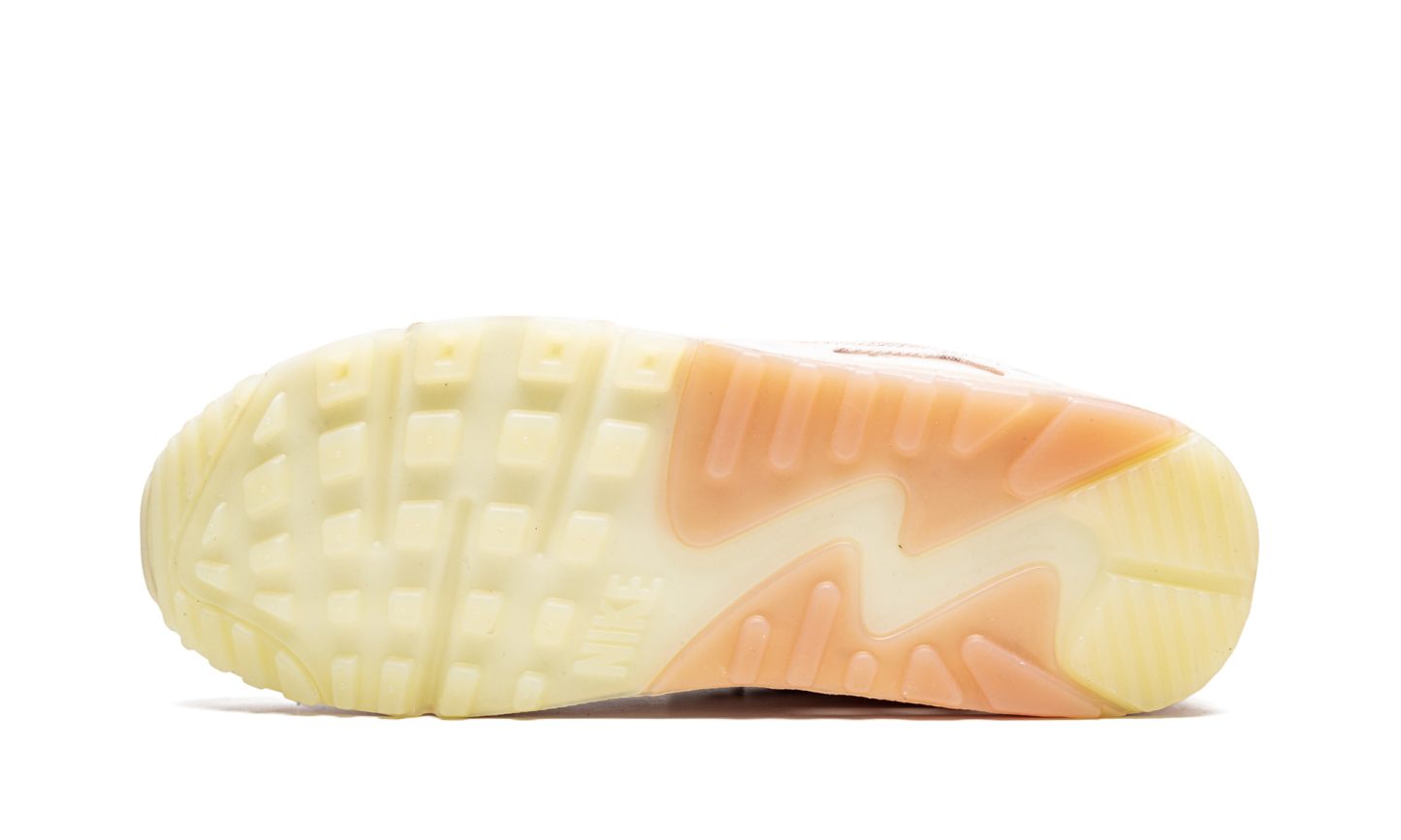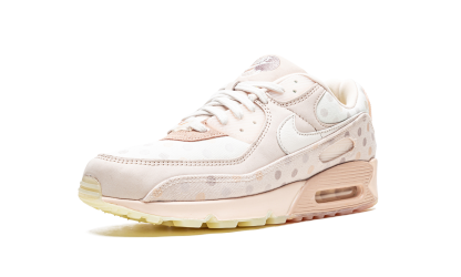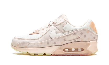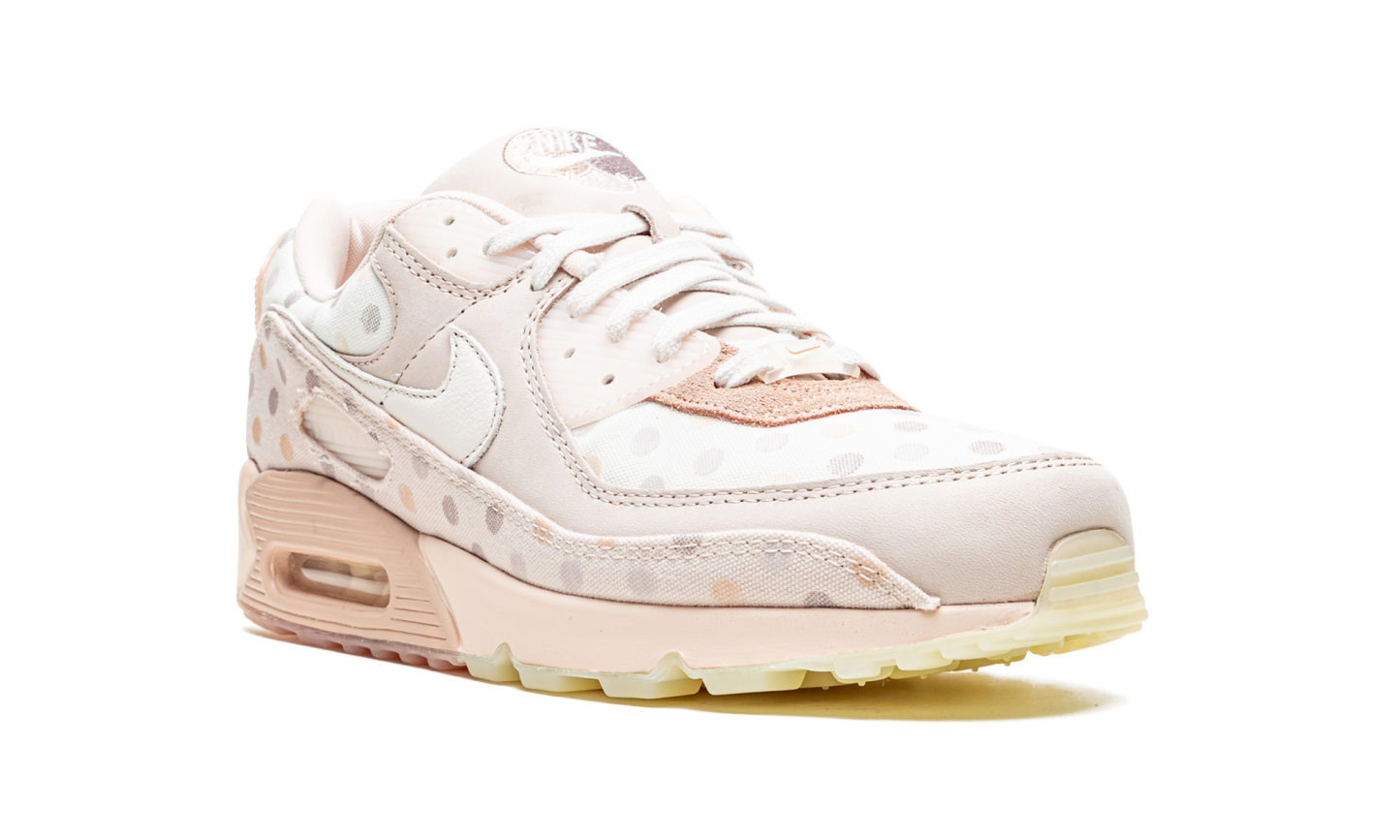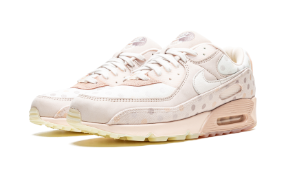 Beige leather Air Max 90 sneakers from NIKE featuring polka dot print, panelled design, signature Swoosh logo detail, logo-embroidered tongue, round toe, front lace-up fastening, rubber sole and waffle sole.