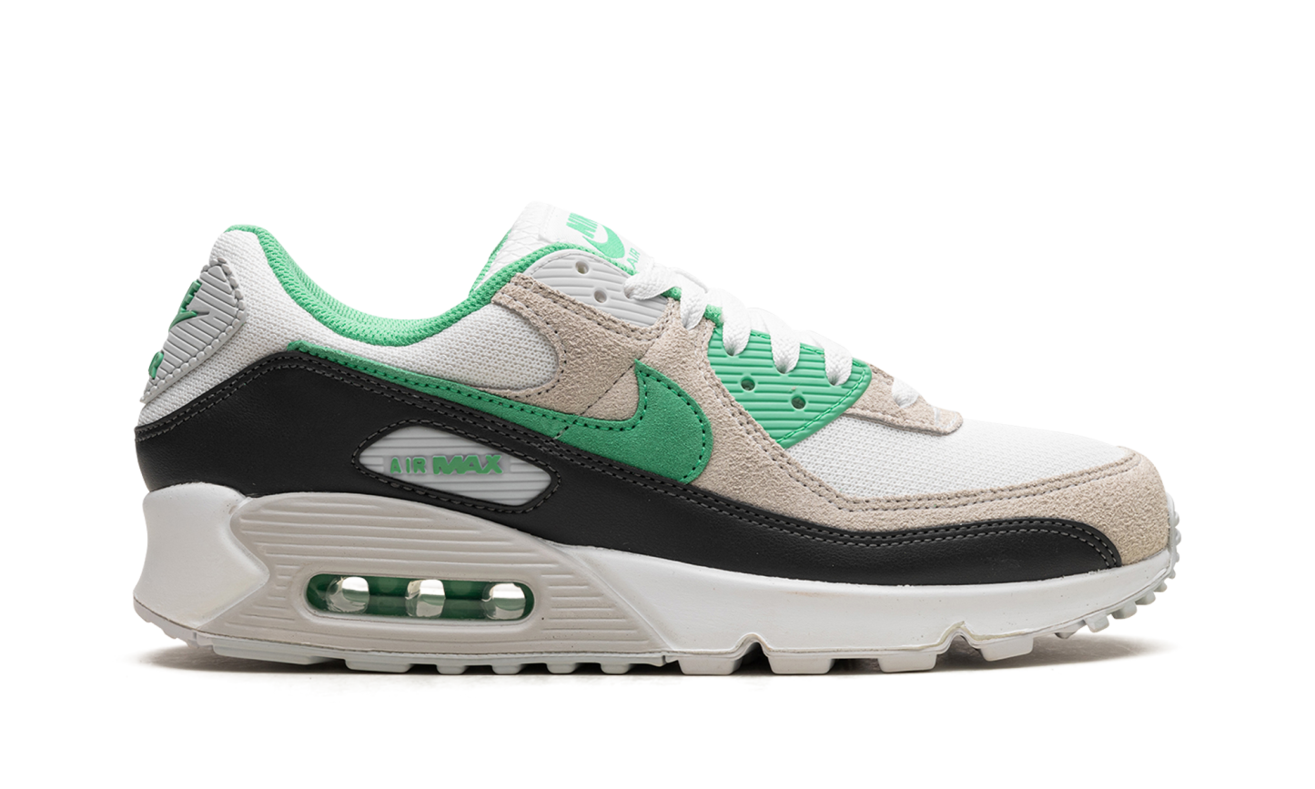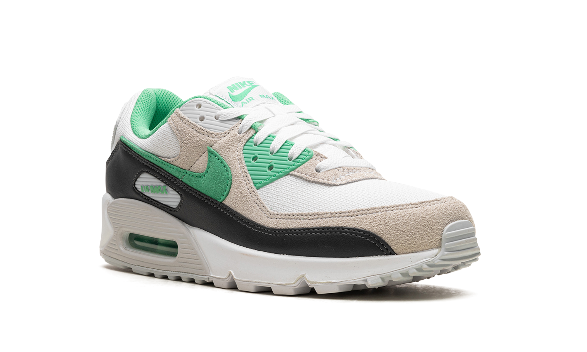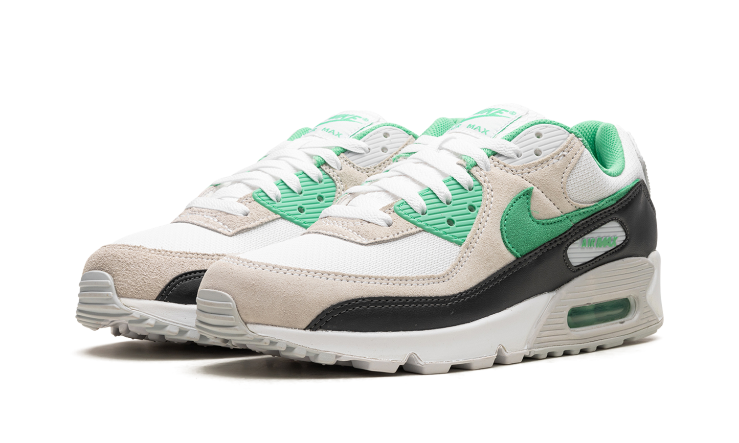 The Nike Air Max 90 “Spring Green” is a clean and classic colorway of the retro performance running shoe with green accents. The “Spring Green” is designed in a similar color block to that of the Air Max 90’s iconic “Infrared” colorway, one of the greatest looks for the shoe ever. More specifically, the “Spring Green” is complete with a white mesh base with tan suede overlays. A Spring Green suede Swoosh can be found on either side of the shoe. More Spring Green accenting lands on the eyelet panels, on the “Air Max” branding window on the lateral side of the shoe, and on the “Nike Air” logo on the heel. Underfoot, a translucent panel surrounds the Air bubble in the heel of the white foam midsole. Release date: March 27, 2023 Spring Green