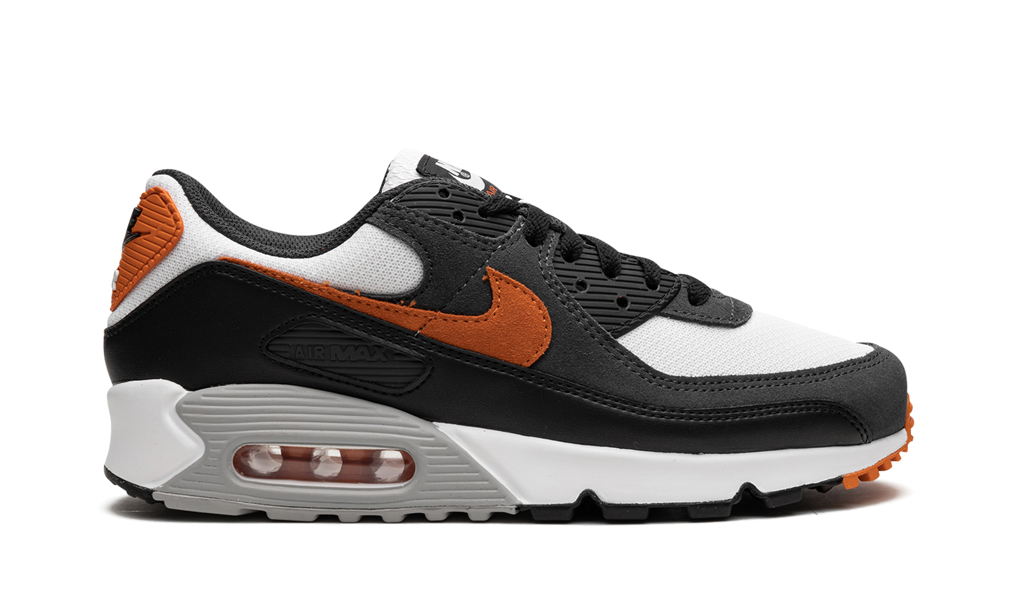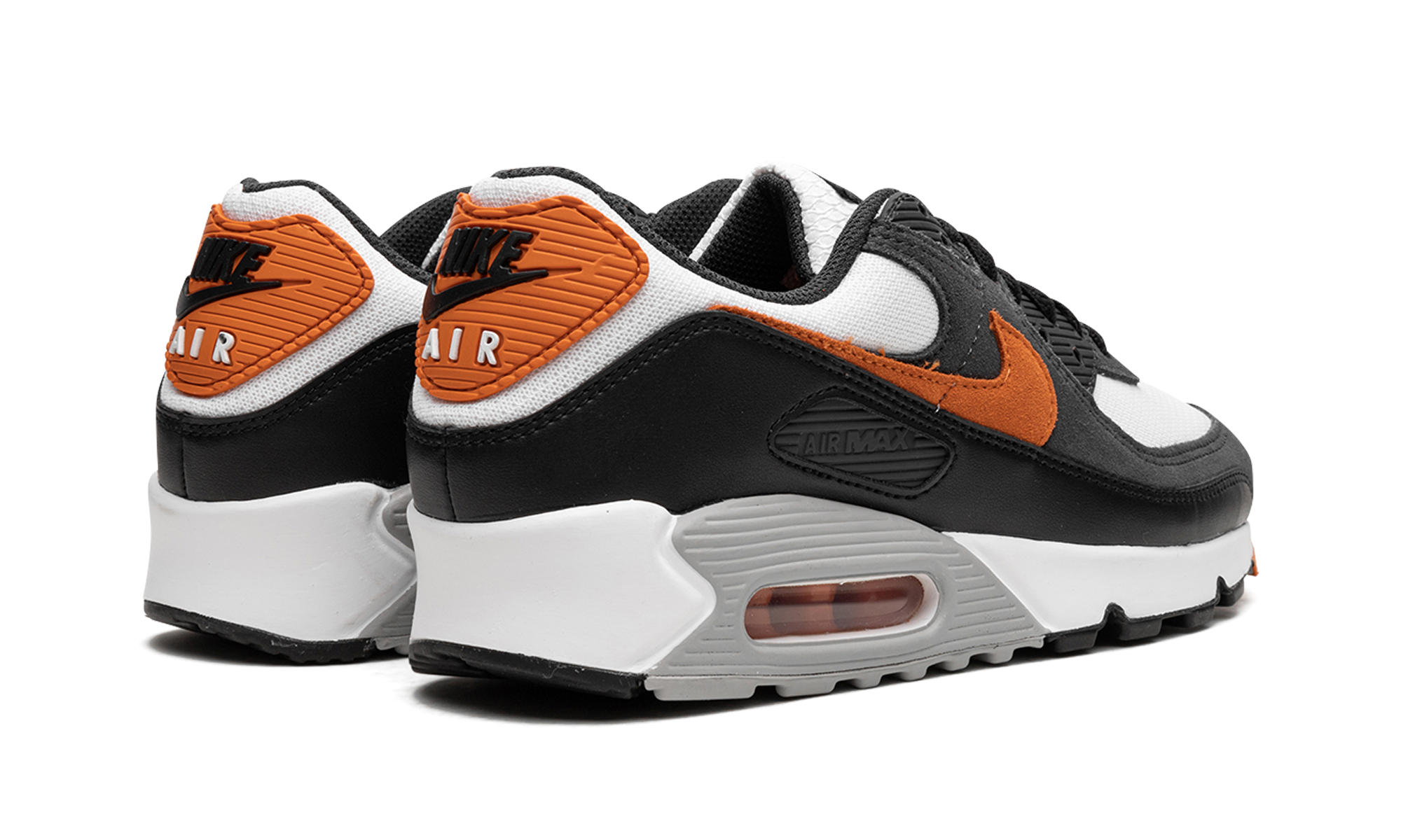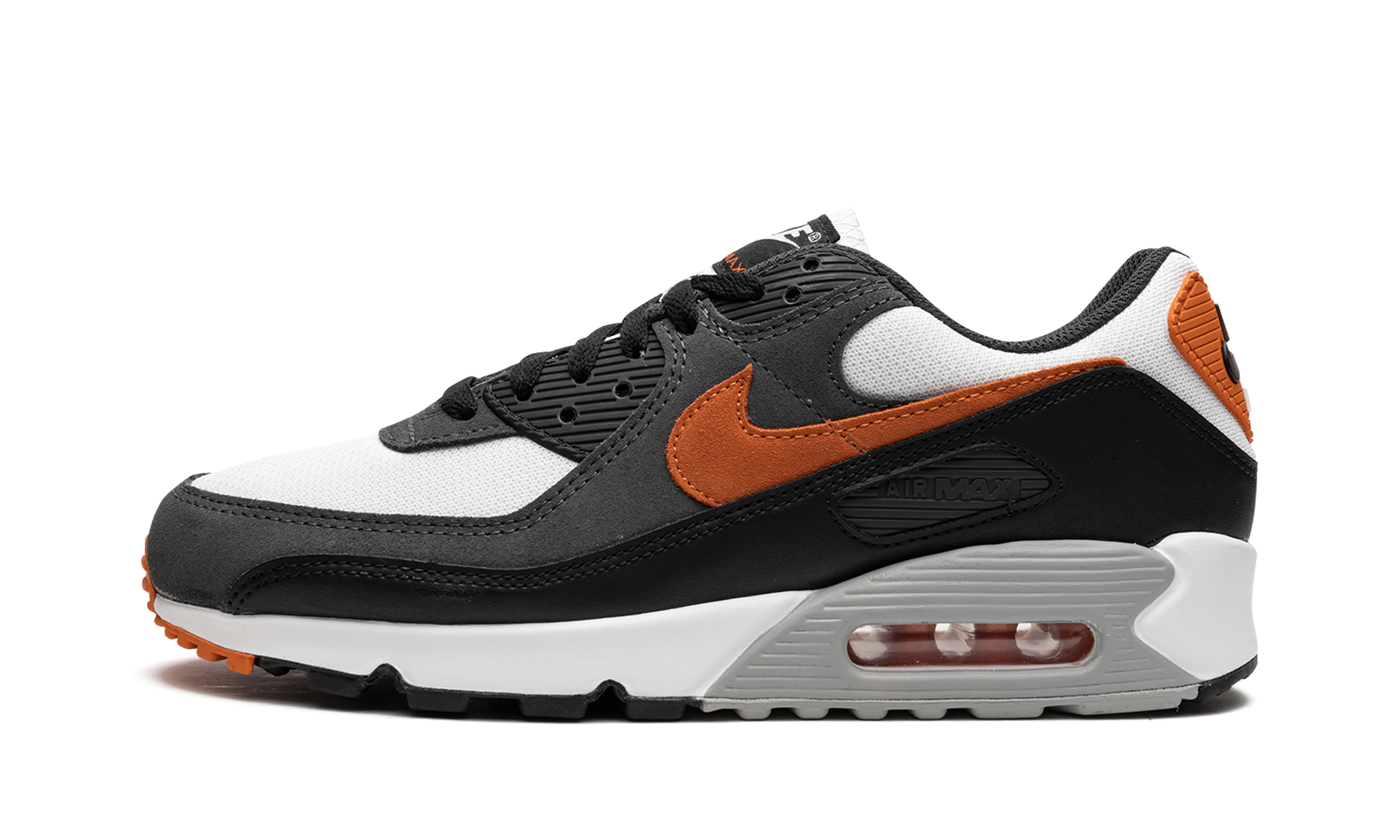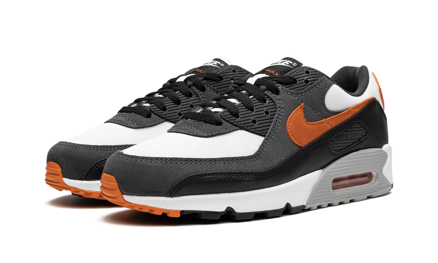 The Nike Air Max 90 “Starfish” is a colorway of the retro running shoe with an autumn-inspired look. The “Starfish” version of the Air Max 90 updates the popular, old school performance running and lifestyle sneaker with a white mesh base and a burnt orange suede Swoosh. A dark grey synthetic nubuck mid-panel overlay and a black leather mudguard add to the design. Black “Nike Air” branding is displayed on the heel and “Nike Air Max” detailing is found on the tongue tag. A grey panel surrounds the Air bubble in the heel of the white foam midsole. Starfish