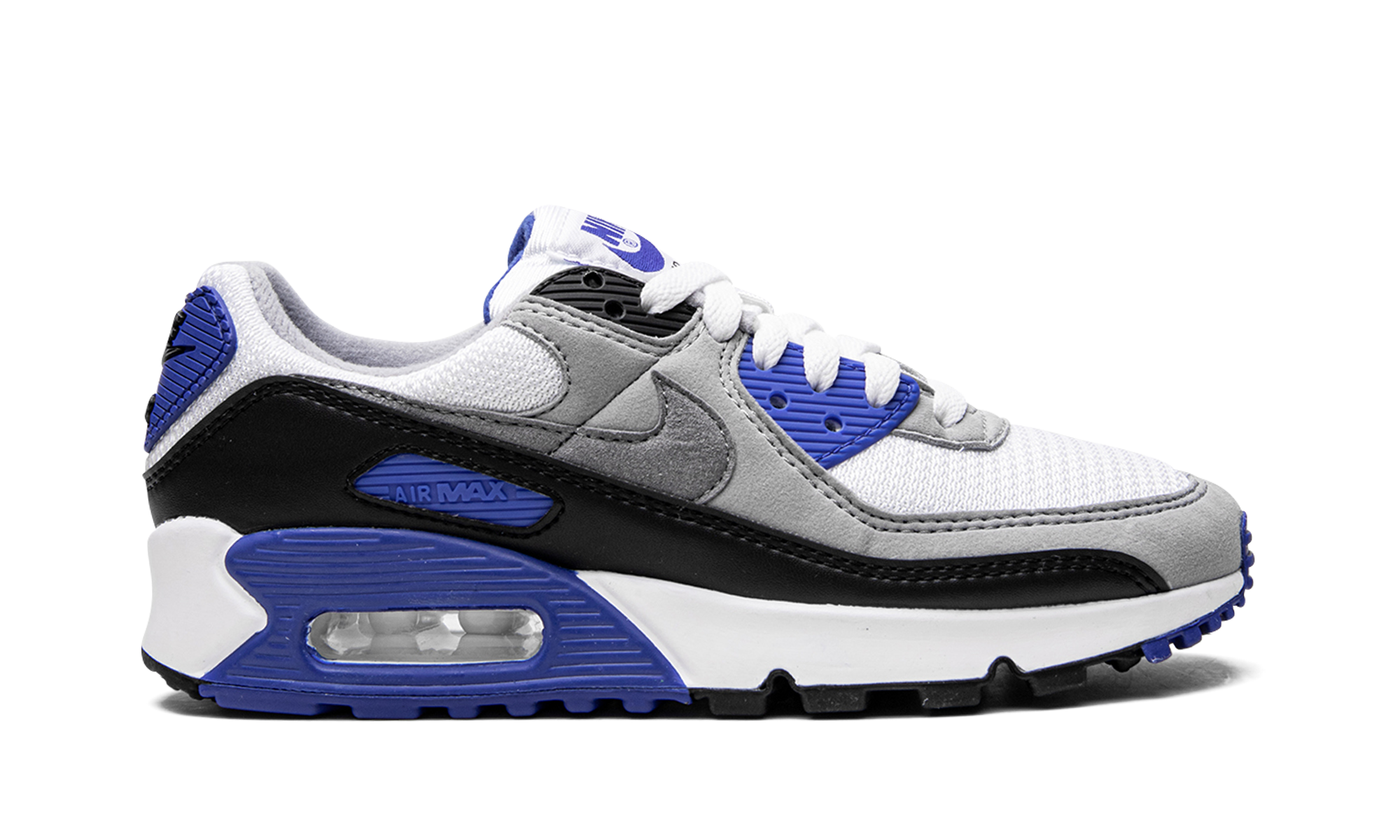 The Women’s Nike Air Max 90 “Hyper Royal” is the women’s sizing of the “remastered” silhouette that was released in Spring 2020. Featuring a slimmed down mesh toe box and a return to the materials used on early versions of the shoe, this Air Max 90 Recrafted sports a light grey suede overlay on the toe and mid-panel. A tonal Swoosh covers the mid-panel and smooth black leather dots the mudguard. Nike opts for a Hyper Blue “Air Max” branding window on the heel and black “Nike Air” detailing on the blue heel overlay. The look is finished off with visible Air cushioning in the heel, which provides optimal all-day comfort. Hyper Royal