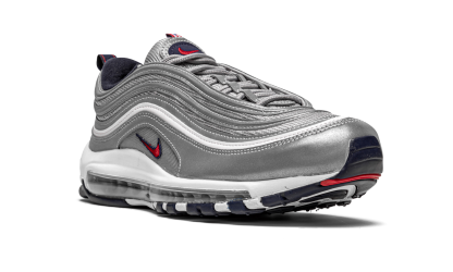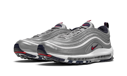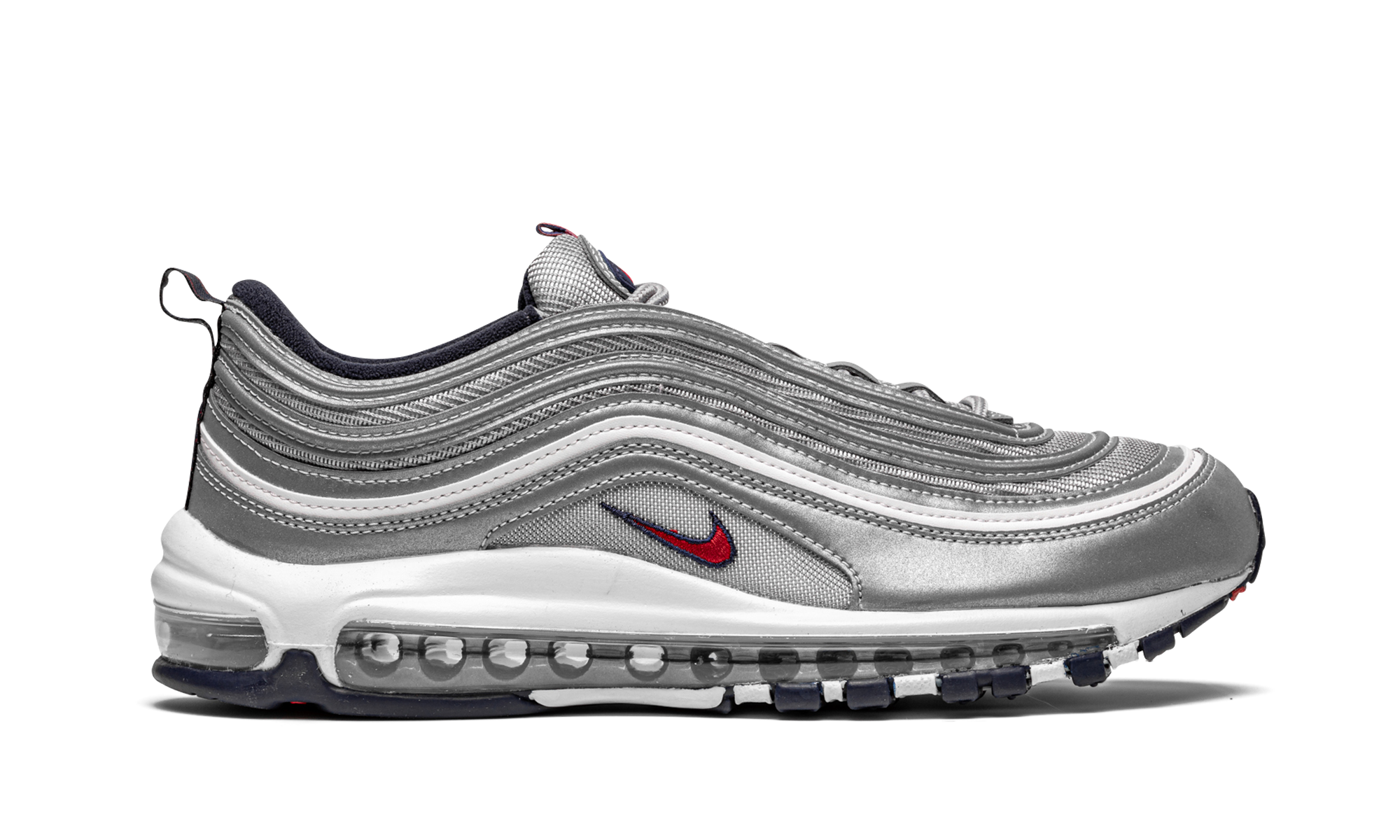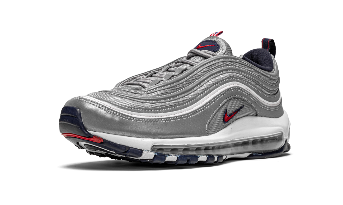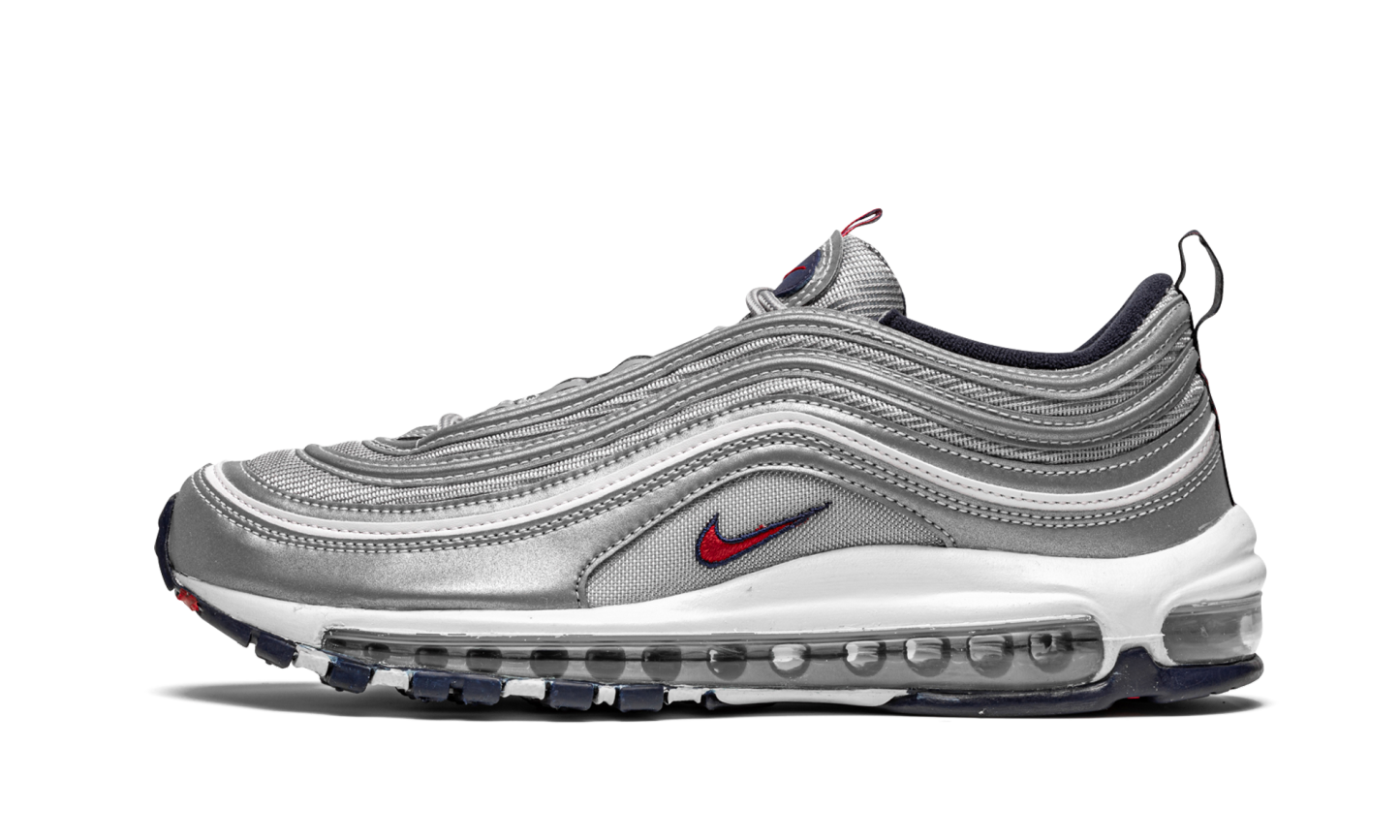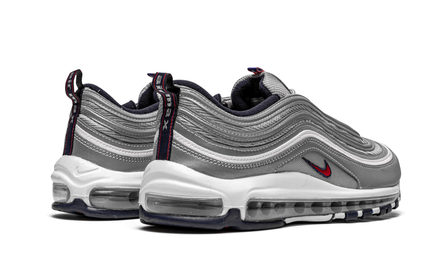 The Nike Air Max 97 “Puerto Rico” is a special makeup of the performance running shoe that honors Puerto Rican culture. Released by Nike just ahead of the National Puerto Rican Day Parade held in New York City in June 2021, the “Puerto Rican” edition of the Air Max 97 mimics the styling of the model’s iconic original colorway, the “Silver Bullet.” Like the “Silver Bullet,” the “Puerto Rico” has metallic silver reflective leather panels layered over a tonal mesh base on the upper. Nike adds the Puerto Rican flag to the pull tab on the tongue and places an embroidered red Swoosh on either side above the white foam midsole. An additional red Swoosh appears on the navy blue overlay on the top of the metallic silver mesh tongue. Silver “Air Max” branding can be found on the back of the shoe. The full-length visible Air cushioning system within the white foam midsole is consistent with the original design of the Air Max 97. A small Puerto Rican flag appears on a silver bubble on the outsole. Release date: June 5, 2021 Puerto Rico