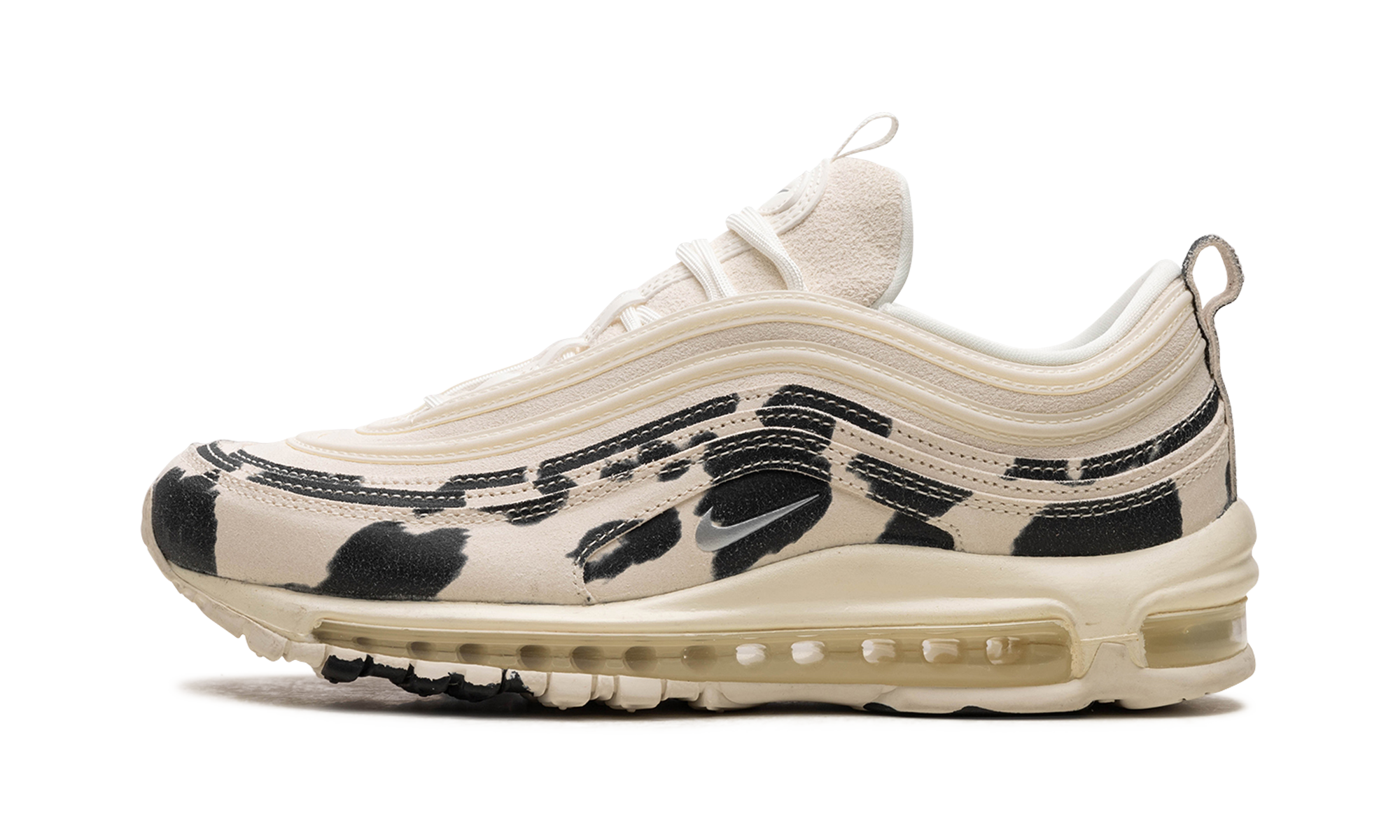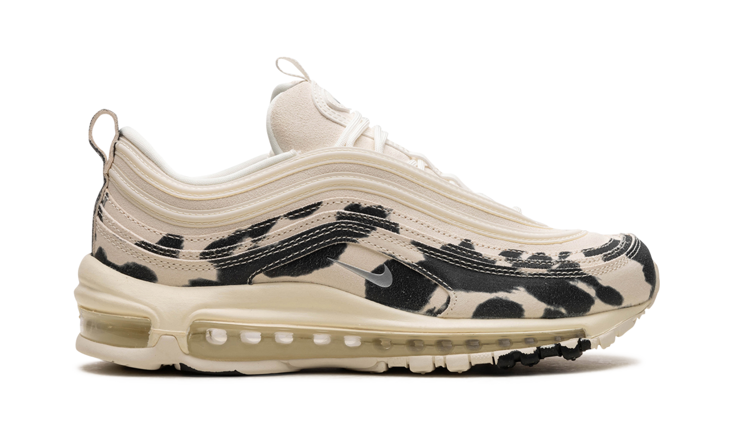 The Women’s Nike Air Max 97 “Cow Print” is a women’s-exclusive colorway of the retro performance running and lifestyle shoe with unique cow print on its design. Released in 1997, the Air Max 97 has been beloved by generations of enthusiasts who have come to appreciate the model’s sleek design and comfort. Here, the “Cow Print” colorway features an eye-catching cow print pattern on the shoe’s wavy suede overlays and suede mudguard. Classic Air Max 97 branding elements are seen on the nylon heel tab and tongue. A full-length visible Air cushioning unit in the midsole sits above the rubber outsole, the latter which also receives a cow-spot treatment. Release date: June 3, 2023 Cow Print