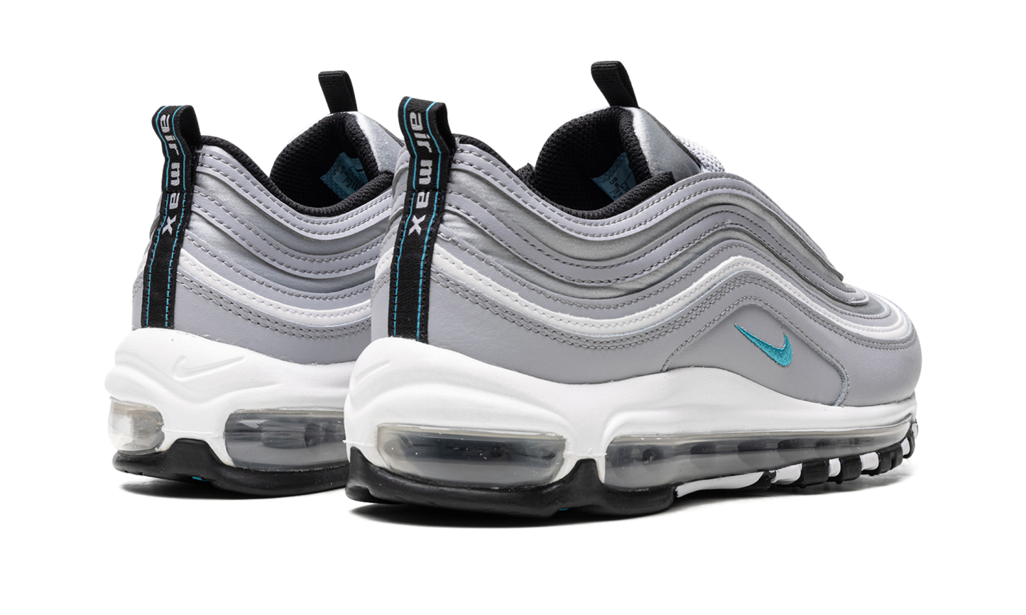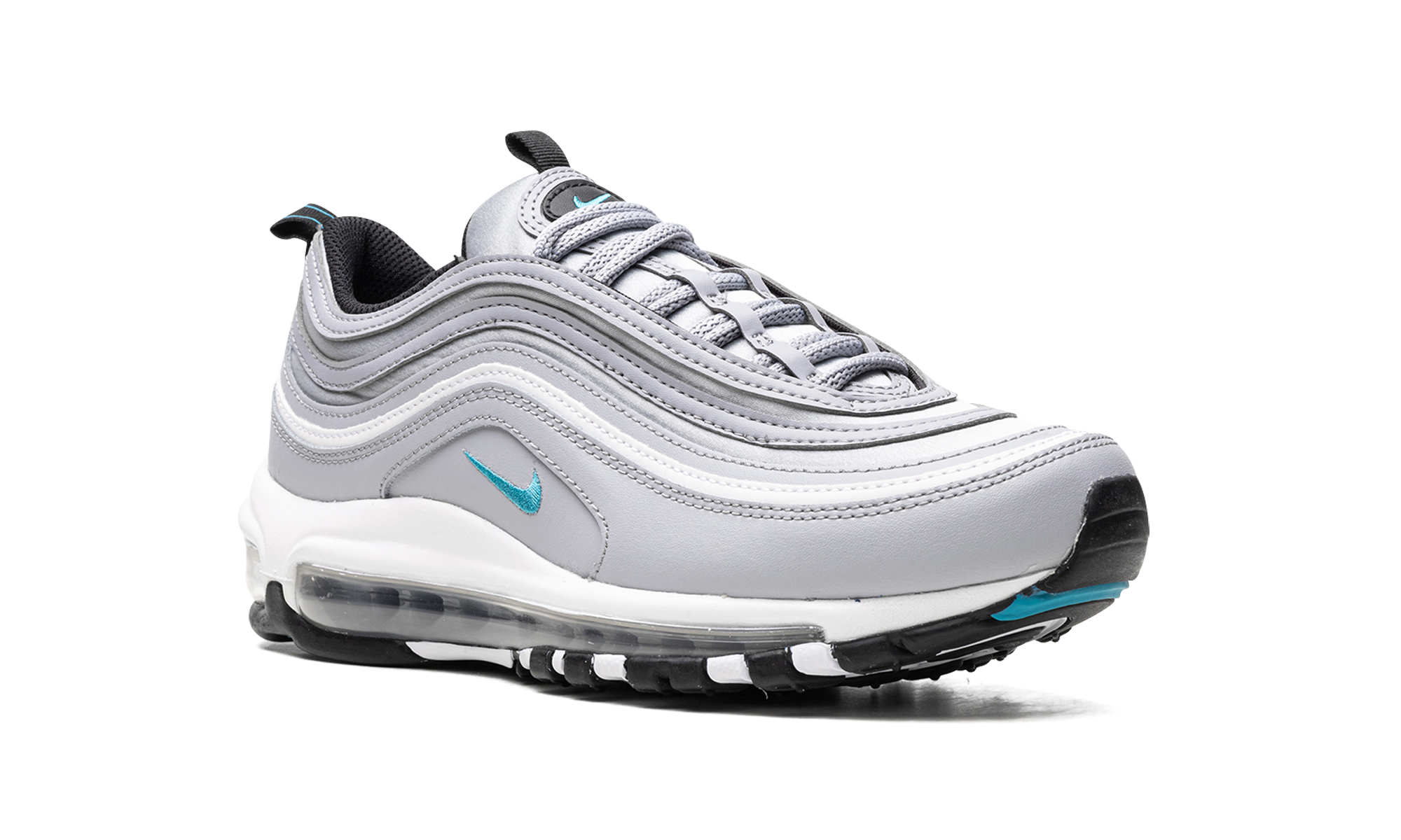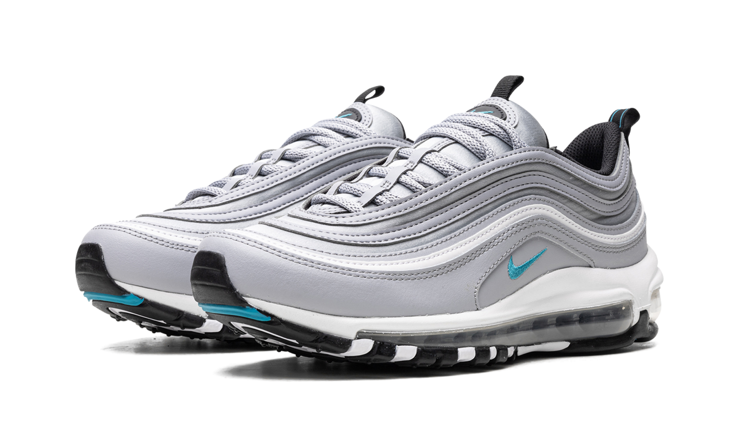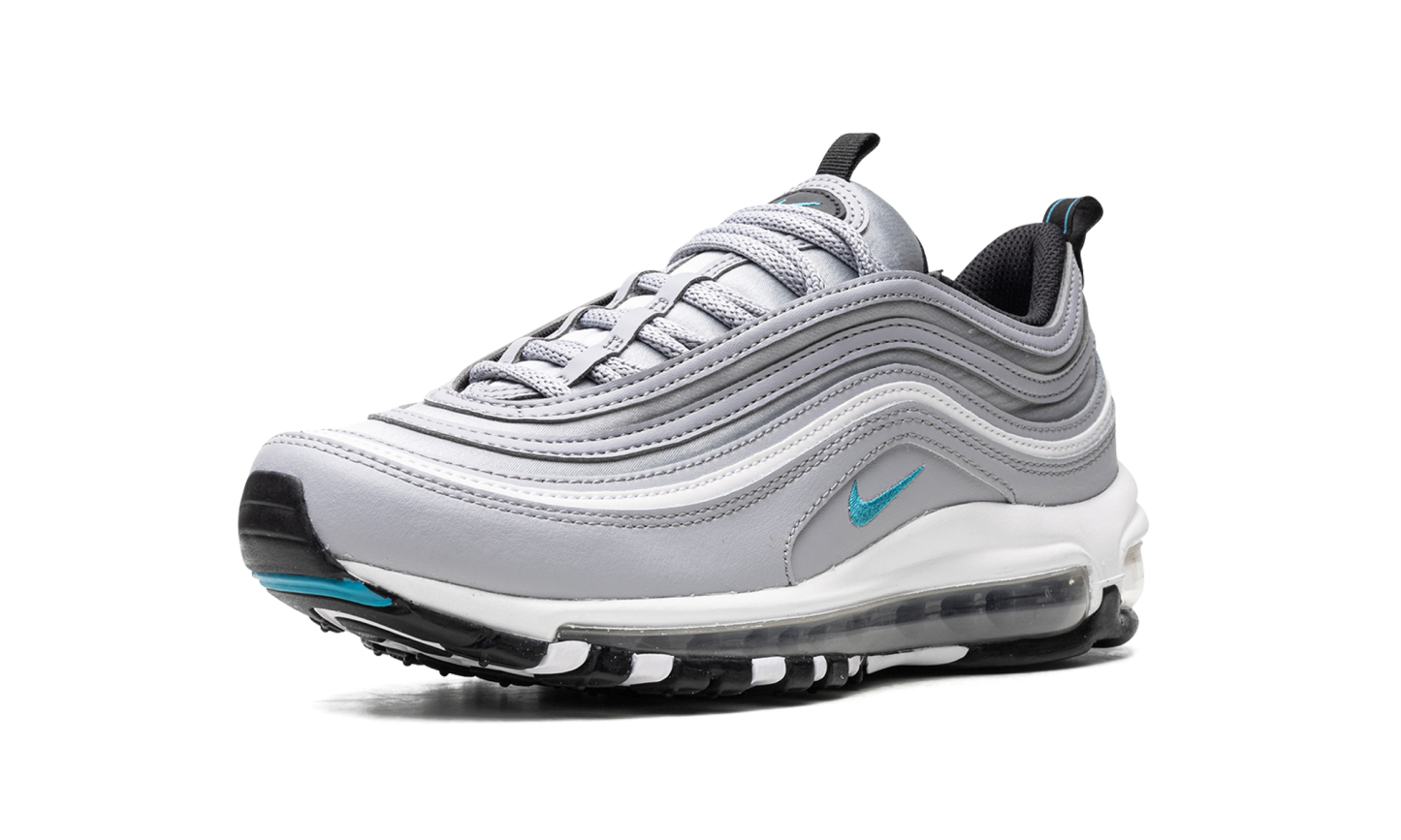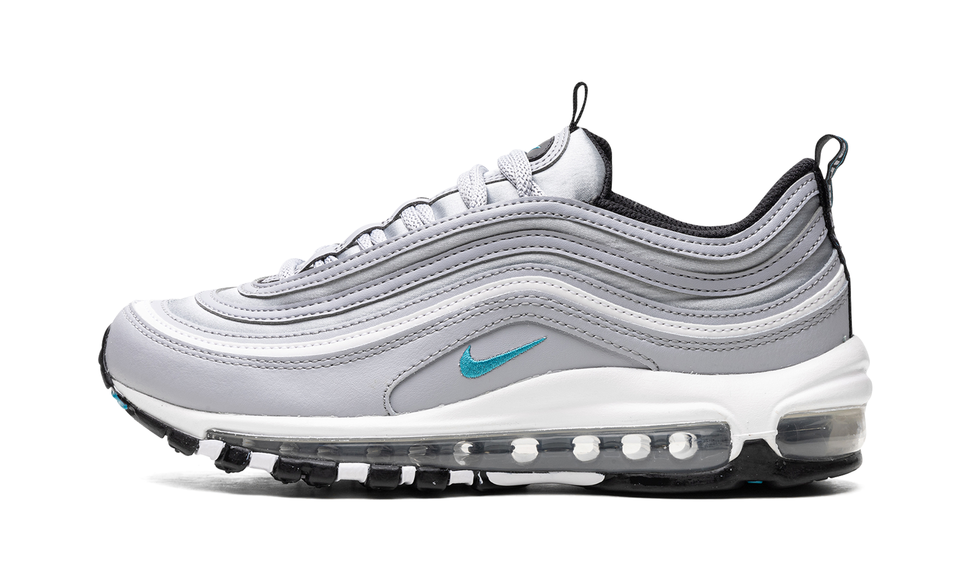 The Women’s Nike Air Max 97 “Wolf Grey/Nebula” is a women’s-exclusive colorway of the retro running and lifestyle shoe with a versatile, grey-based look. The Air Max 97 was first released back in 1997 and is now one of the most popular sneakers in Nike’s Air Max collection. The upper features grey base with tonal wavy leather overlays that wrap around the shoe. A small Nebula-colored Swoosh appears on either side above the white foam midsole. The logo is also found on the circular black overlay on the tongue. Red “Air Max” detailing is printed on the heel tab. A full-length Max Air cushioning unit in the midsole completes the design Wolf Grey / Teal Nebula