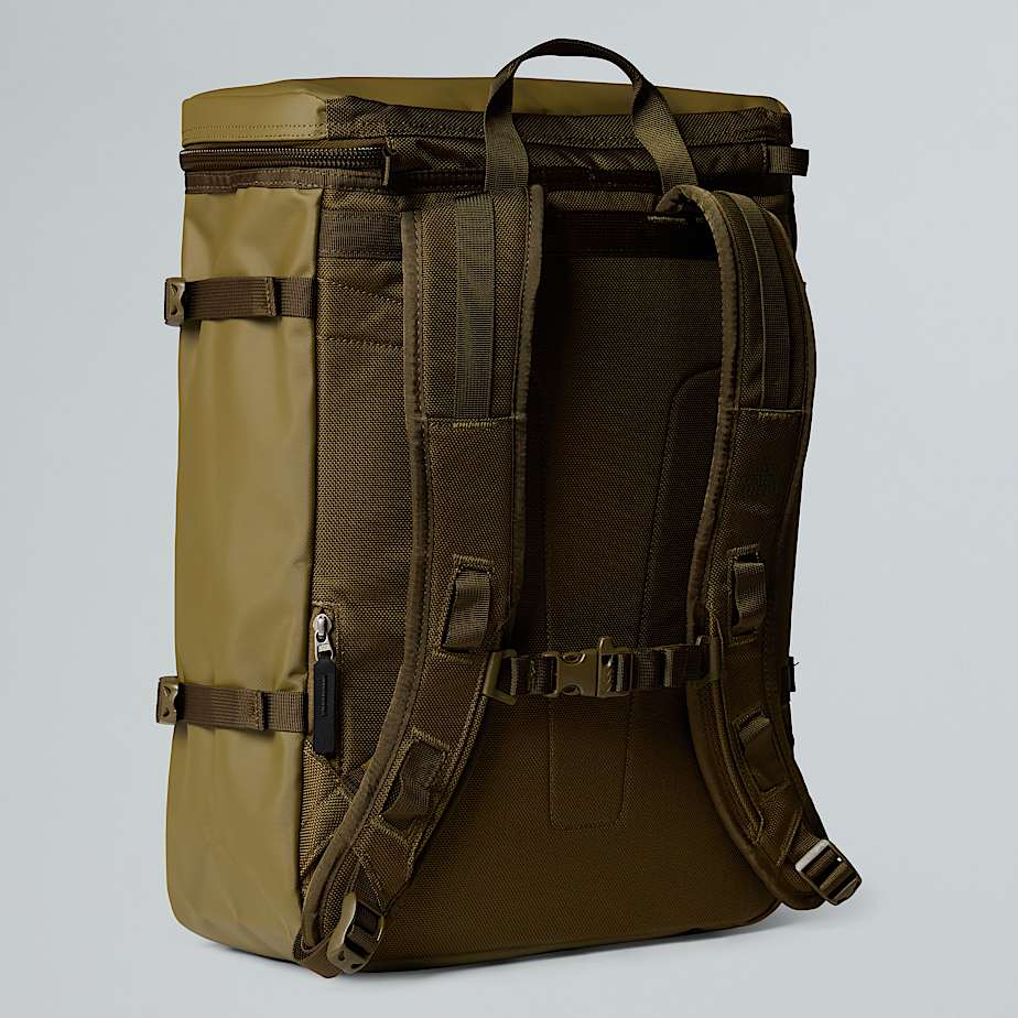 - This is the backpack for people who don't wear backpacks. Sure, we borrowed some details from our outdoor heritage to create the Base Camp Fuse Box – it's made from our ultra durable Base Camp Duffel material, it's a top loader and has a chest strap, but it's very much a pack of the streets. Its clean lines and angular shape fit in well in the urban jungle, while a hidden rear-entry smartphone pocket, zipped tablet pocket, internal water bottle holder and padded laptop sleeve make light work of lugging your gear around town.