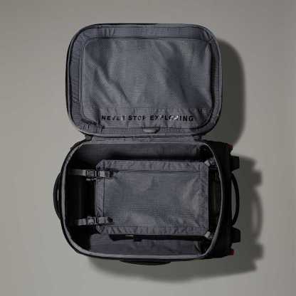 - Super-tough and versatile, the Base Camp Rolling Thunder 22" blends both mountain durability and high-level organisation for frequent flying or weekend adventures. It has a sizeable 40 litres of space but fits in most airlines' overhead storage. And being made from ultra-durable recycled Base Camp fabric with an improved hard-shell chassis designed to handle travelling around the world over and over again, it stands up to long-term, rugged use – just like its predecessor. The custom-moulded wheels make light work of rolling, even on gravelly terrain. Webbing compression straps let you secure belongings or compress the bag when it's not full. And padded side and top handles are super-comfortable and allow for multiple carrying positions. There are tonnes of pockets for travel essentials and dirty clothes, as well as webbing points that allow you to clip on additional items. If you need to save space, you can push down clothing using the internal compression panel. Plus, to keep valuables safe, the zip is lockable, giving you peace of mind when your main focus is the end destination.