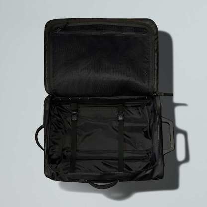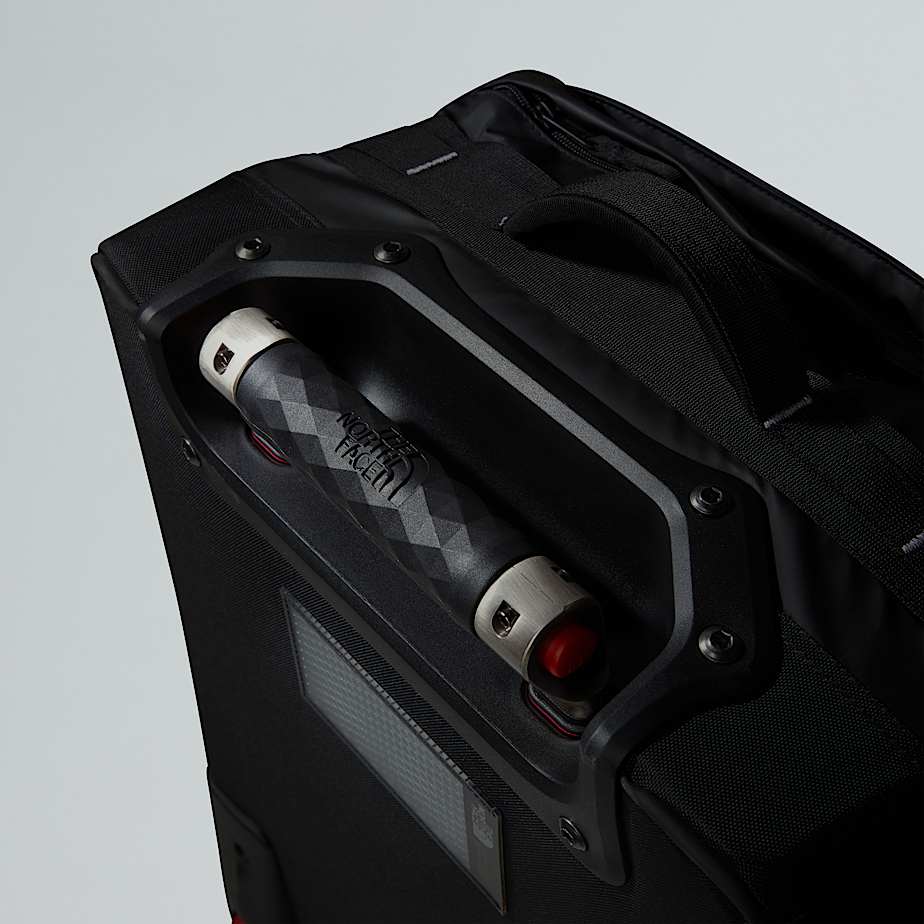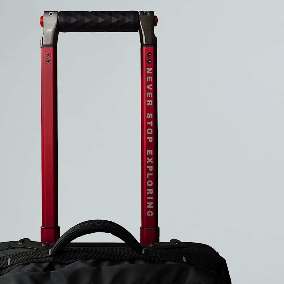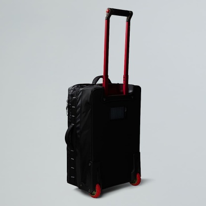 - Our iconic Base Camp Voyager Duffel is the inspiration for this new roller. Made from durable yet lightweight recycled polyester tarpaulin with a rock-solid chassis, it's built to handle a beating when being transported around the world. But it's not just tough; it's really practical, too. The two smooth-rolling wheels and the wide telescoping handle make this rolling bag comfortable when hauled through airports and around town. There's a 15" sleeve on the inside to keep your laptop safe. And the large internal compartment features a zipped divider to help keep dirty shoes or wet gear away from your clean clothes. But while there's plenty of room for travel essentials, compression straps help you find space for a little more. Not to mention there are extra pockets both inside and out for quick and easy access to your passport, phone, wallet and keys.