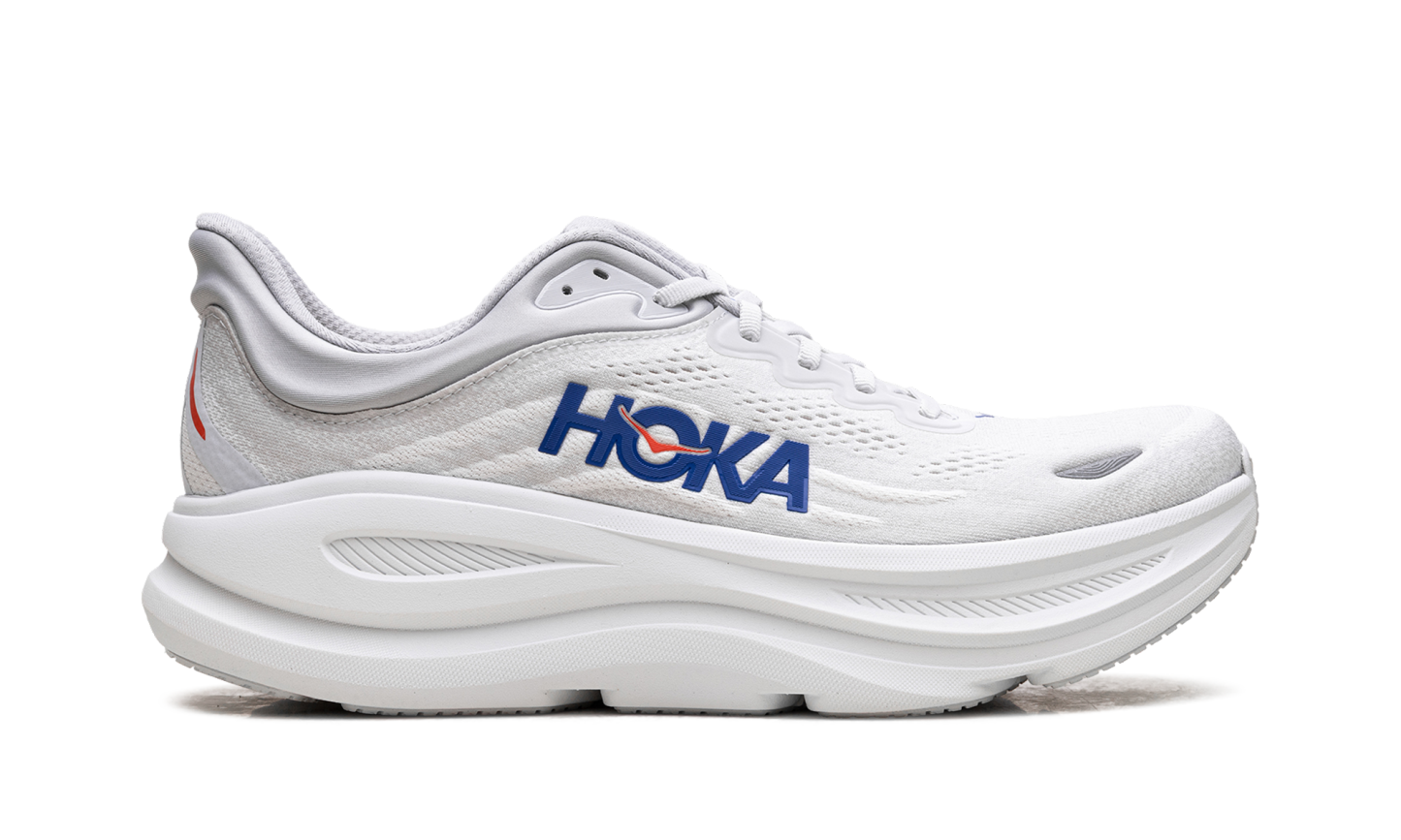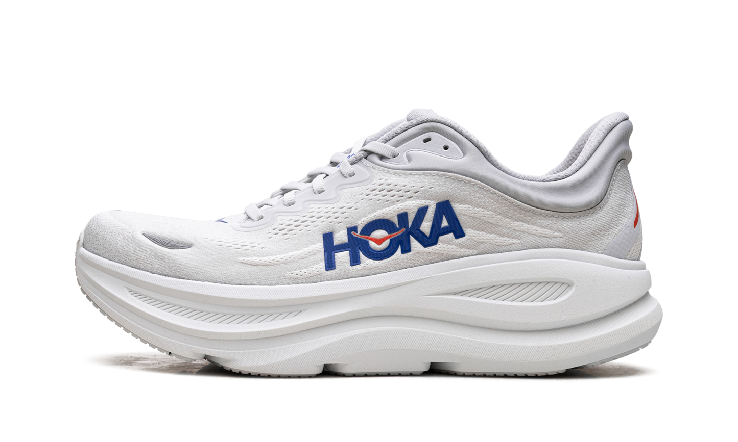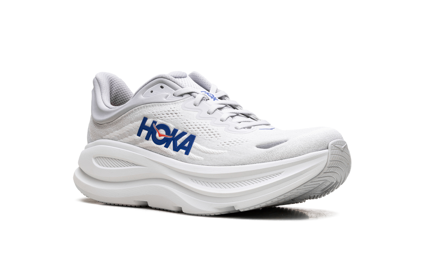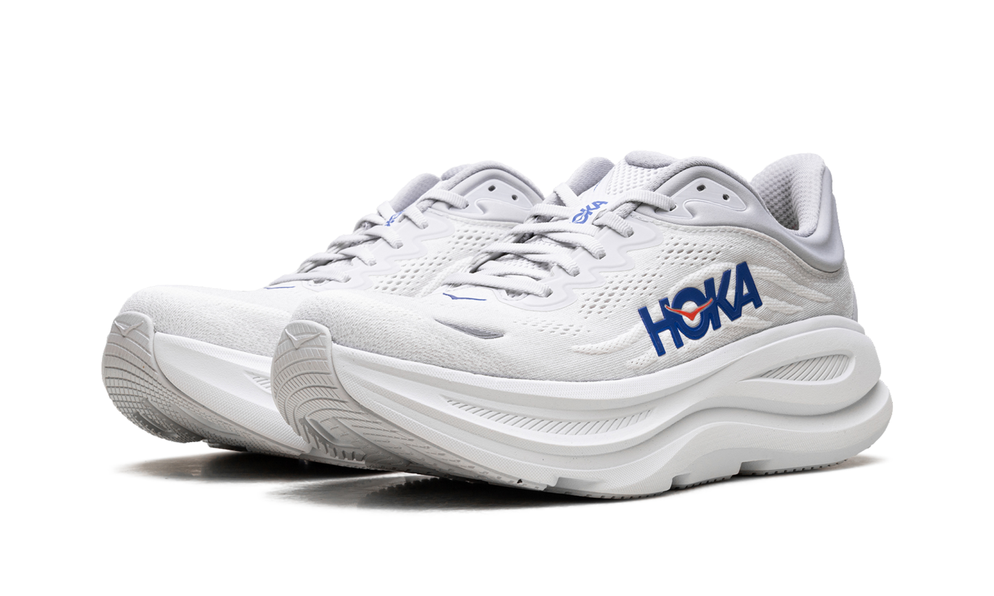Discover unparalleled cushioning in the Hoka Bondi 9 "Cosmic Grey / Ultramarine" sneakers. These road running shoes are engineered for a soft and balanced ride. The breathable upper and supportive design make them ideal for everyday runs and recovery days.