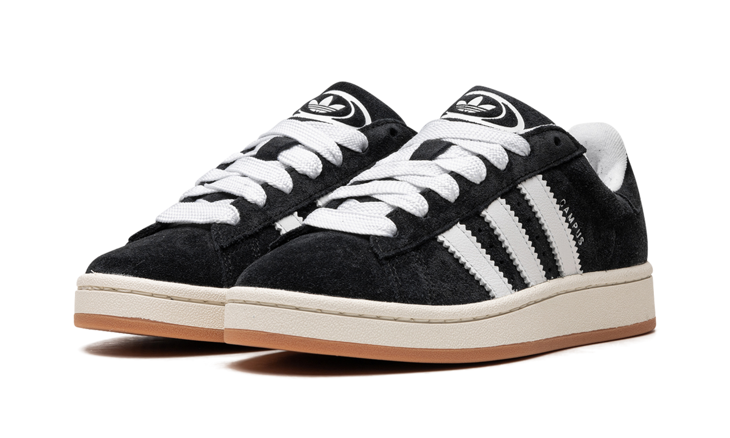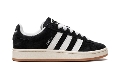 The adidas Campus 00s "Core Black" is a versatile, black-based colorway of the skate-inspired sneaker. Inspired by Y2K-era skate shoes, the Campus 00s is a thoroughly retro-looking sneaker that fits within today’s sneaker style aesthetics. The “Core Black” is complete with a black suede construction with white contrast stitching on each overlay. Three Stripes branding is seen on the sides. “Campus” branding appears on the lateral side of the mid-panel next to the classic adidas logo detailing. The brand’s signature Trefoil logo is located on the heel and on the tongue in white. The shoe’s off-white midsole is mounted on a gum rubber outsole with a herringbone pattern that provides grip whether on or off a skateboard.