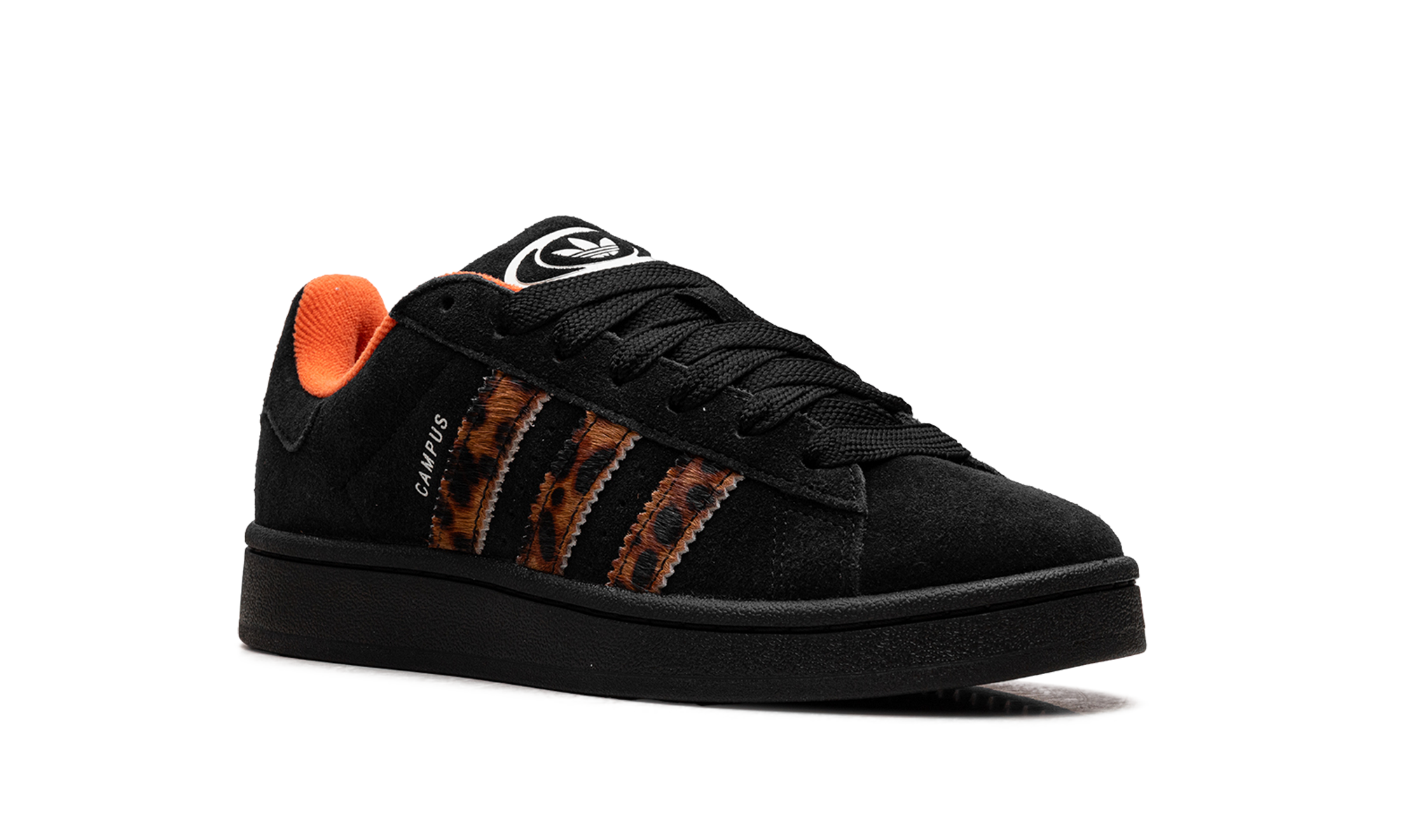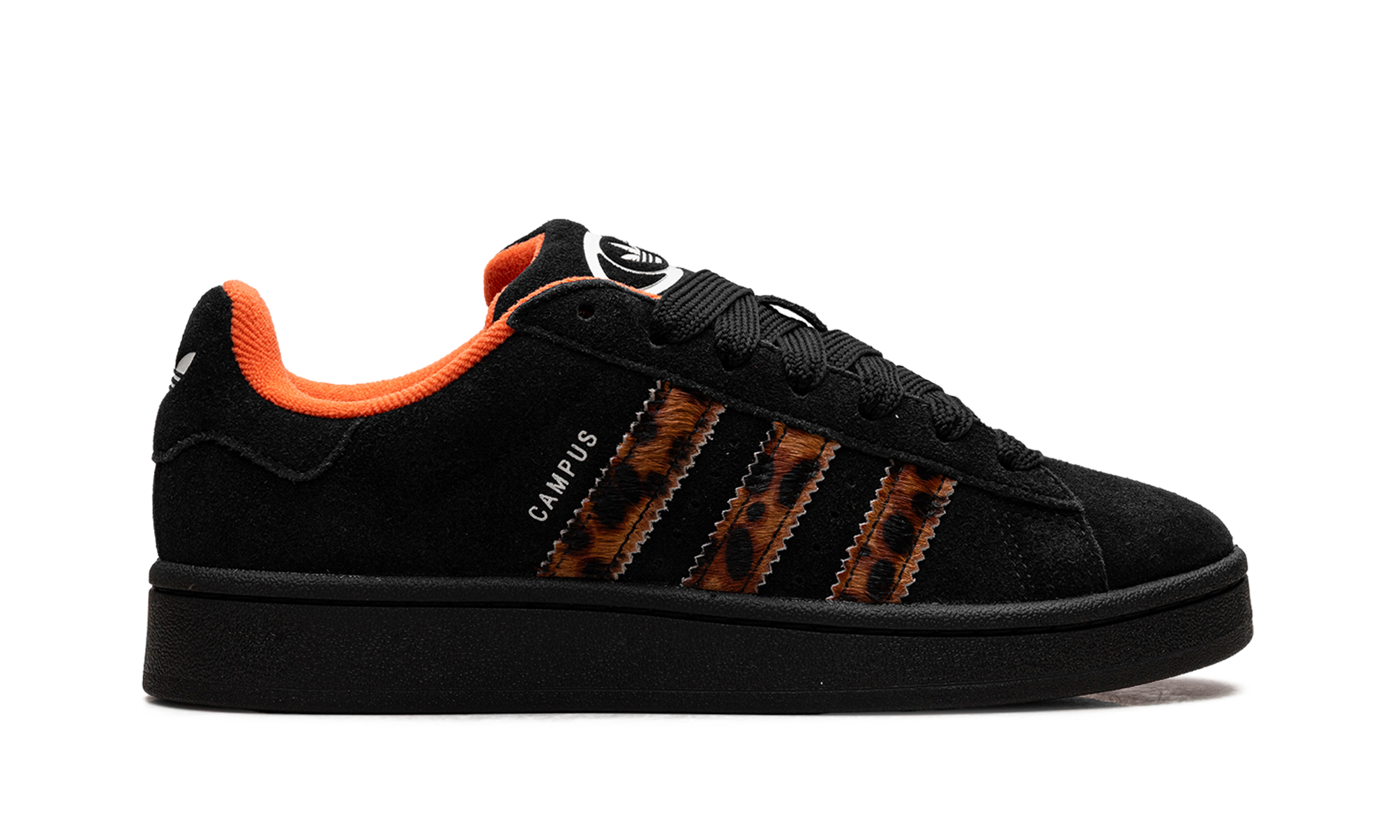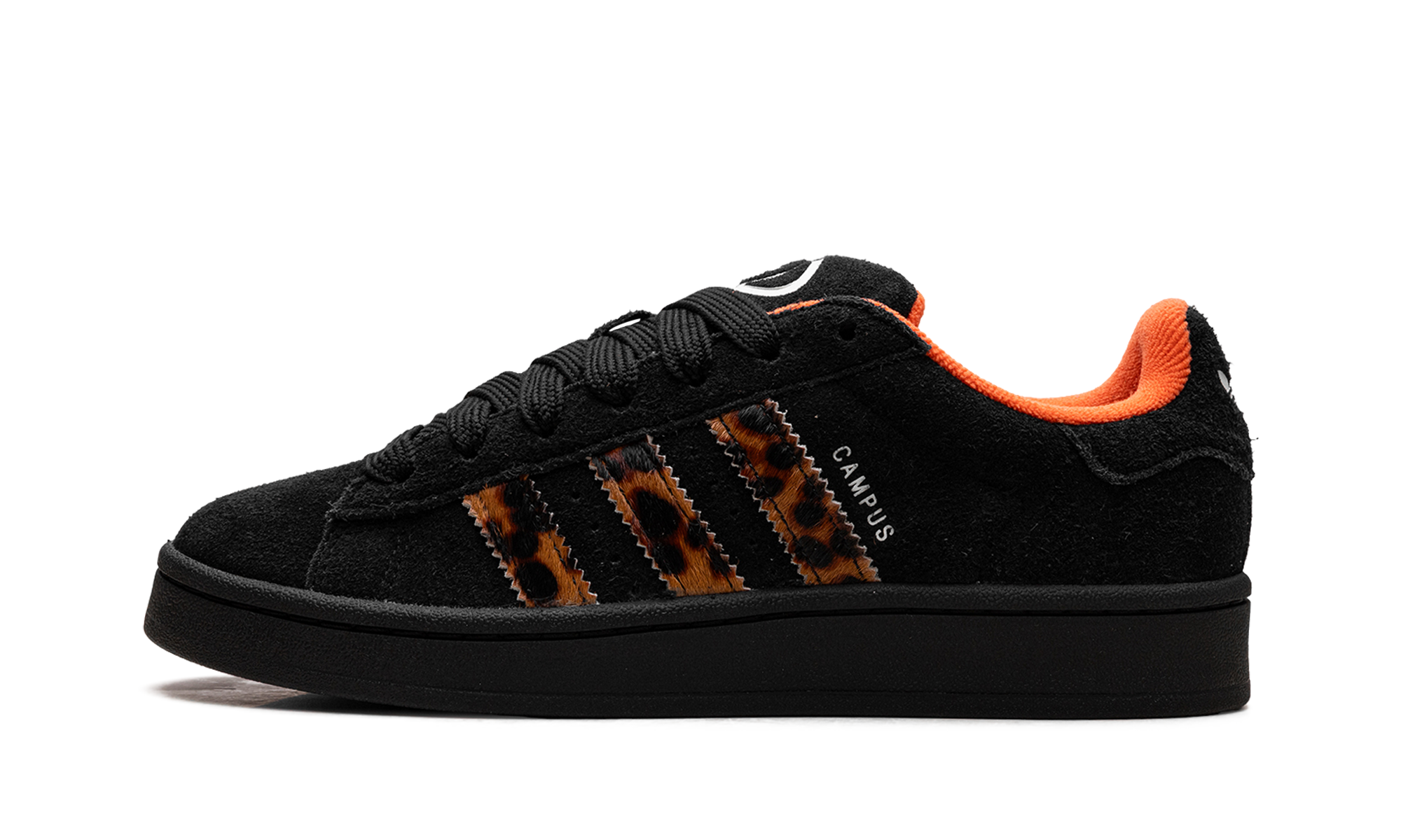 Bring bold, retro energy to your rotation with the adidas Campus 00s Wmns "Leopard Stripes," a chunky update inspired by 2000s skate style. The black suede upper offers a clean base, allowing the fuzzy pony-hair 3-Stripes in a dynamic leopard print to truly pop. This stylish take on the classic Campus silhouette features a padded tongue and collar for comfort, and a durable black rubber sole for reliable traction, blending fierce fashion with a vintage athletic feel.