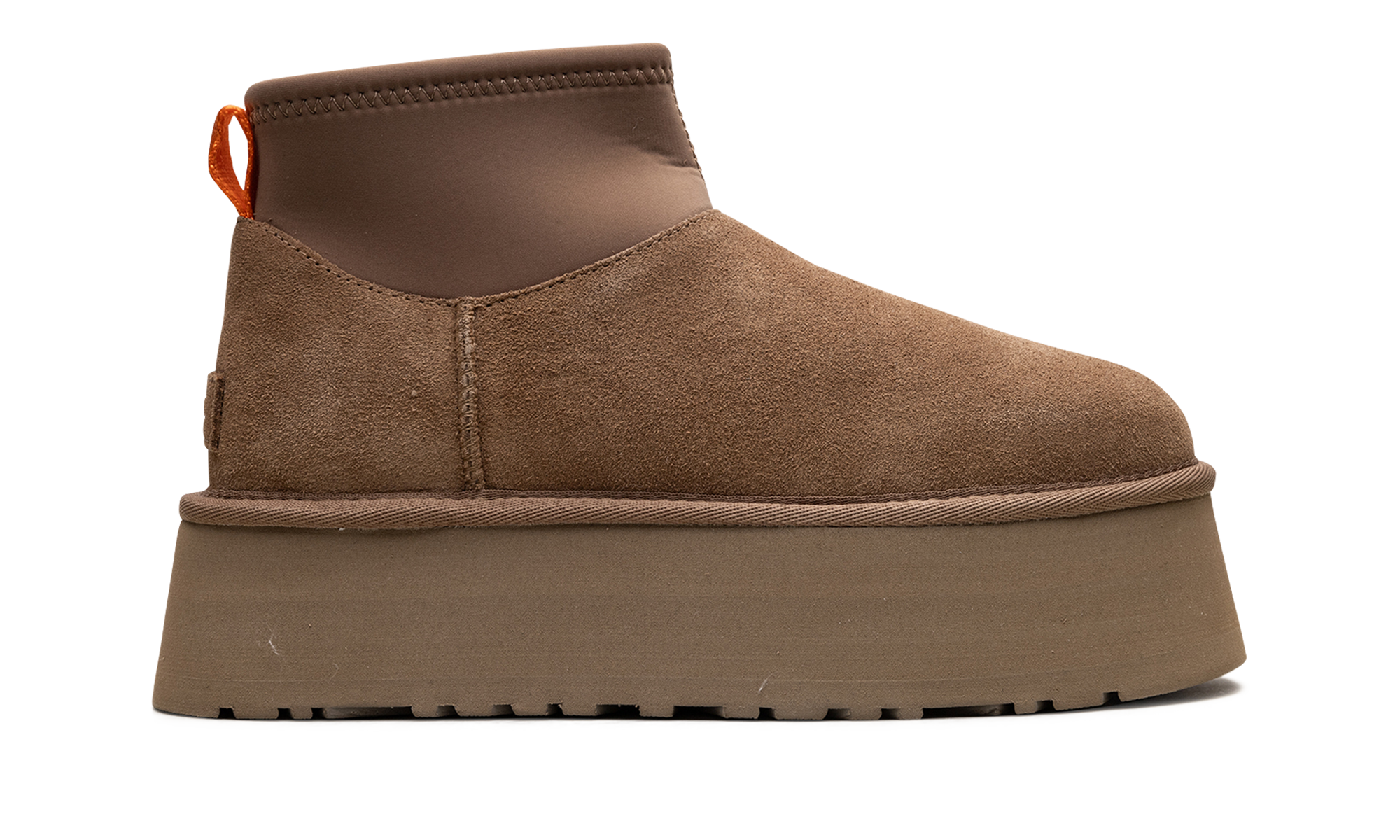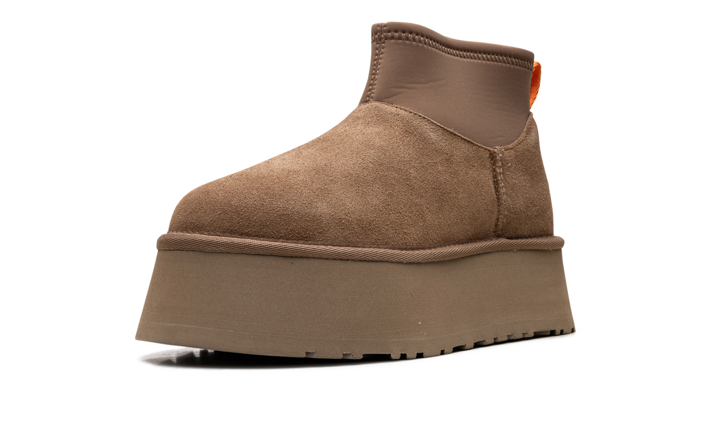 Step into luxurious height with the UGG Classic Mini Dipper Boot Wmns "Chestnut". This women's boot features a soft suede upper and a bold, dipped platform sole for a modern lift. The plush sheepskin lining ensures supreme warmth and comfort, making it a perfect choice for stylishly running errands or cozy indoor wear.