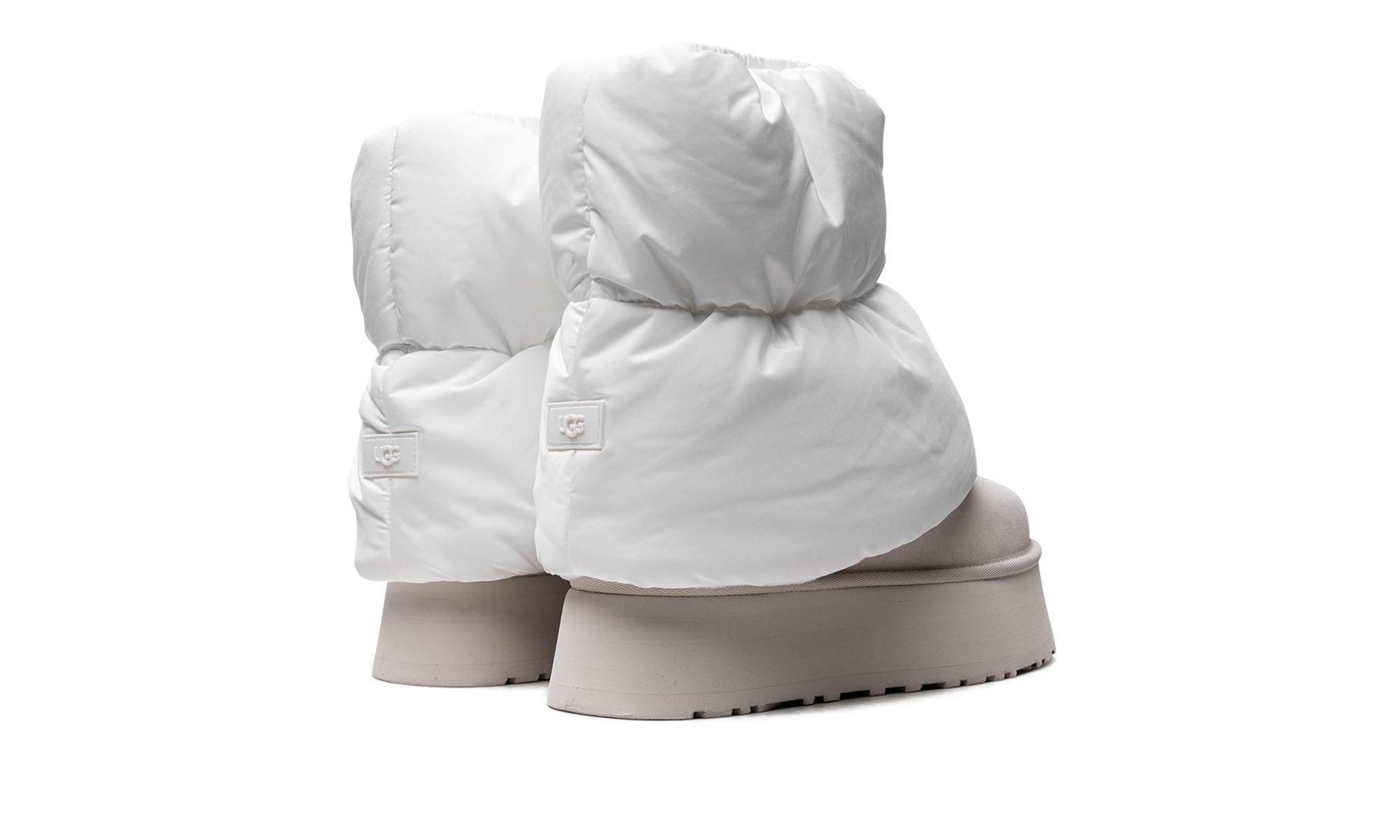 Step into luxurious height with the UGG Classic Mini Dipper Puffer Wmns "White / Ceramic". This women's boot features a quilted puffer upper and a bold, dipped platform sole for a modern lift. The plush UGGpure lining ensures supreme warmth and comfort, making it a perfect choice for stylishly navigating cold weather.