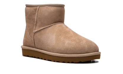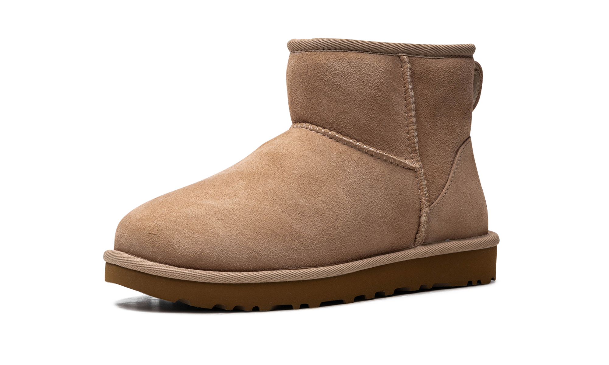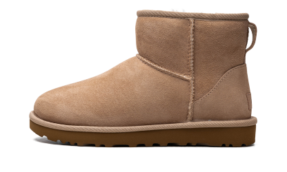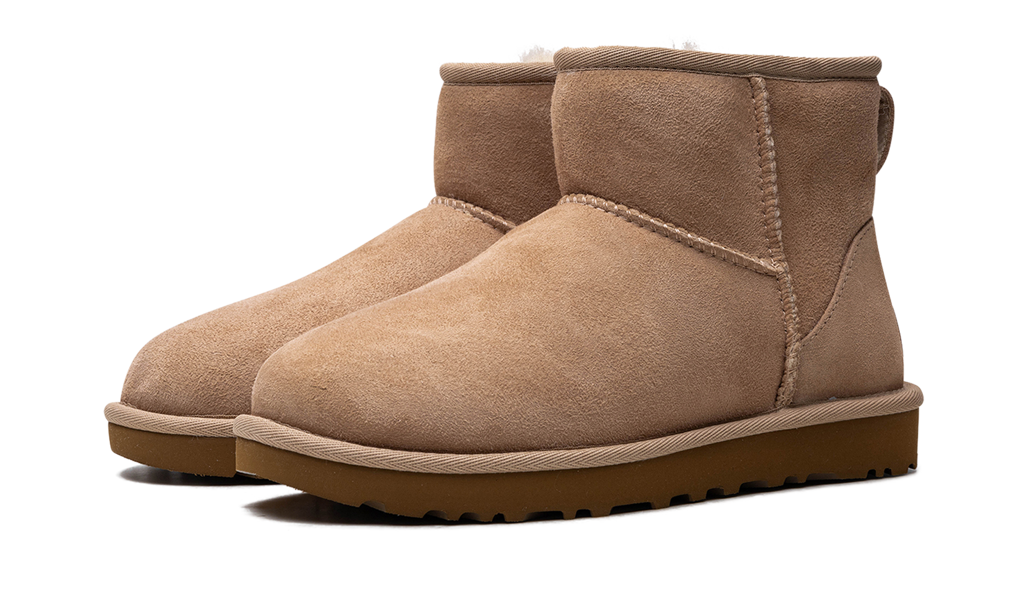 Step into luxurious warmth with the UGG Classic Mini II Boot Wmns "Sand". This women's boot features a soft suede upper, pre-treated to resist stains and water. The plush sheepskin lining and lightweight Treadlite outsole deliver supreme comfort, making it a versatile choice for cozy indoor wear or stylish, durable outings.