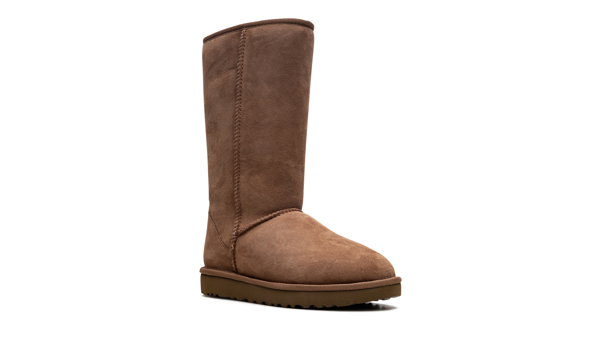 Step into luxurious warmth with the UGG Classic Tall II Boot Wmns "Chestnut". This women's boot features a soft suede upper, pre-treated to resist stains and water. The plush sheepskin lining and lightweight Treadlite outsole deliver supreme comfort, making it a versatile choice for cozy wear or stylish, durable outings all season long.