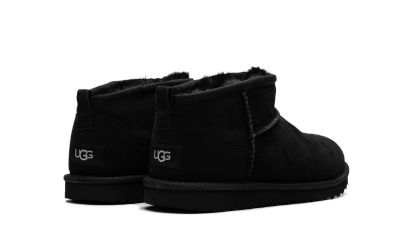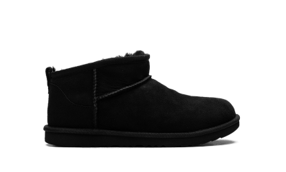 Step into luxurious warmth with the UGG Classic Ultra Mini GS "Black". This grade school boot features an ultra-low cut silhouette and a soft suede upper in a sleek Black finish. The plush sheepskin lining ensures supreme comfort, making it a perfect choice for cozy indoor wear or quick, stylish outings.