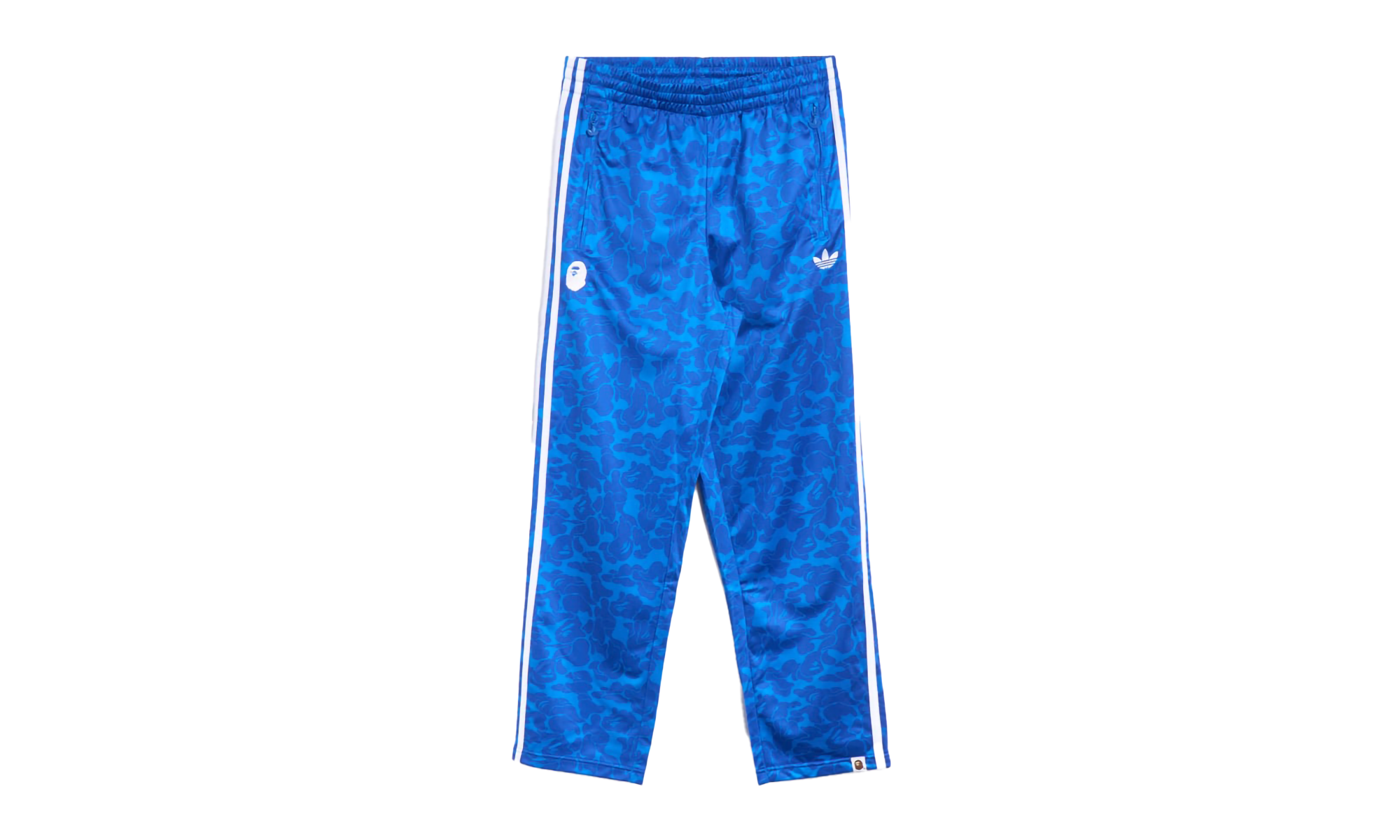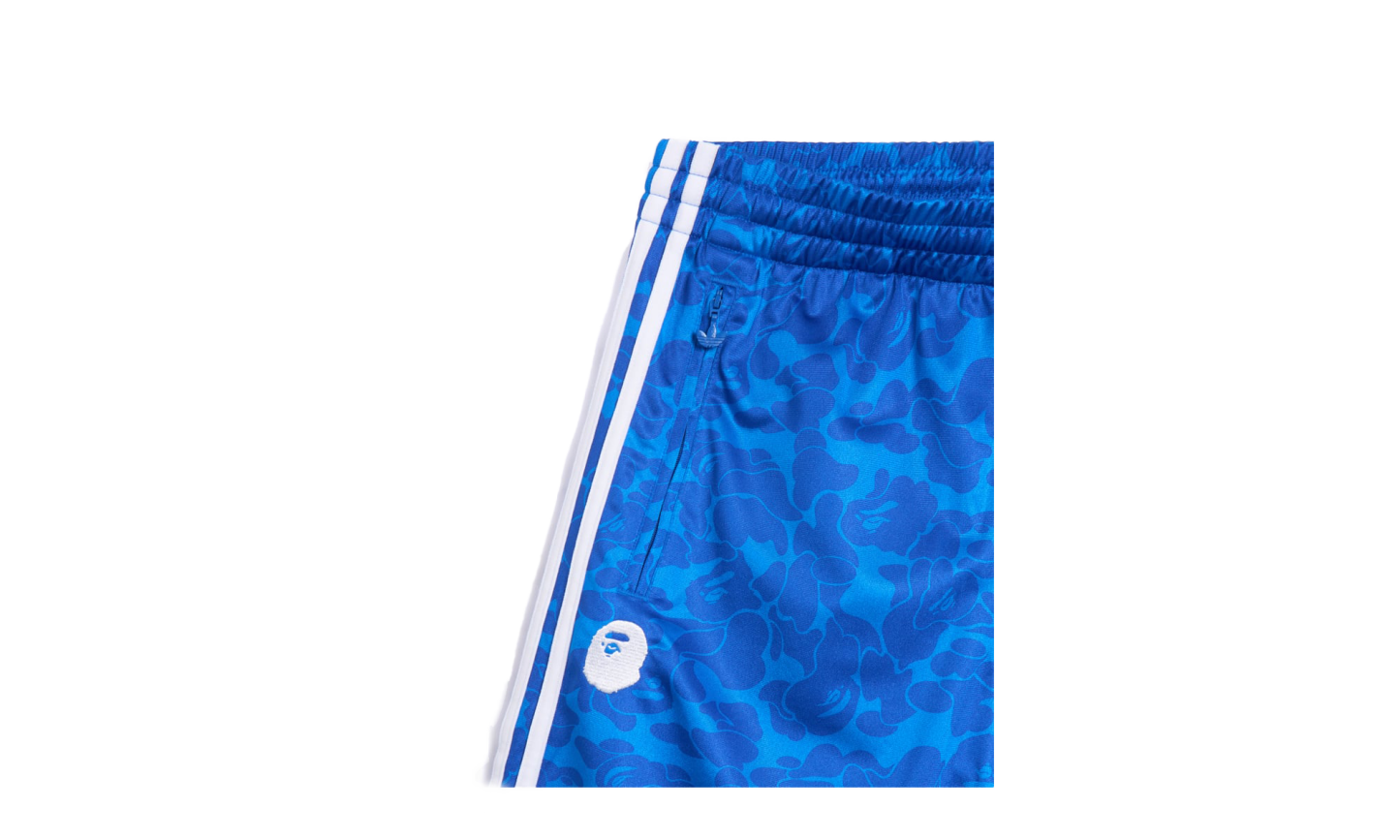 Step into streetwear history with the ADIDAS Firebird Track Pants, famously nicknamed "BAPE - Blue." This exclusive collaboration with A Bathing Ape features an all-over BAPE solid camo print in a striking blue colorway, merging '80s hip-hop heritage with Japanese street style. Crafted from 100% recycled polyester, they offer a comfortable loose fit, elastic waistband, and side pockets. Co-branded Trefoil and Ape Head logos mark this as a must-have collectible for any enthusiast.