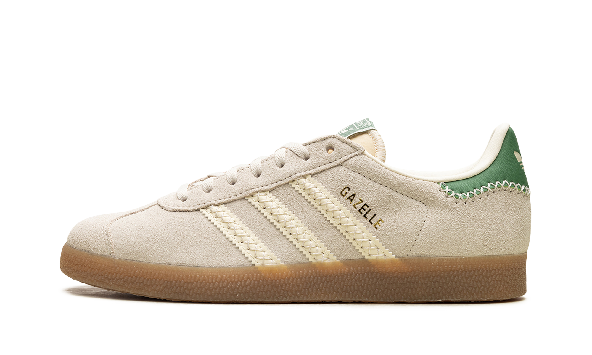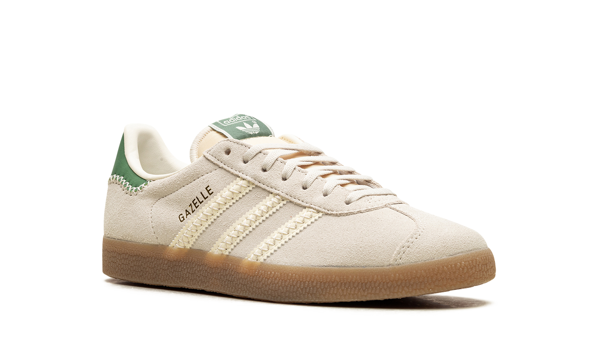 Step into history with the iconic Adidas Gazelle "Alumina Preloved Green", a classic sneaker that brings authentic vintage style to the modern wardrobe. This stunning edition features a luxurious suede upper in a soft "Preloved Green" hue, beautifully contrasted by creamy "Alumina" leather accents on the heel tab and signature serrated 3-Stripes. The low-profile design and durable rubber sole offer timeless comfort and a sleek, versatile look. Grab this legendary silhouette to elevate your everyday fit with a touch of heritage cool. (68 words)