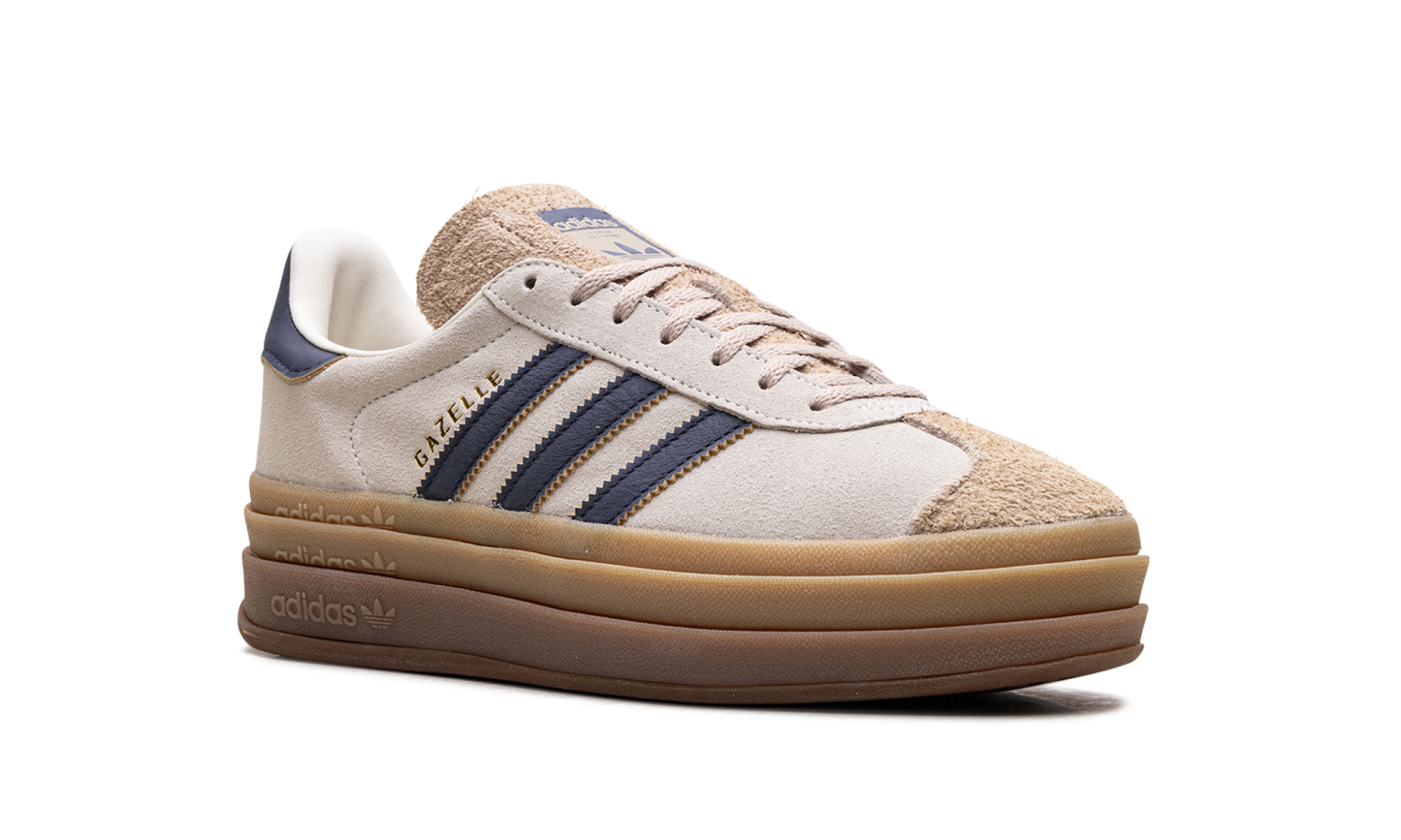 Elevate your stride with the Adidas Gazelle Bold WMNS sneaker, affectionately dubbed "Cream Night Indigo." This women's exclusive takes the iconic low-profile Gazelle silhouette and gives it a confident lift with a dramatic triple-stacked platform outsole. The creamy suede upper provides a soft, premium feel, beautifully contrasted by the dark "Night Indigo" leather Three Stripes and heel tab. This shoe is a must-have for the fashion-forward, blending '90s nostalgia with a modern, statement-making design.