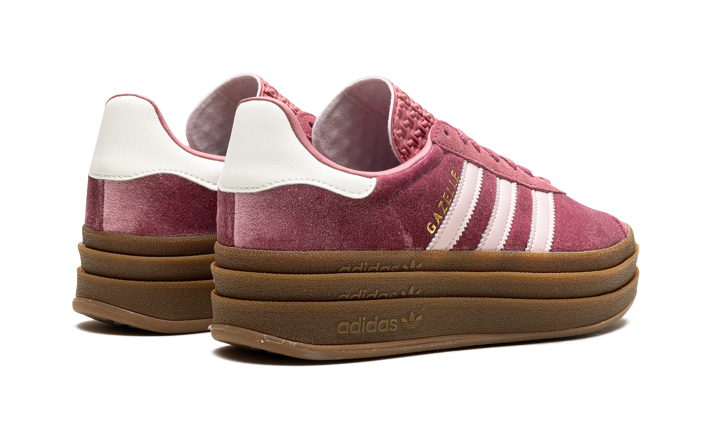 Elevate your entire look with the stunning Adidas Gazelle Bold WMNs, 'The Velvet Platform.' This iconic silhouette is boldly stacked three layers high on a platform rubber outsole, giving you a fresh perspective on a retro classic. Crafted with a luxurious, soft velvet upper in a gorgeous Sandy Pink tone and finished with crisp Off White accents. These are the perfect statement trainers to blend '70s sporty heritage with everyday elegance and lift your style.