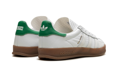 The Kith x adidas Gazelle Indoor “White/Green” is a collaboration by Ronnie Fieg’s sneaker boutique and adidas on the classic shoe. The Kith x adidas Gazelle Indoor “White/Green” is one of multiple sneakers by Kith and adidas from Kith’s “Classics Program.” The upper has a white leather base and light grey suede overlays on the toe and Three Stripes. A Gold “Kith Classics” logo appears on the lateral side of the mid-panel, while dual branding can be found on the tongue and heel. A gum rubber sole rounds out the look. Release date: February 9, 2024