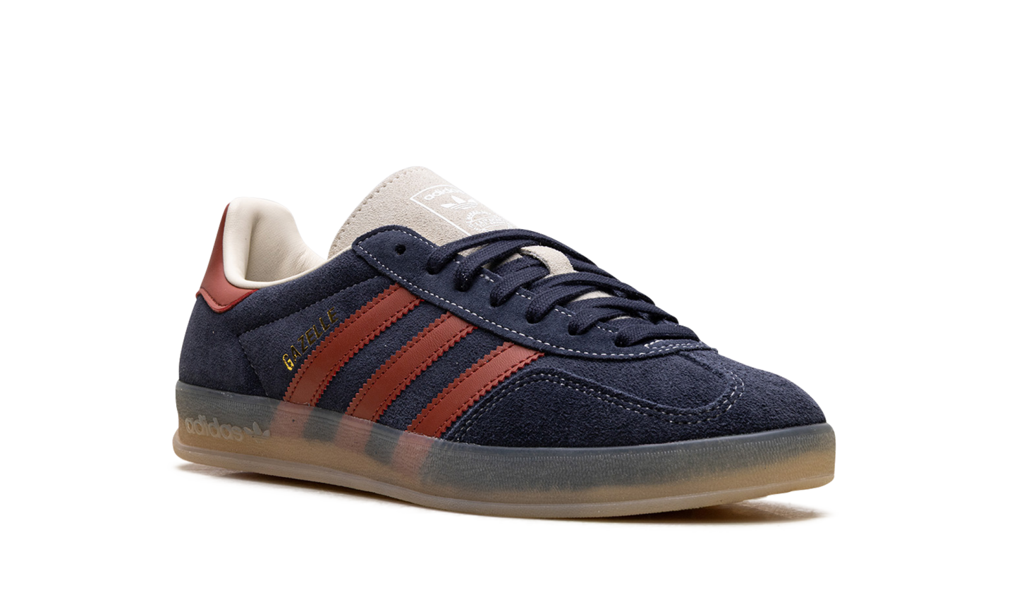 Capture the perfect blend of retro style and bold color with the adidas Gazelle Indoor "Legend Ink/Preloved Ruby," a re-release of the iconic 1970s training shoe. This sneaker features a deep, inky blue suede upper contrasted by vibrant "Preloved Ruby" leather 3-Stripes and heel tab. The unique, translucent gum rubber outsole provides that signature "Indoor" look and durable traction. Finished with a gold-foil Gazelle logo, this pair is a timeless staple for any casual or street-style outfit.