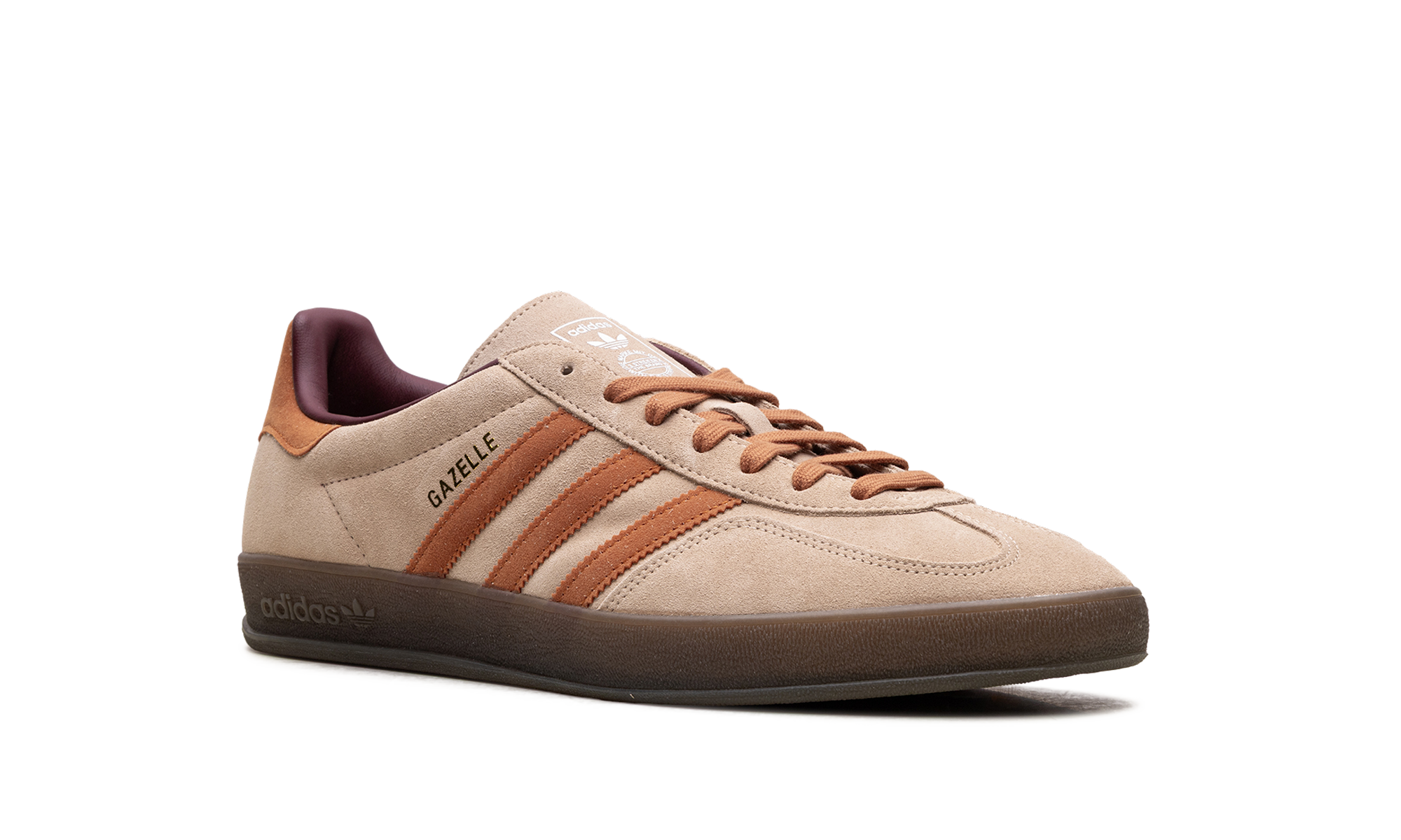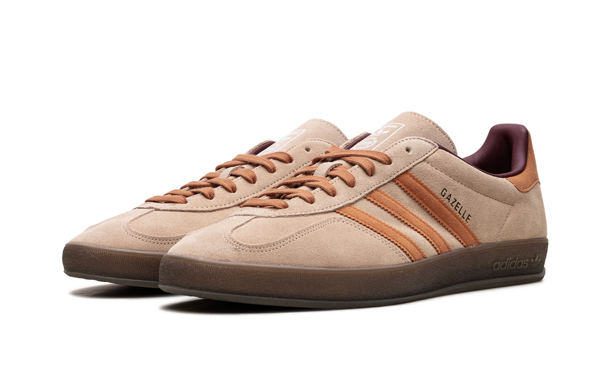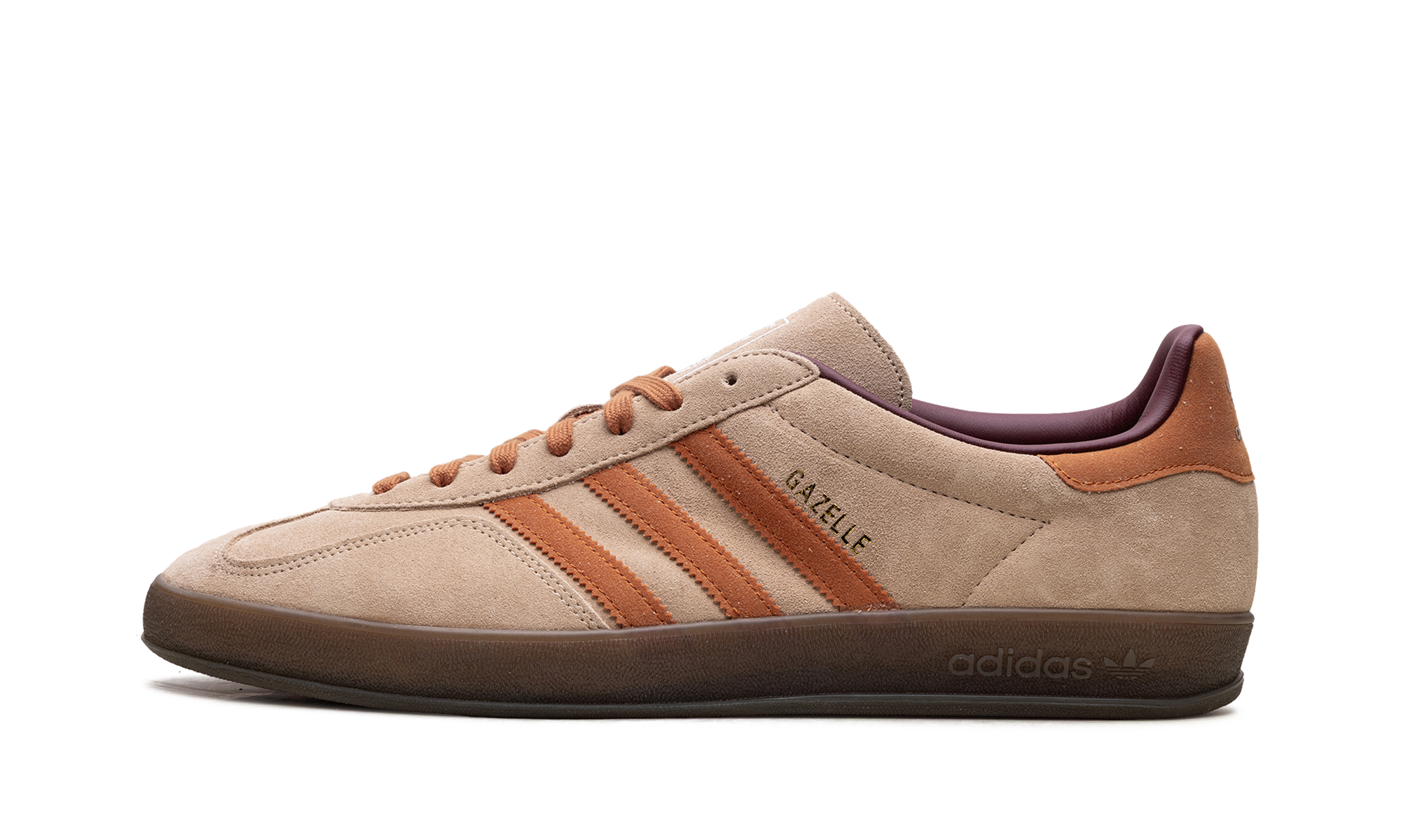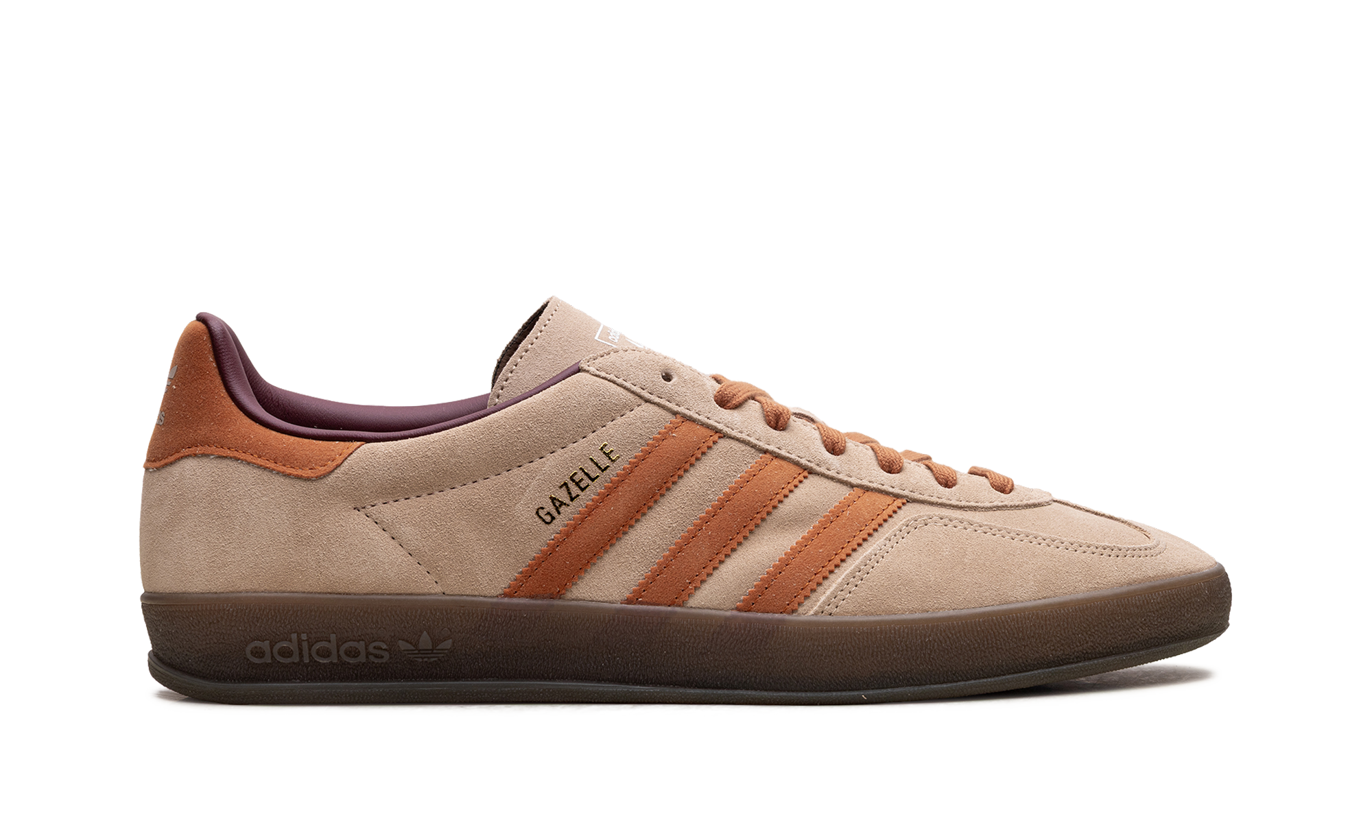 Slip into an icon with the adidas Gazelle Indoor "Warm Sandstone/Craft Ochre"! This low-profile sneaker is a stylish revival of a classic 1979 design. It features a premium suede upper in Warm Sandstone and is accented by striking Craft Ochre three-stripes and heel tab. The signature semi-translucent gum rubber outsole provides durable traction and a vintage look. With its streamlined design, gold foil branding, and rich, earthy colorway, this shoe offers timeless retro appeal and modern, everyday comfort.
