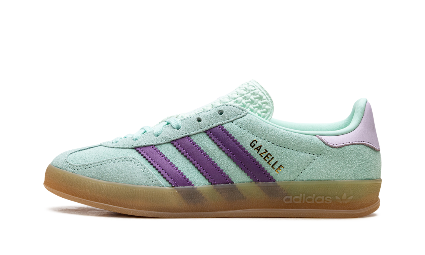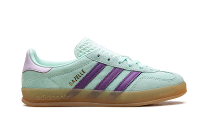 The Gazelle Indoor WMNS "Clear Mint" offers a refreshing, pastel-infused aesthetic for the minimalist collector. This silhouette features a premium "Clear Mint" suede upper that provides a soft, sophisticated look, beautifully contrasted by a signature translucent gum sole. Originally designed as a training shoe, the Gazelle Indoor has evolved into a global fashion icon known for its sleek profile and effortless versatility. It is a refined, cool-toned masterpiece that adds a pop of tranquil color to any high-end casual rotation.