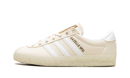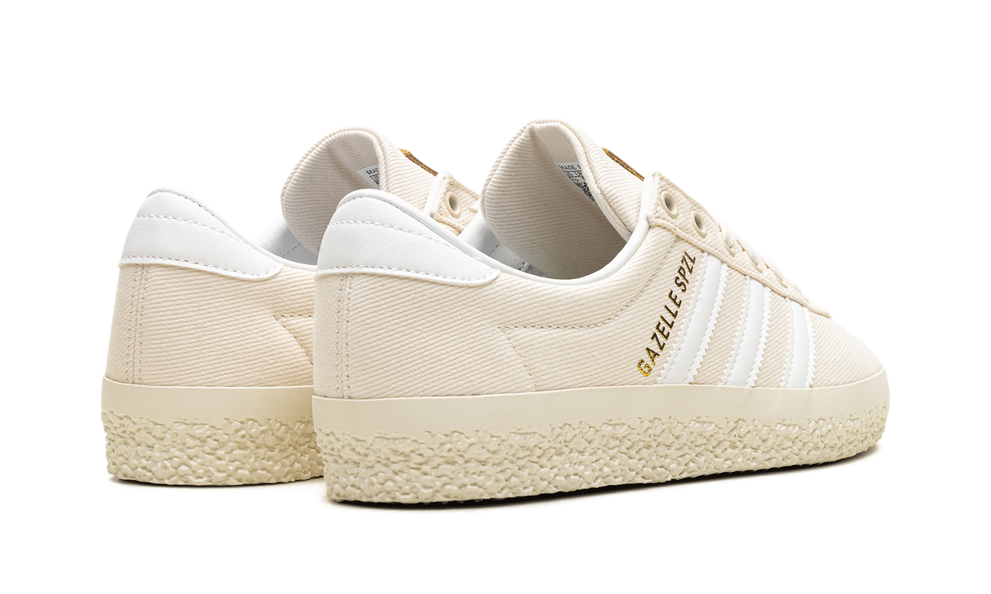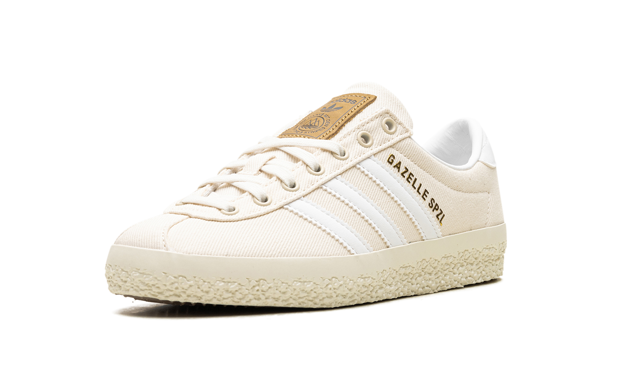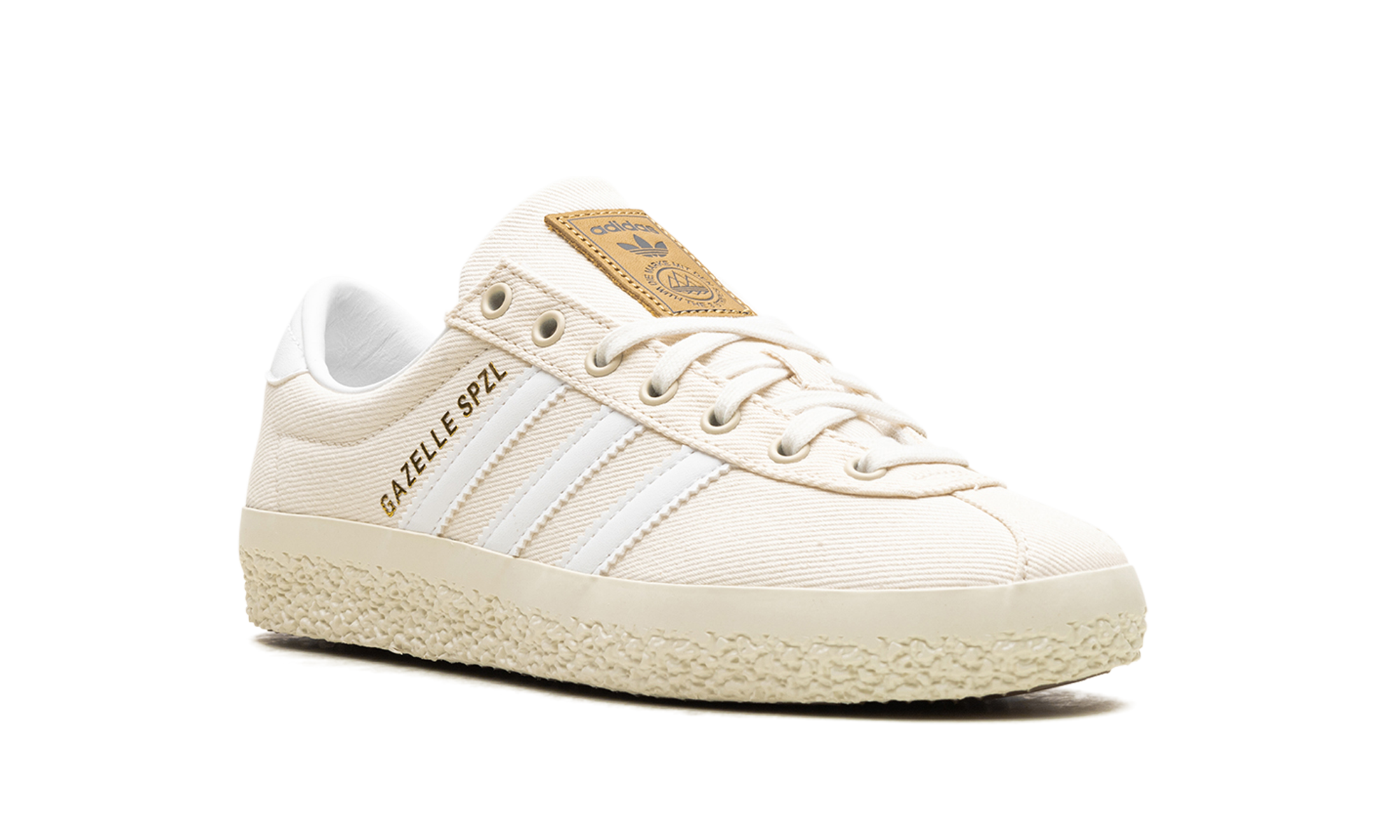 The adidas Gazelle SPZL "Chalk White" is a cream-based colorway of the retro shoe by adidas archivalist and Spezial founder Gary Aspden’s collaboration. From adidas’s Autumn/Winter 2023 collection, the adidas Gazelle SPZL “Chalk White” is a modern take on the classic silhouette that fuses elements of adidas Gazelles from the 1960s, 1970s, and 1980s. The upper has a Chalk White canvas construction with white leather Three Stripes branding on the sides. A gold “Gazelle SPZL” logo is printed on the lateral side of the mid-panel. Classic “adidas” detailing can be seen on the tongue. A white textured rubber sole completes the look.