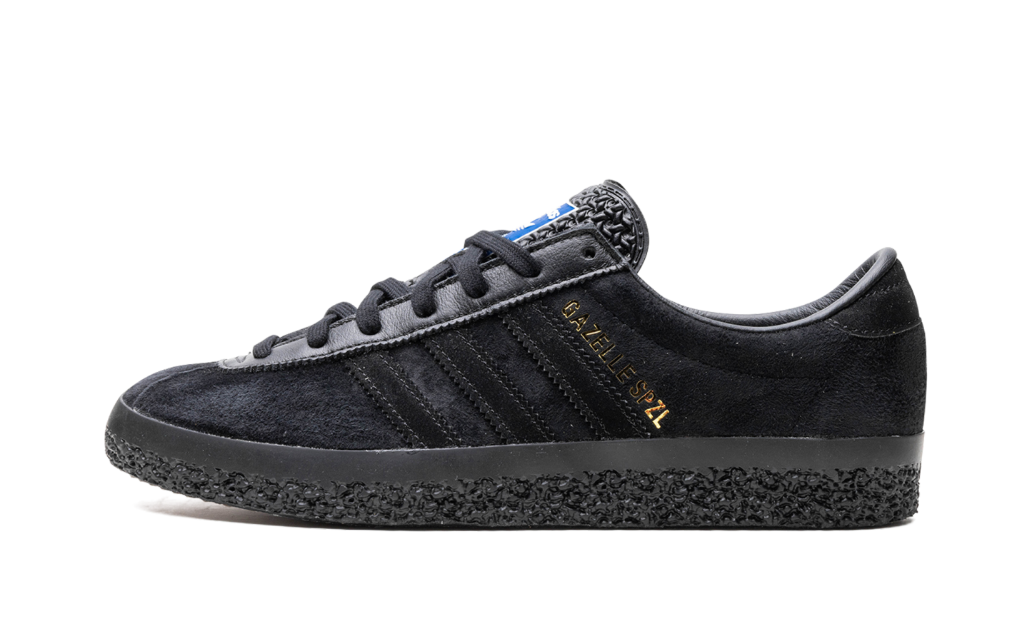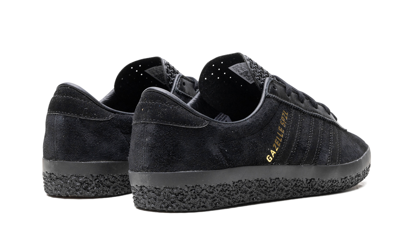 The adidas Gazelle SPZL "Triple Black" is a monochromatic black colorway of the retro shoe by adidas archivalist and Spezial founder Gary Aspden’s collaboration. From adidas’s Autumn/Winter 2023 collection, the adidas Gazelle SPZL “Triple Black” is a modern take on the classic silhouette that fuses elements of adidas Gazelles from the 1960s, 1970s, and 1980s. The upper has an all-black suede construction with tonal Three Stripes branding on the sides. A gold “Gazelle SPZL” logo is printed on the lateral side of the mid-panel. Classic “adidas” detailing can be seen on the tongue. A black textured rubber sole completes the look.