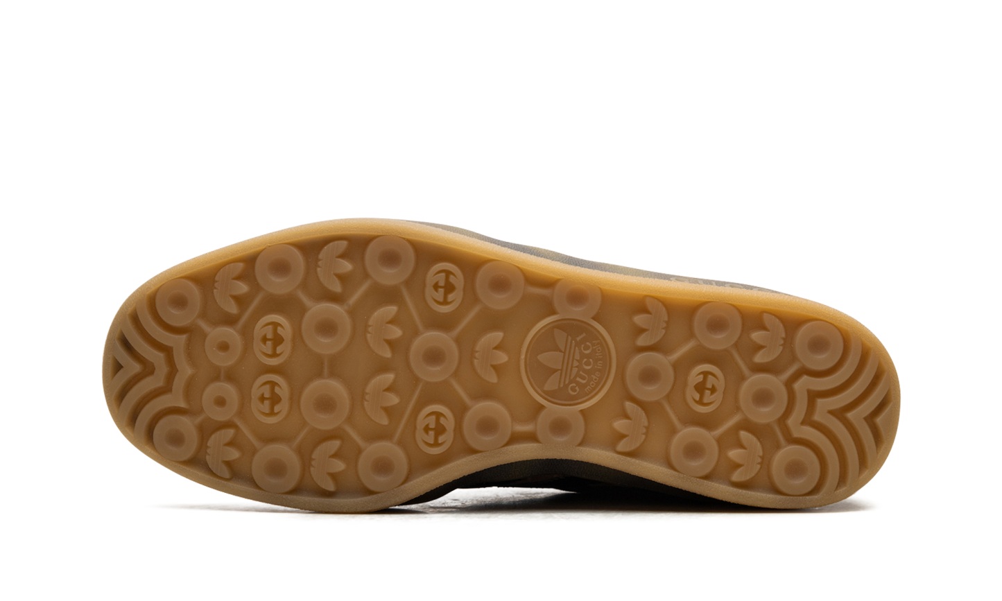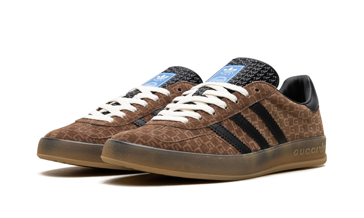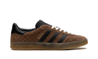 The Gucci x adidas Gazelle “Brown” is a limited edition collaboration by the storied high fashion brand and adidas that puts Gucci’s iconic monogram print on the popular sneaker. Part of the second collaboration between Gucci and adidas, the Gazelle in “Brown” features Gucci’s famous “GG” monogram patterning in an all-over style on the shoe’s canvas upper. The look is said to be inspired by 1980s-era sportswear aesthetics. Black leather Three Stripes branding can be found on either side of the shoe while gold co-branding appears on the black leather heel tab. More co-branding is located on the tongue. “GG” embossed branding is found along the gum rubber midsole. Release date: March 31, 2023