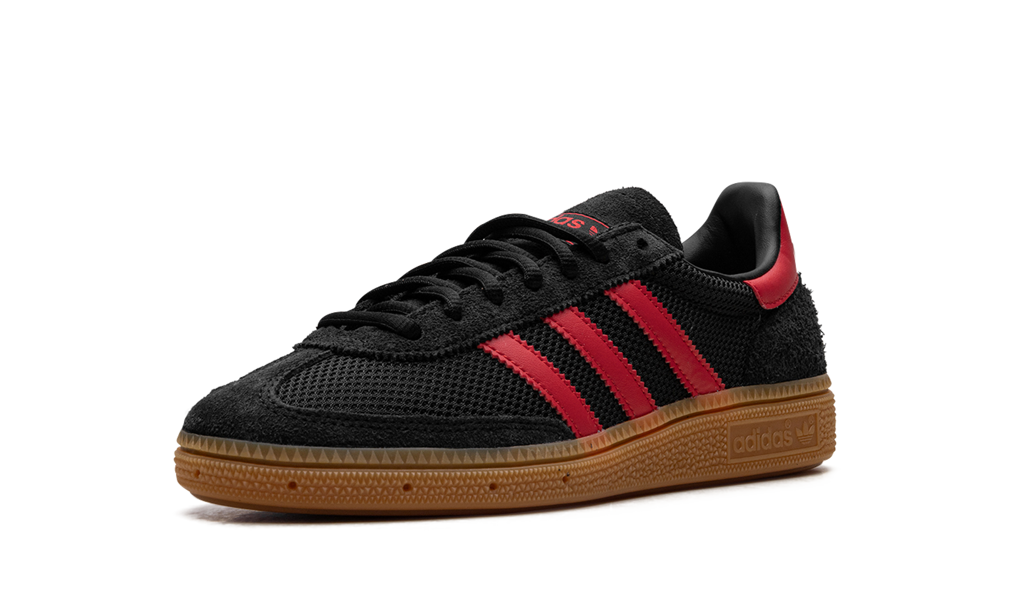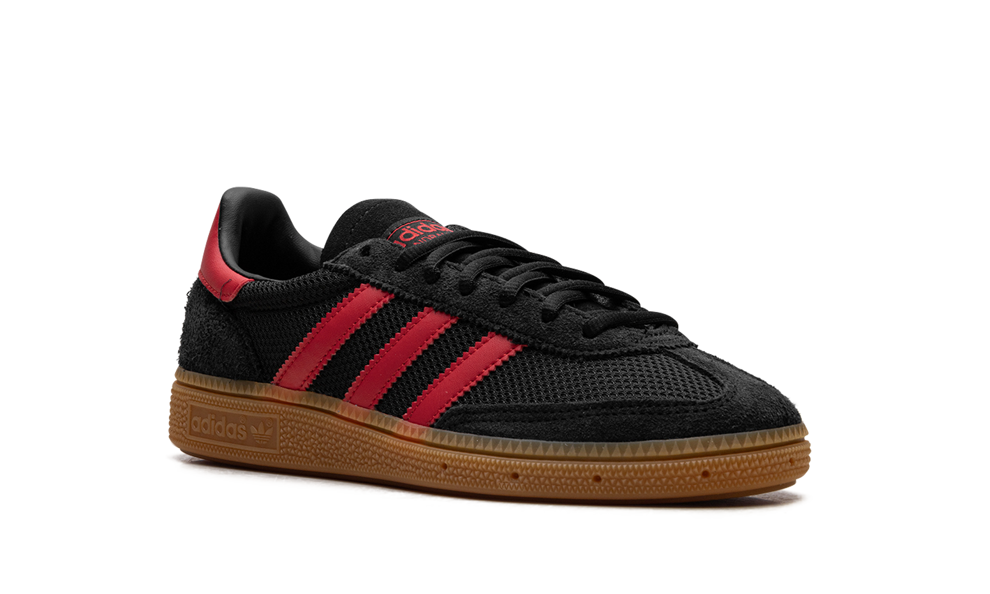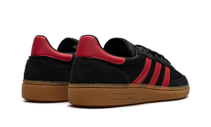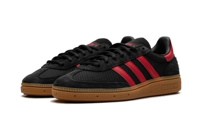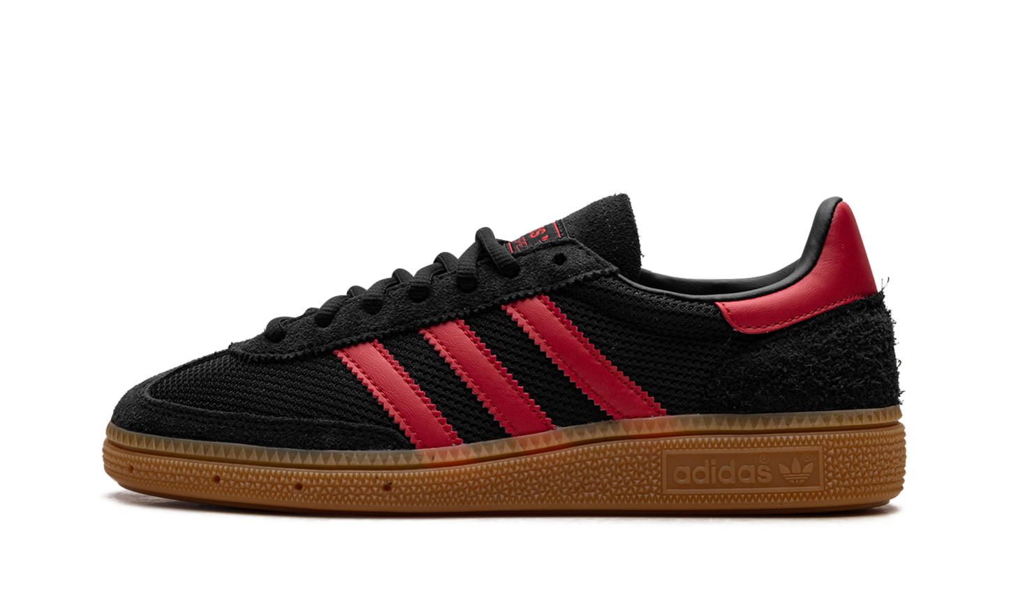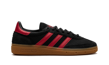 Step into timeless athletic style with the ADIDAS Handball Spezial 'Core Black Better Scarlet Gum'. This classic silhouette features a rich black suede upper accented by striking Better Scarlet three-stripes and heel tab, all grounded by a vintage gum rubber outsole. Originally built for the handball court, the 'Core Black Better Scarlet Gum' now serves as an essential street staple, offering supreme comfort and an iconic, low-profile look that pairs perfectly with any outfit.
