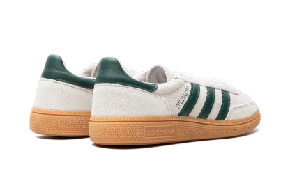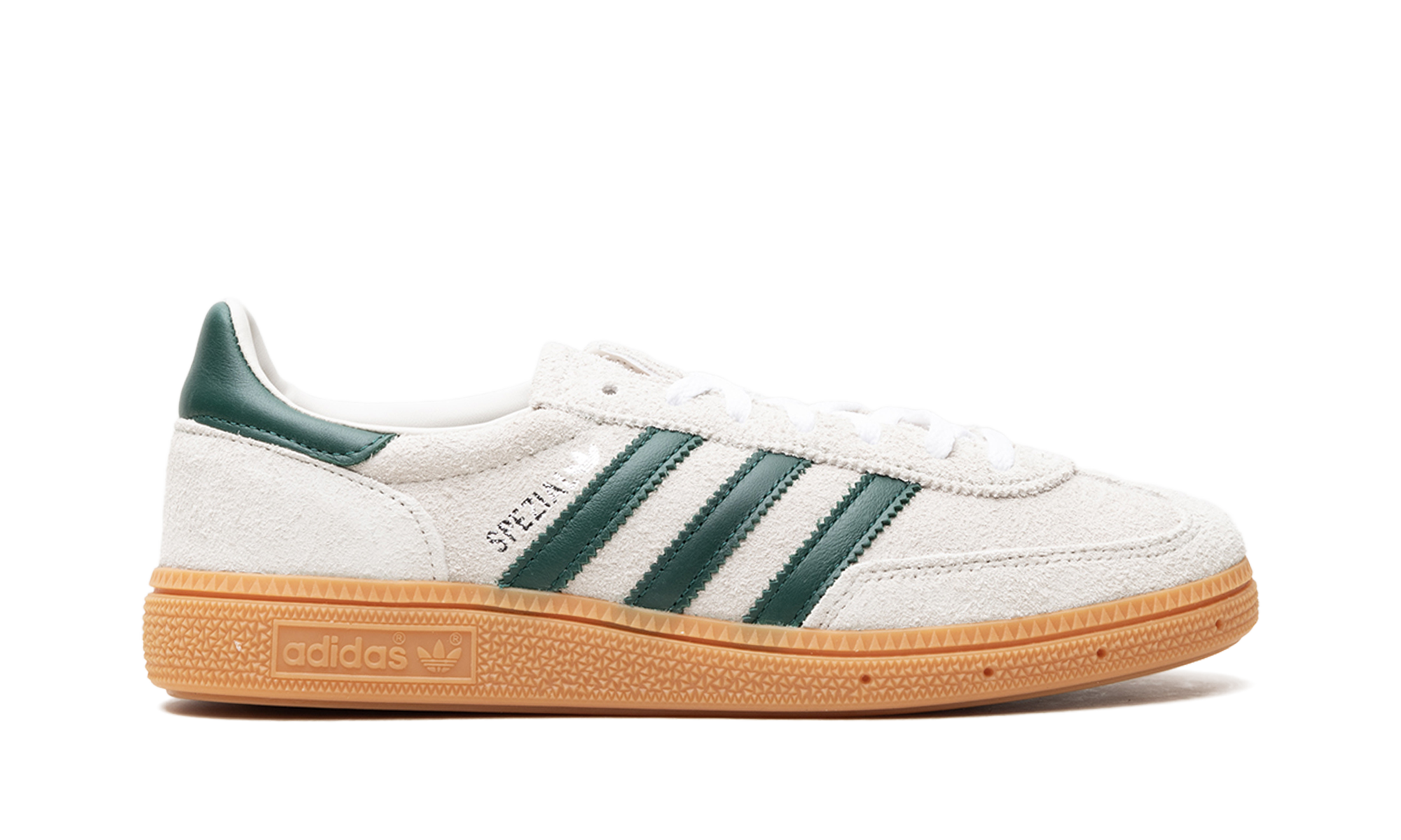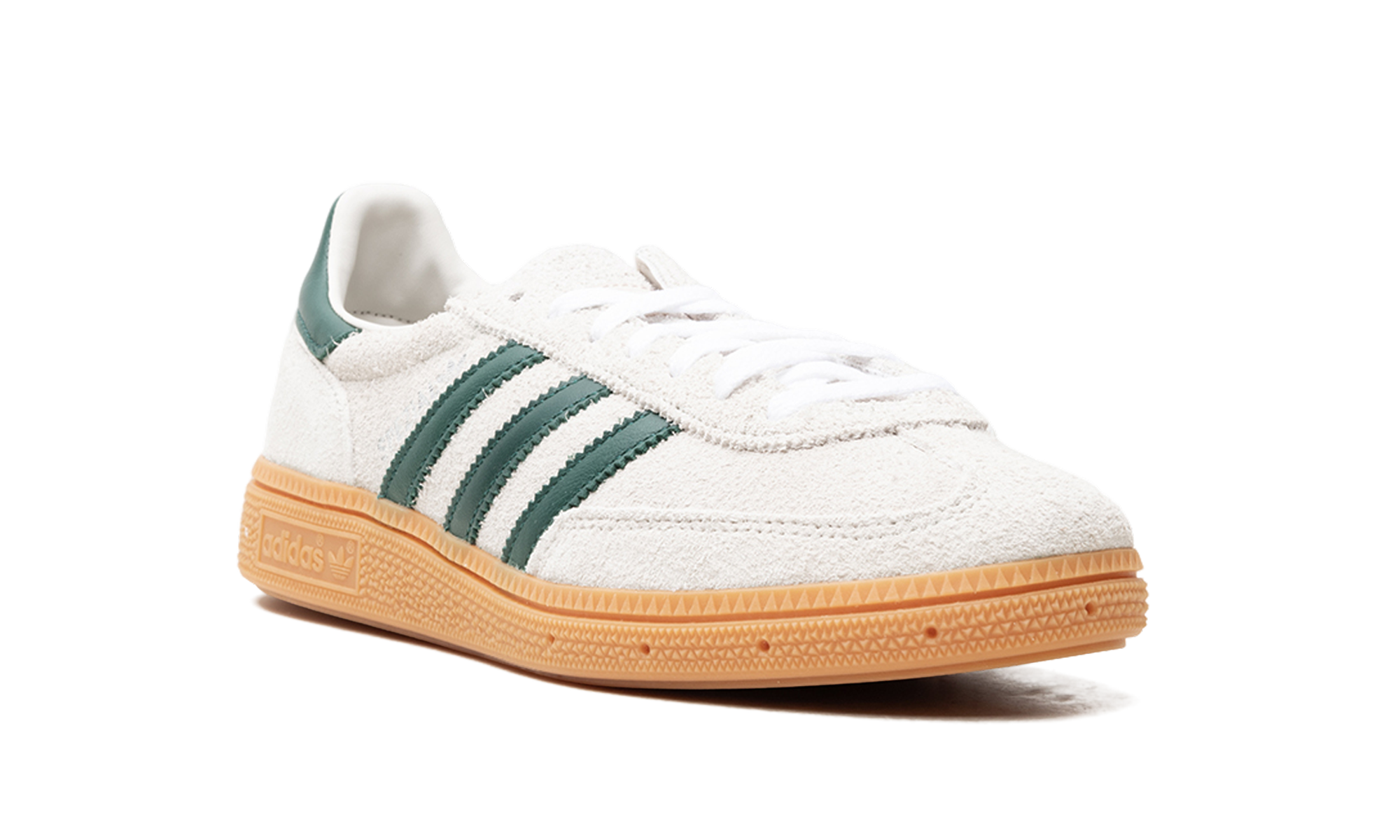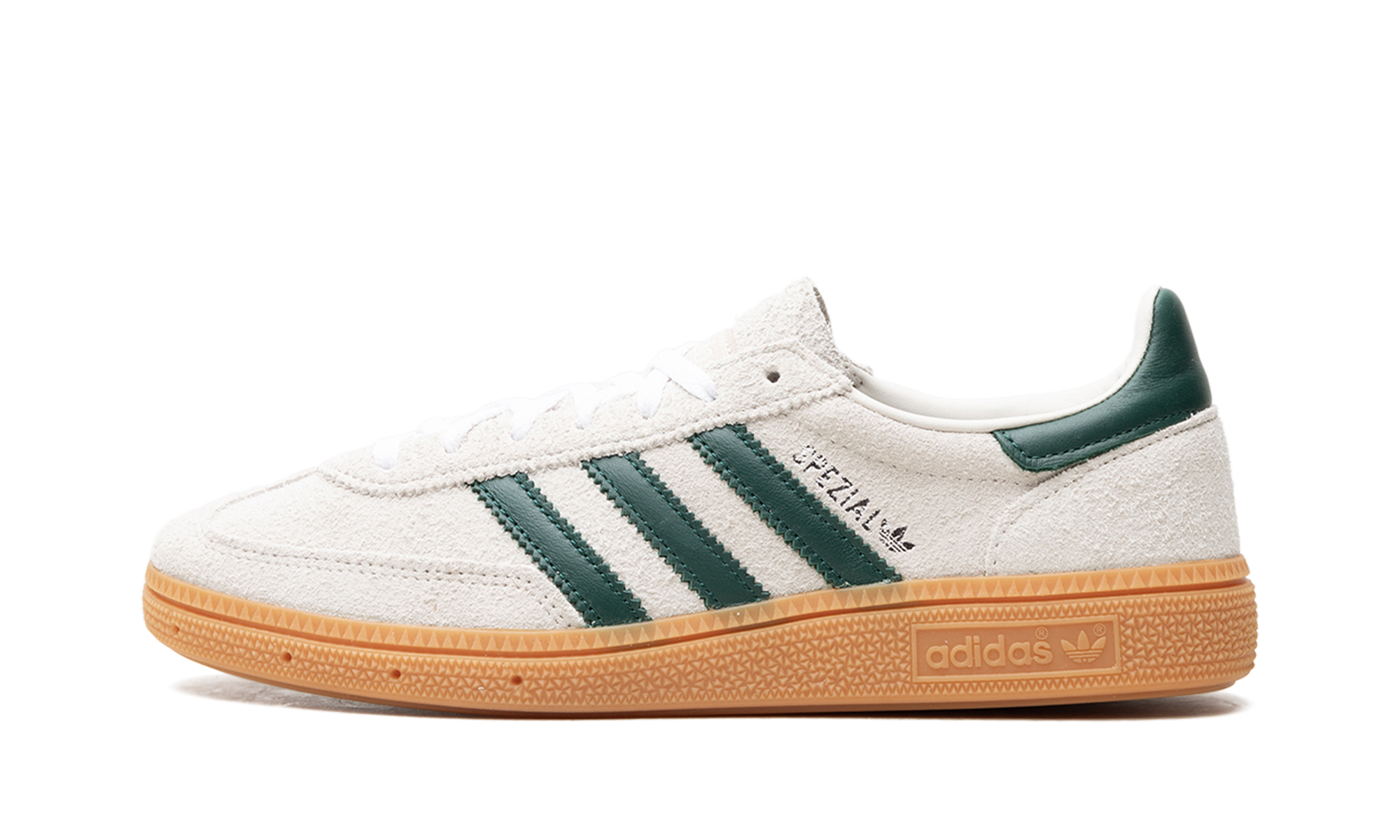 Unleash a wave of classic sporty elegance with the women's Adidas Handball Spezial Wmns, the "Indoor Court Classic," in a crisp "White Green" colorway. This timeless silhouette features a clean leather upper in Core White, perfectly accented by vibrant Collegiate Green serrated Three Stripes and a matching heel tab. Resting on a durable rubber cupsole, this shoe blends vintage style with comfortable durability, making it the perfect choice for a chic, retro-inspired everyday look.
