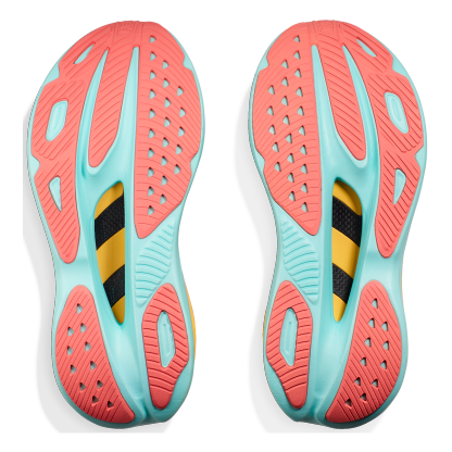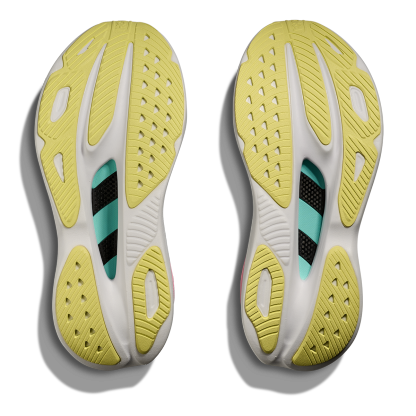 Carbon fiber plate bows in the middle for an amazingly suspended feeling.