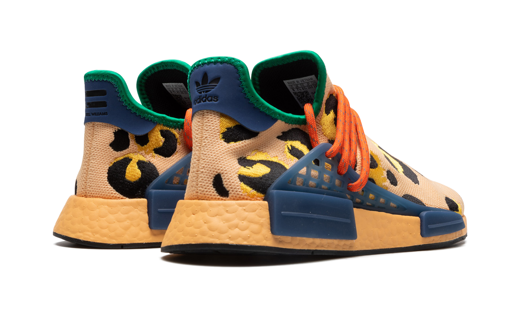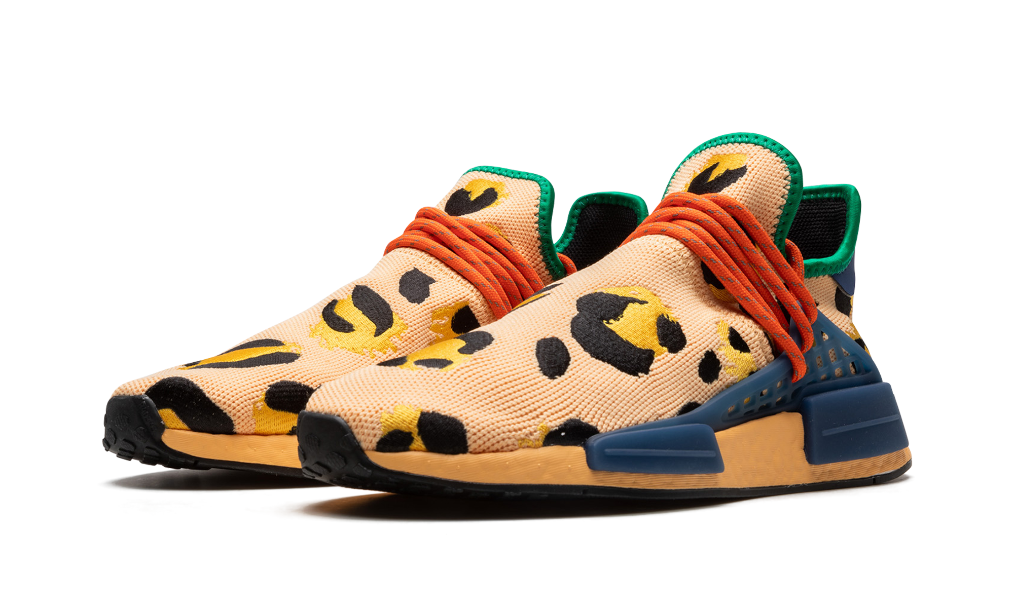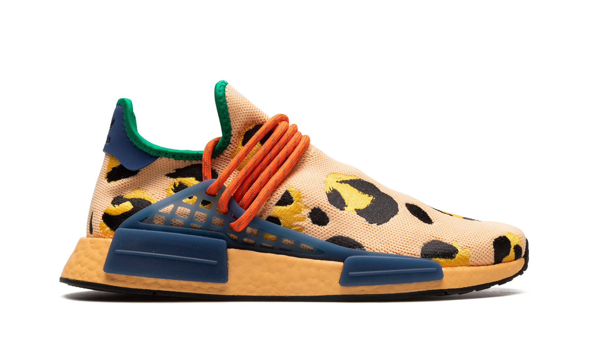 The Pharrell x adidas NMD Hu “Animal Print” is a bold colorway of Pharrell’s popular signature shoe inspired by nature. The NMD Hu “Animal Print” features an eye-catching cheetah print pattern on its Light Coral-colored Primeknit upper. The look is contrasted with red rope laces that are integrated into the blue TPU midfoot “cage” anchored onto the midsole. Dual adidas and Pharrell branding appears on the heel tab. Underfoot, an orange-tinted Boost foam midsole provides the wearer with a responsive ride. Release date: September 17, 2022