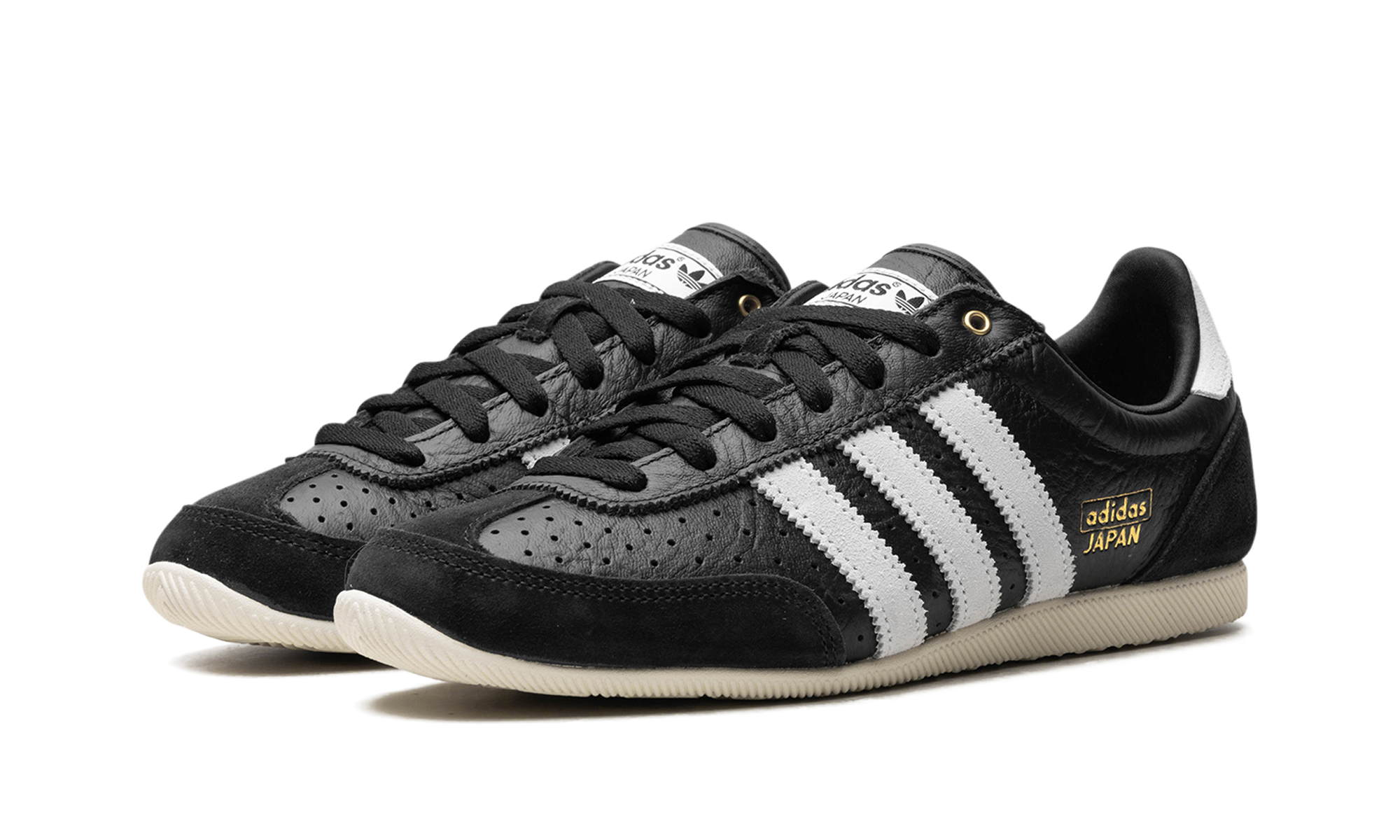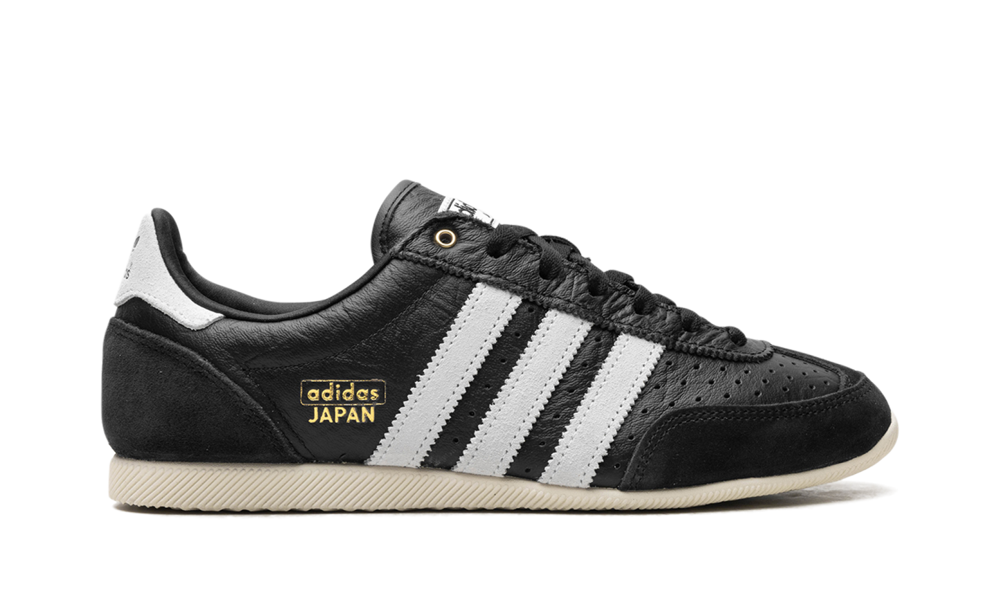 The Adidas Japan WMNS "Core Black Cloud White" offers a sleek, retro-inspired aesthetic in a versatile colorway. This women's model features a "Core Black" upper, contrasted sharply by the "Cloud White" Three Stripes and heel tab. A streamlined design and minimalist construction make this low-profile sneaker a perfect, versatile addition to any casual rotation.