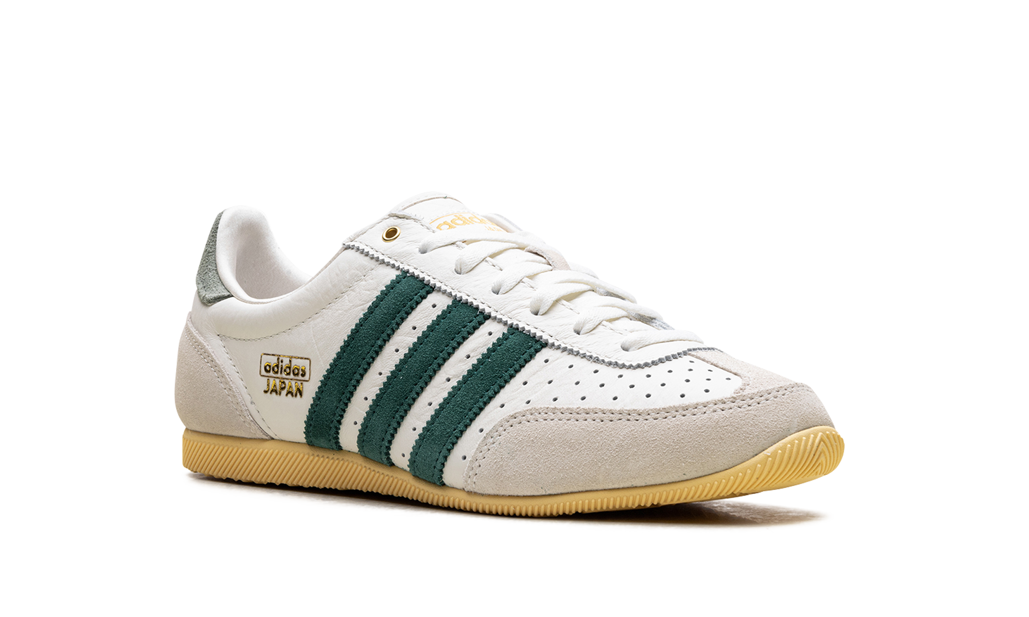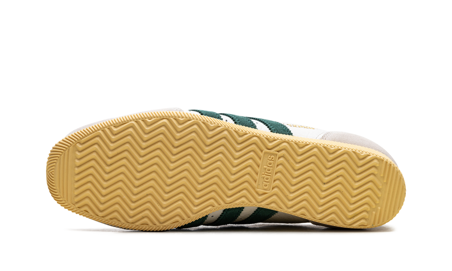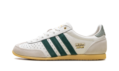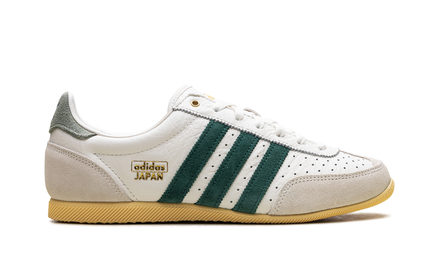 Relive a piece of athletic history with the Adidas Japan Wmns "Off White Collegiate Green" sneaker. A faithful reissue of a 1964 trainer, this shoe keeps the iconic slim, low-profile design that launched in Japan. The vintage look is perfected with a tumbled perforated leather upper in Off White, accented by the Collegiate Green serrated 3-Stripes. Classic details like the double-stitched T-toe and a durable rubber outsole offer a clean, premium, and versatile style for your everyday rotation.