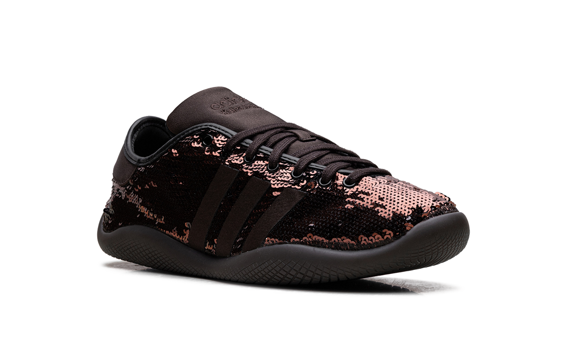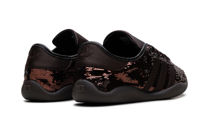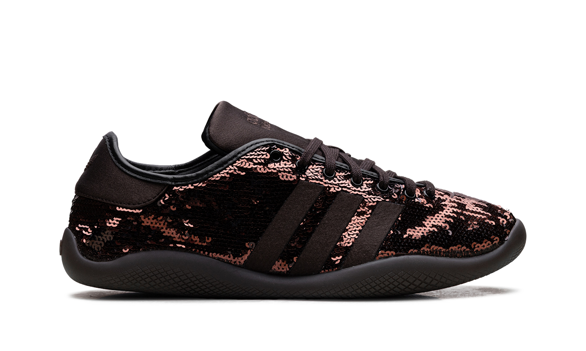 The Wales Bonner x adidas Karintha Lo "Bronze Sequin" delivers a clinical, high-status execution of the British designer’s intellectual luxury aesthetic, masterfully blending Afro-Atlantic heritage with a radical, evening-wear technicality. This iteration features a premium landscape of hand-applied bronze sequins across the entire upper, providing a brilliant, multi-dimensional profile that catches light from every angle. The design is defined by its low-profile, ballet-inspired strike, utilizing a specialized chocolate-brown suede on the Three Stripes and tongue to provide a sophisticated, matte contrast against the explosive shimmer. Grounded by a sleek, anatomical rubber outsole and finished with signature Wales Bonner branding, this release successfully pairs the raw energy of 70s dancehall style with a refined, "Studio 54" couture aesthetic.