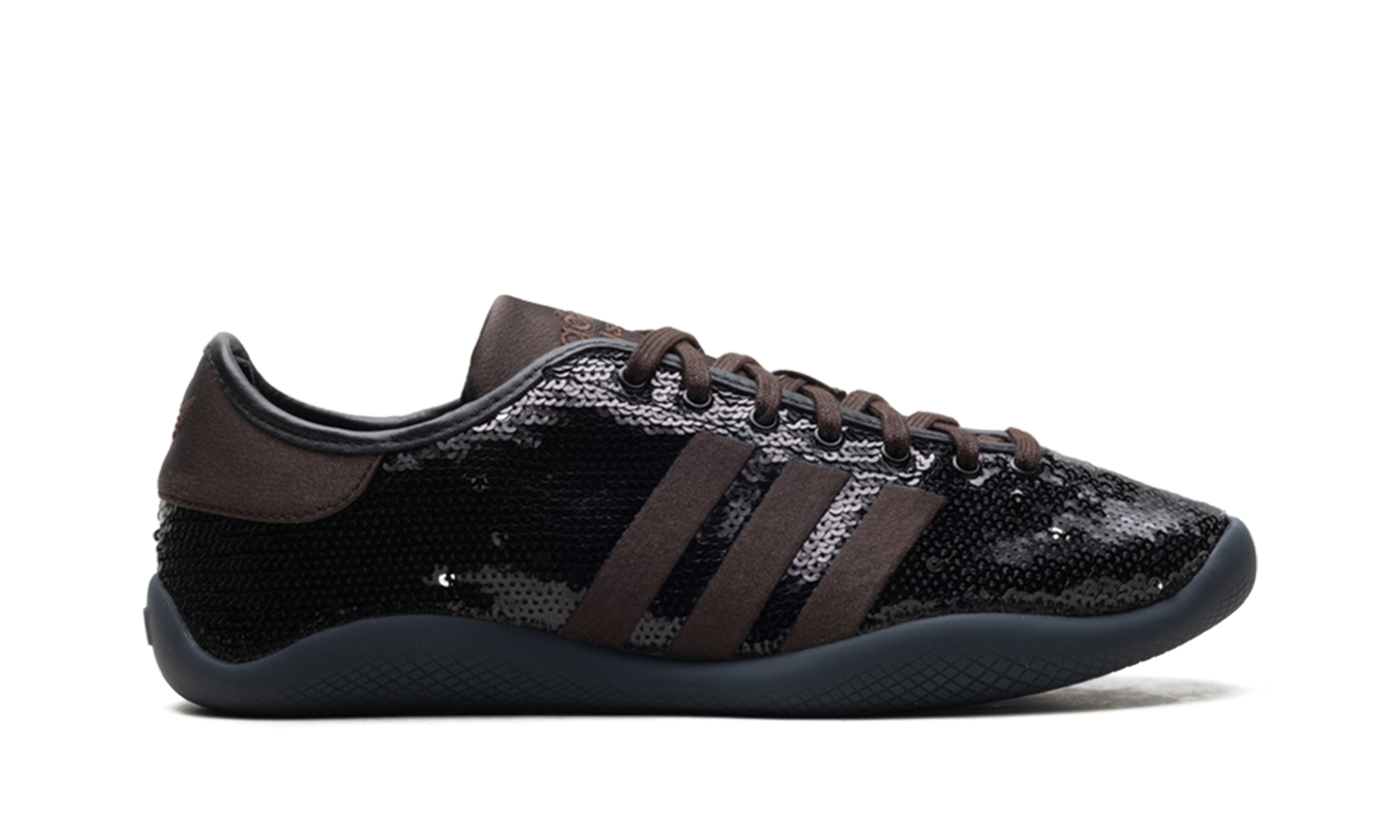 Step into elevated style with the magnificent ADIDAS Karintha "Wales Bonner - Black Dark Brown Sequin." This stunning collaboration transforms a classic silhouette into a dazzling, luxury statement piece. The upper is completely covered in shimmering black and dark brown sequins, offering an unmatched textural depth and sophisticated shine. Merging the sportswear heritage of Adidas with Wales Bonner’s distinct, high-fashion aesthetic, this exclusive shoe is perfect for the modern enthusiast who wants a bold look. Secure this unique piece to add instant glamour to your rotation.