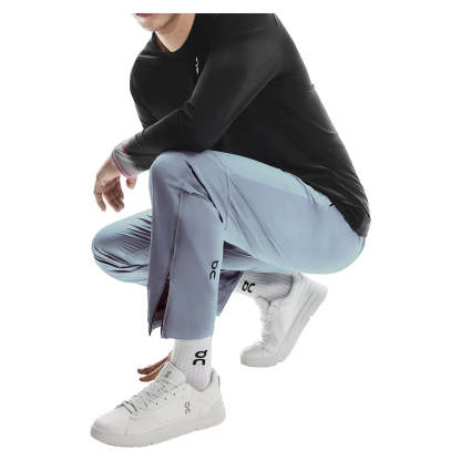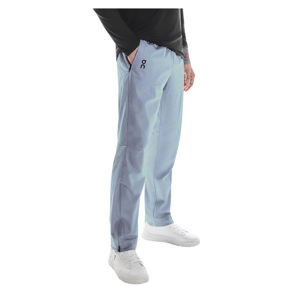 Stay ready for action with the On Men's Courtside Tennis Pant. Featuring a comfortable elastic waistband and zippered side pockets for secure storage, these pants are designed for convenience and performance. Zippered vents at the hemline enhance ventilation and make it easy to adjust over your shoes. Perfect for warming up or relaxing in style, they combine functionality with a sleek, modern look.
