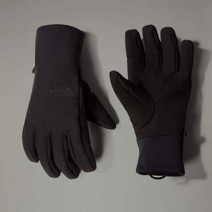 - Gloves. They keep your hands warm, but they leave you a little restricted when it comes to using your phone. Not the Apex Etip Gloves. They have full touchscreen compatibility and a grippy silicone palm to minimise accidental phone dropping. They’re made with recycled, stretchy fabric and the lining is soft brushed polyester. All in all, they provide light warmth for autumn and spring activities.