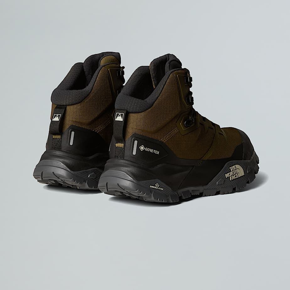 - Built for technical and unpredictable terrain, the Offtrail GORE-TEX Hiking Boots will help you chart your own course on or off the trail on your next hike or multi-day adventure. A highly durable three-layer waterproof GORE-TEX membrane seals out rain and water when traversing wet trails, while a reinforced heel cup is designed to lock in your foot for long-distance comfort. The Surface CTRL rubber outsole is optimised for weight and versatility and gives tenacious traction on uneven terrain. This means you can go fast and light without ever losing your footing.