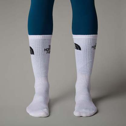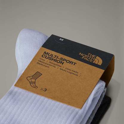 Go further, push harder. Our three-pack Multi Sport Cushion Crew Socks feature cushioning on the heels and toes, a slightly padded sole and targeted vent zones that keep your feet cool and ready to explore more – right up to the final mile.