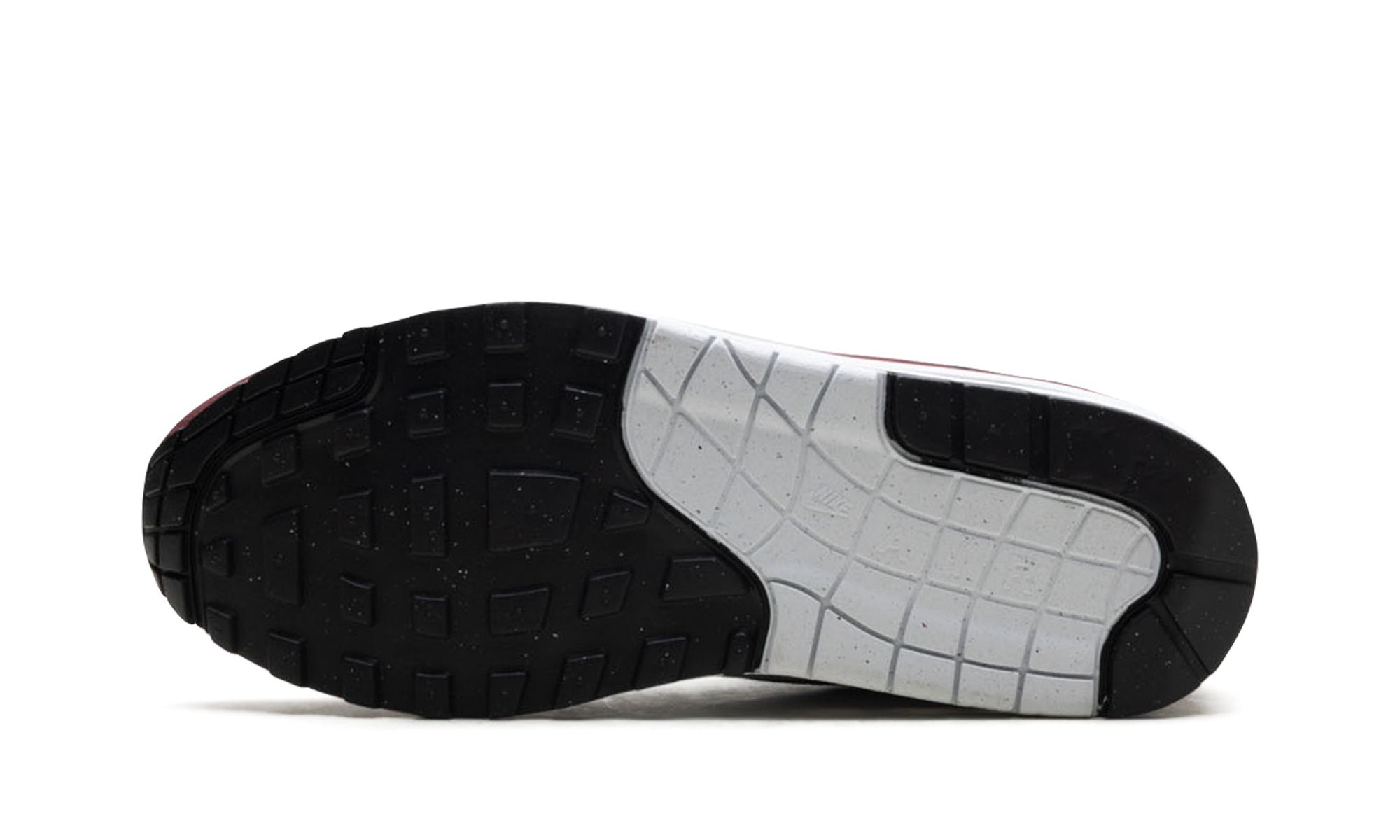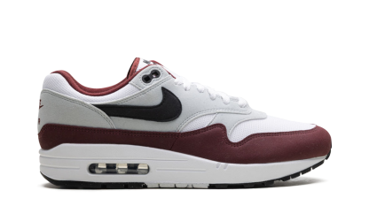 The Nike Air Max 1 "Dark Team Red" is a colorway of the retro performance running shoe with maroon-colored accenting. The Air Max 1 was designed by iconic sneaker designer Tinker Hatfield and first released in 1987 as a running shoe. Today, the silhouette is beloved for its timeless design and comfort. This appealing colorway features a white mesh base contrasted with grey felt overlays and a Dark Team Red mudguard wrapping the upper. A black Swoosh appears on each side. Dark Team Red “Nike Air” branding is embroidered on the heel and “Nike Air Max” detailing is found on the tongue. Dark Team Red