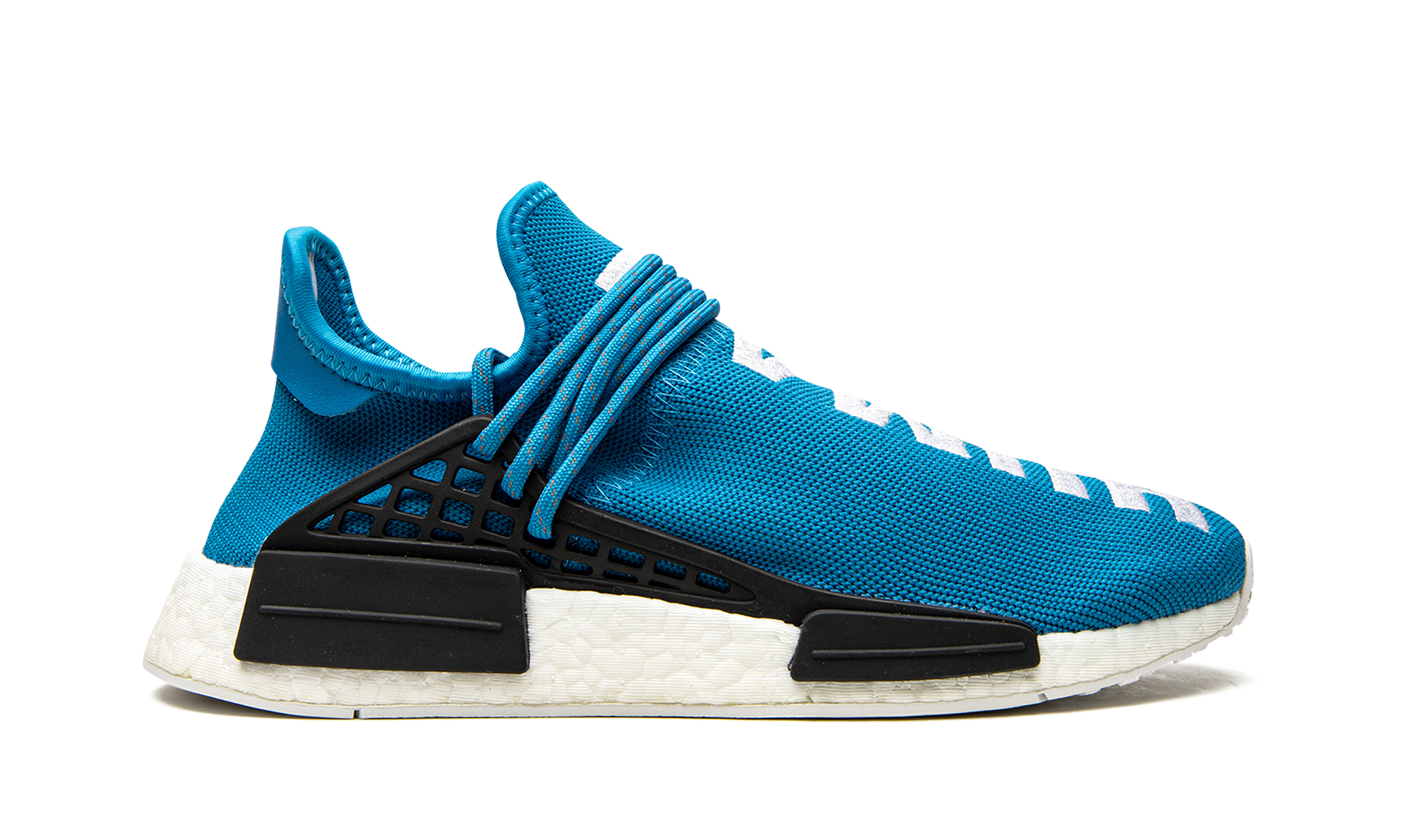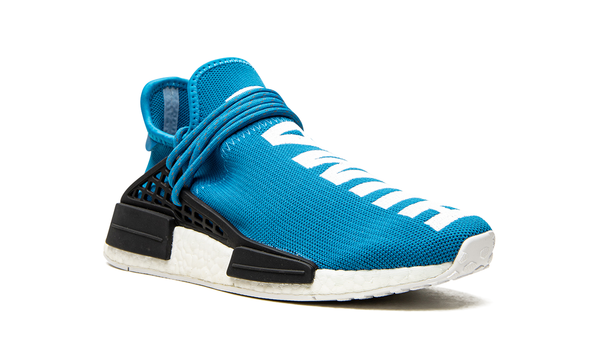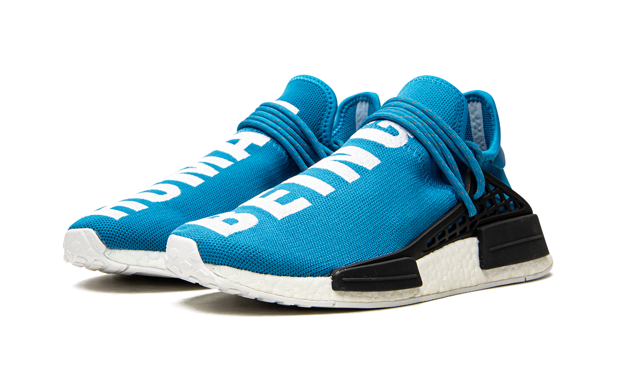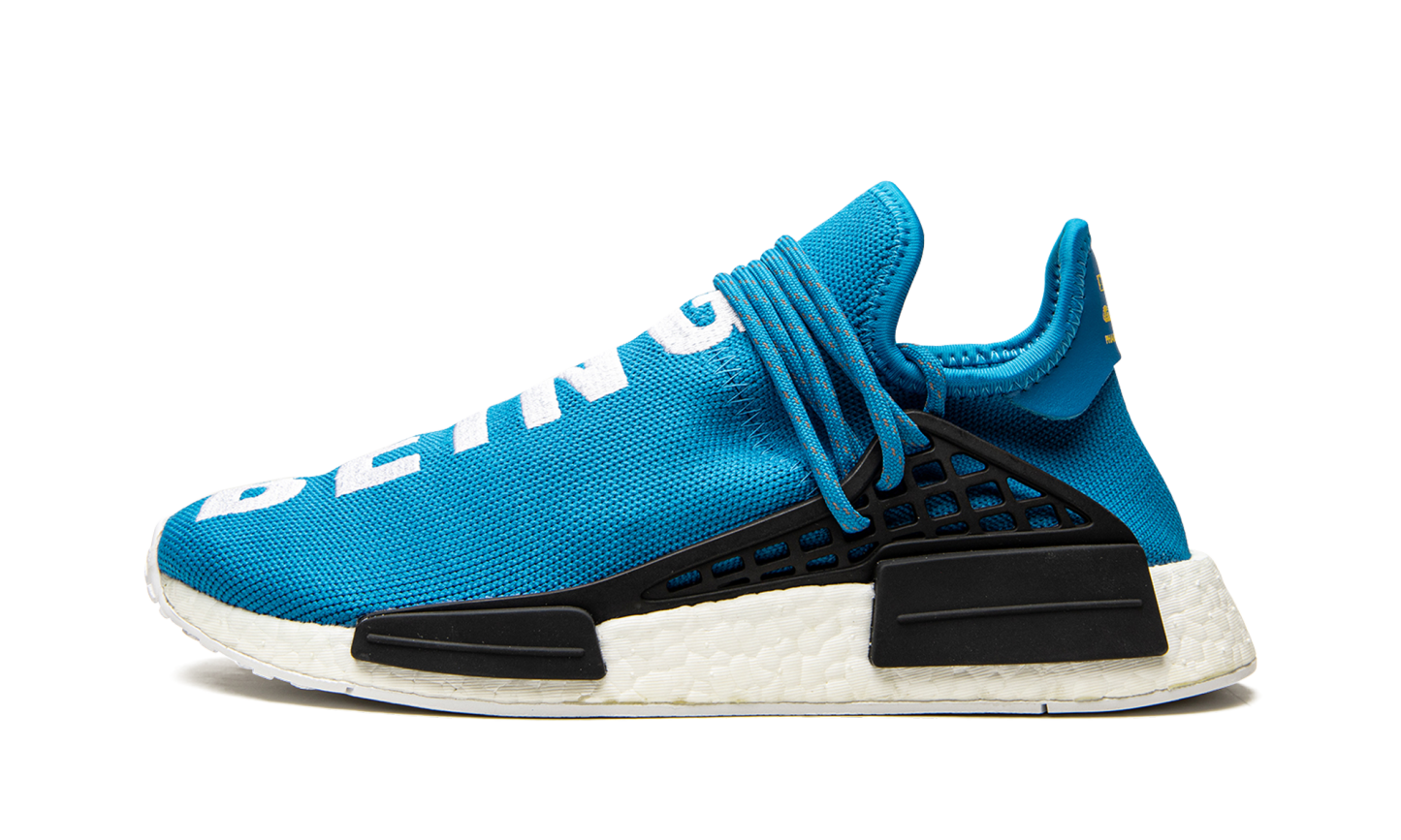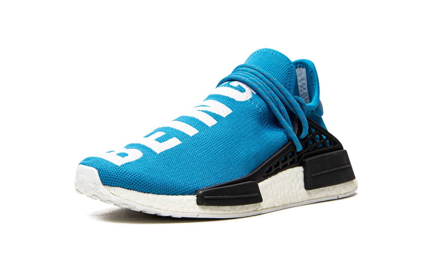 Part of the initial release of the Pharrell x adidas NMD Human Race, this bright blue sneaker helped kick off a craze for the silhouette in 2016. The eye-catching edition has "Human" stitched across the top of the left shoe, and "Being" stitched across the top of the right.