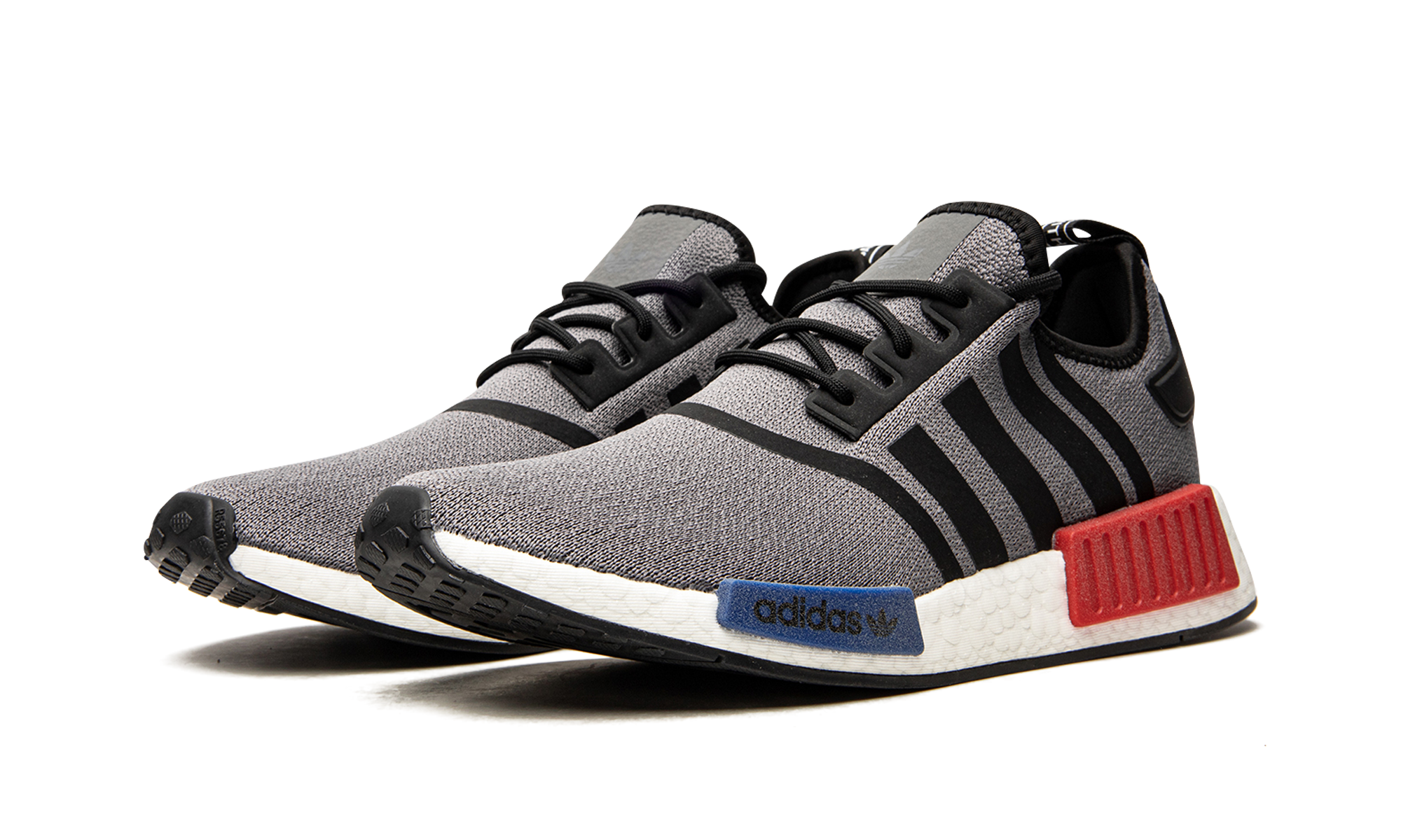 The adidas NMD_R1 "Grey OG" brings back the iconic red-and-blue midsole plug pairing of the original silhouette that launched in 2015. The lifestyle sneaker features clean lines with a grey Primeknit upper contrasted by black decals that highlight the toe box, Three Stripes on each side, collar, and heel tab. A stark white Boost foam midsole is paired with red and blue block-like bumpers and the style is finished with a black rubber outsole.