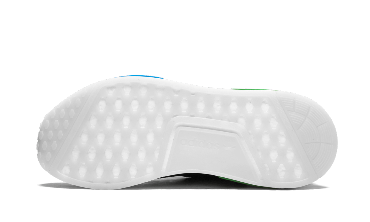 Japan’s Mita Sneakers and adidas Consortium produced another outstanding collaboration with this NMD TS1 in 2018. The stylish Mita x adidas Consortium NMD TS1 features a mesh upper with a unique shroud and bungee cord lacing system. The sneaker's predominantly black upper has green and blue accents on the NMD’s signature midsole inserts as well as on the “tape” fused onto the upper. Mita’s signature chain-link fence design from their retail location is also referenced on the tonal overlay covering the upper of the NMD TS1. The final touch for the Mita Sneakers x adidas Consortium NMD TS1 is the translucent white outsole which completes the distinct look.