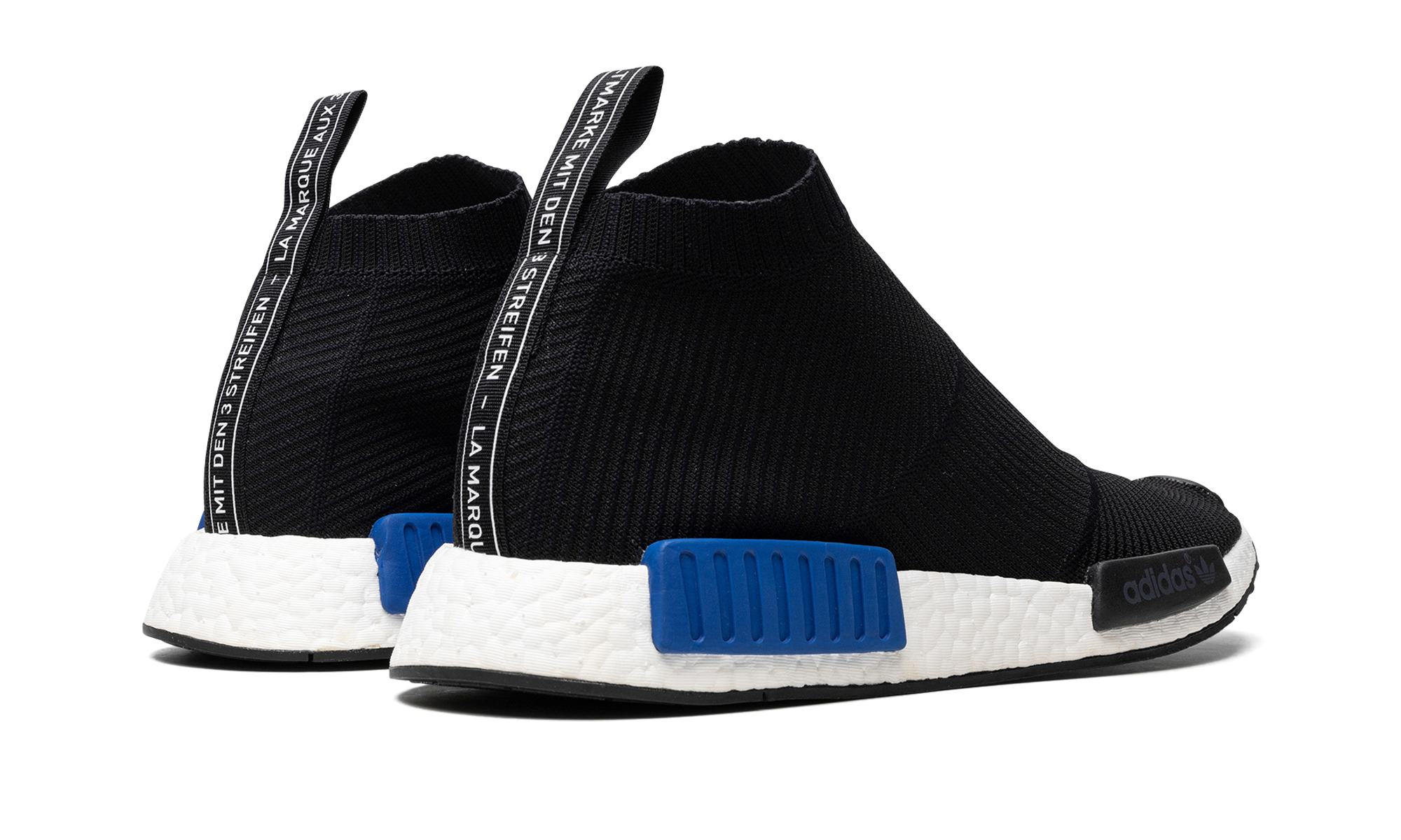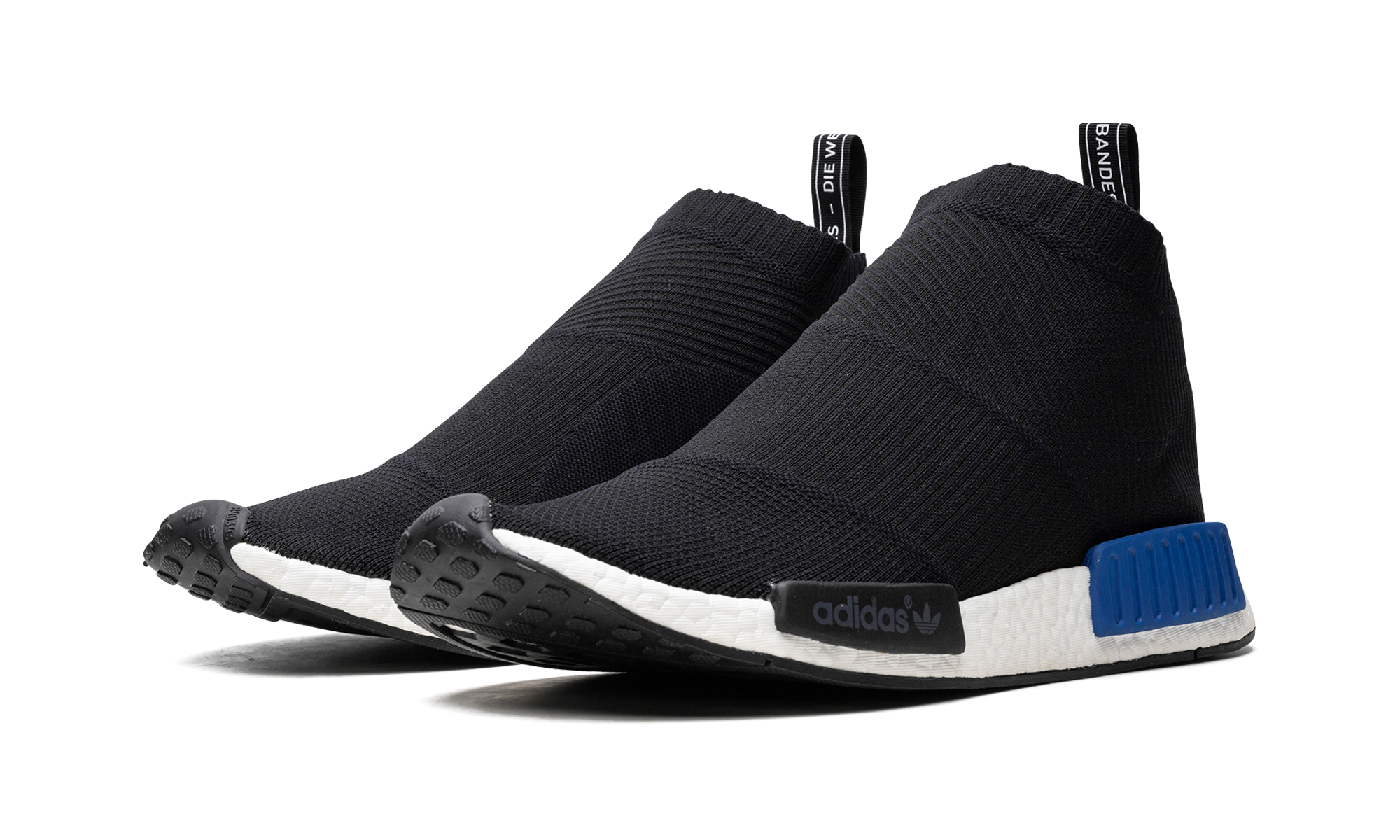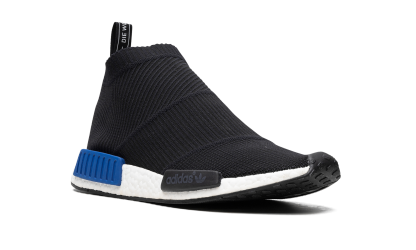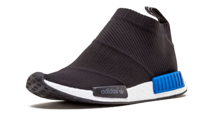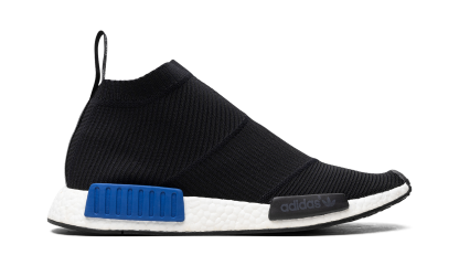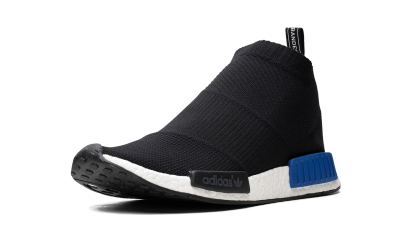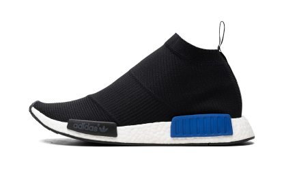 The City Sock iteration of the popular adidas NMD is up for grabs here in its all-black Primeknit upper with bright blue contrast for the rear midsole inserts.