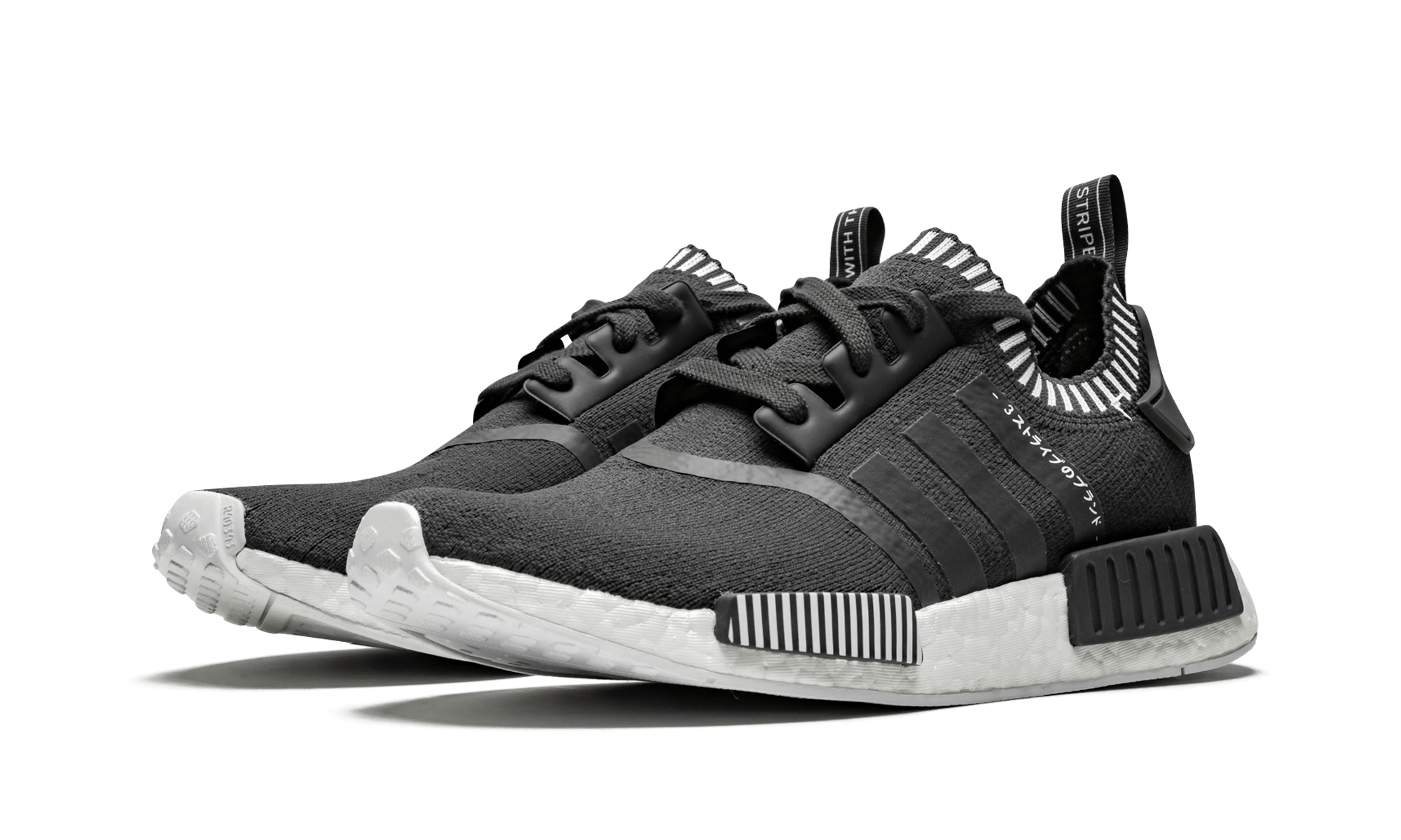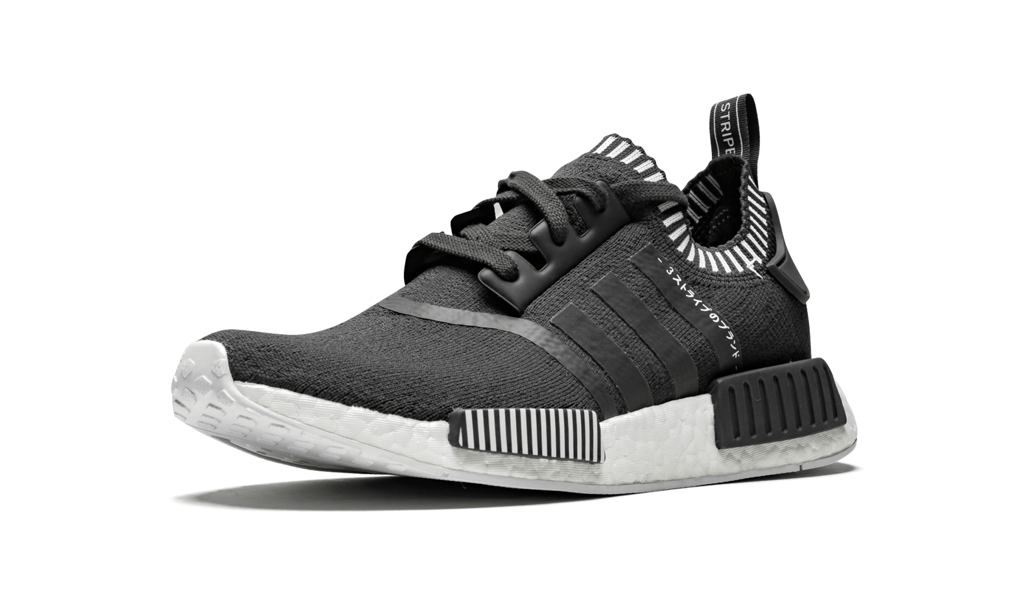 From the limited edition “Japan” pack of the NMD, this is the dark grey colorway with white stripe accents.