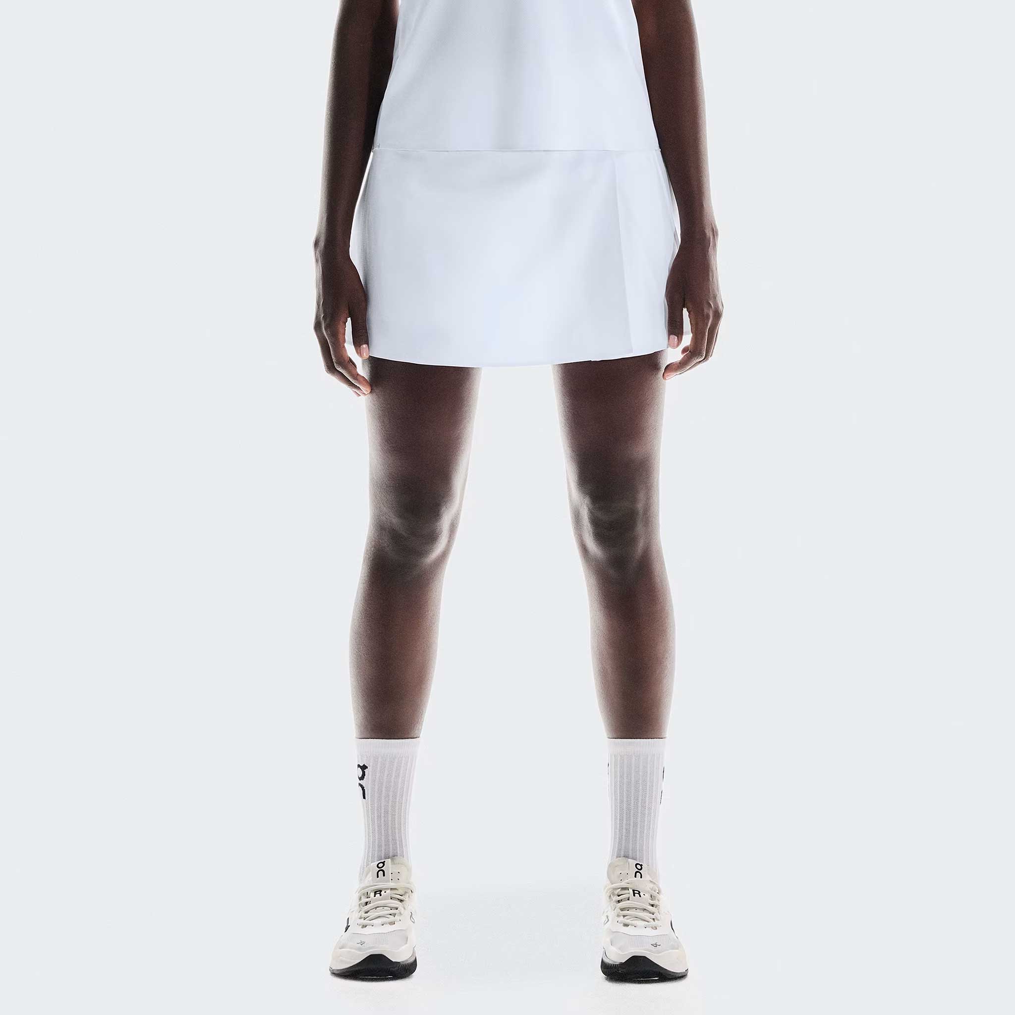 Serve classic style in the On Court Skirt Pleated! Made for dynamic movement, this pleated skirt features a fresh, asymmetrical. Secure inner shorts add confidence, while bonded hems prevent chafing and discomfort. Stash your gear in the two convenient side pockets. Lightweight, stylish, and made with recycled materials, the On Court Skirt Pleated makes easy work of every volley and bounce!