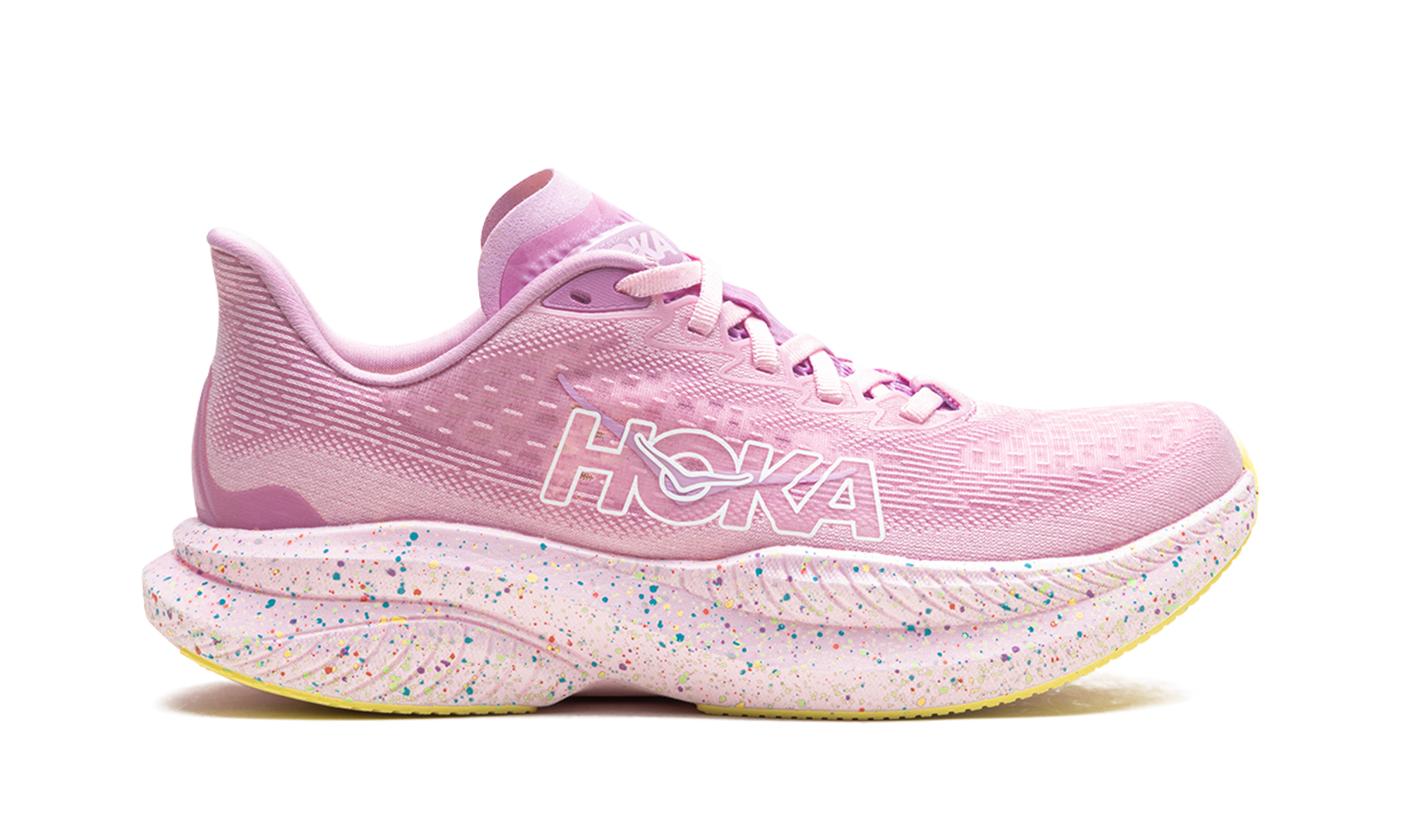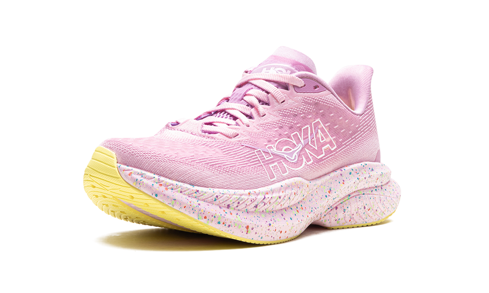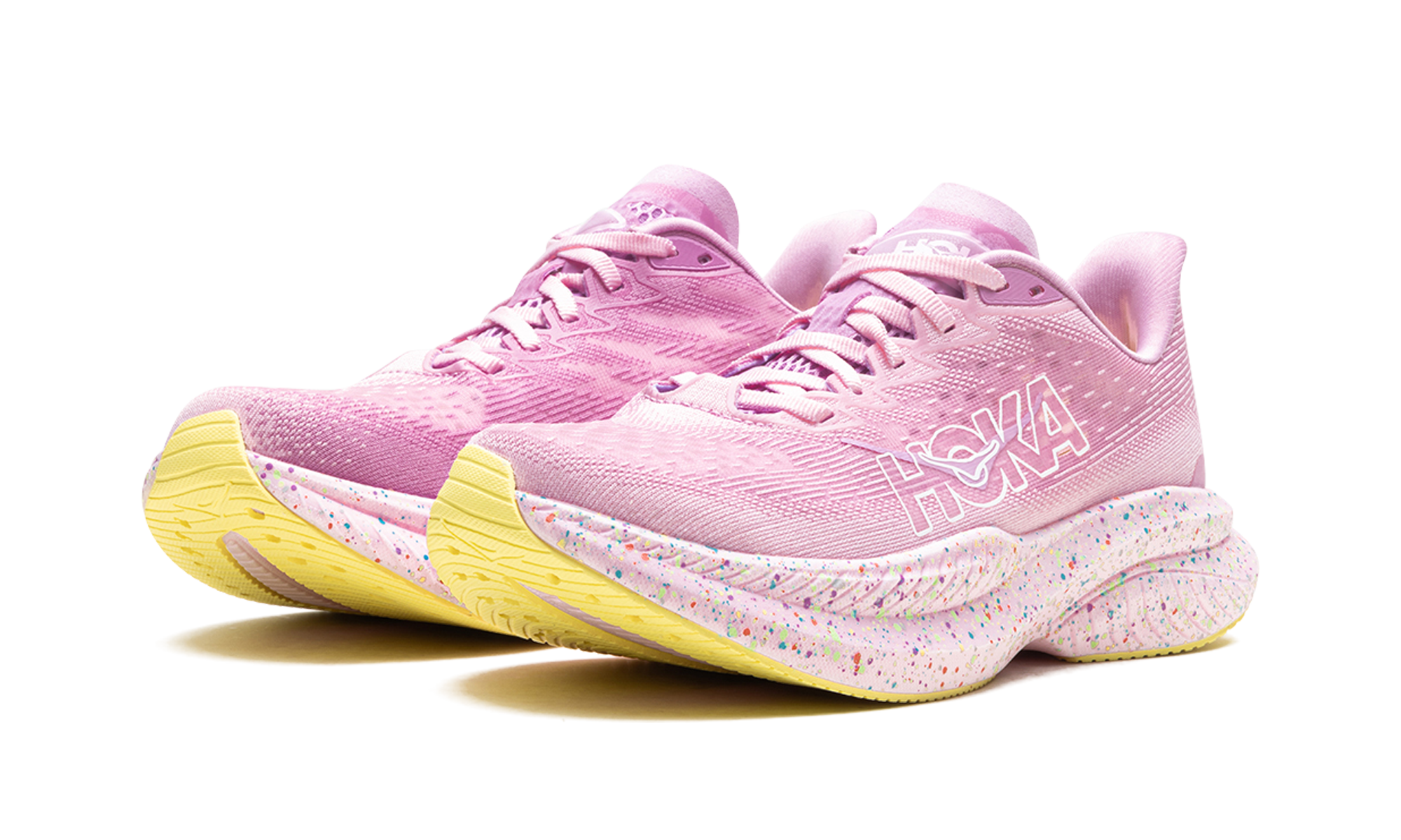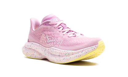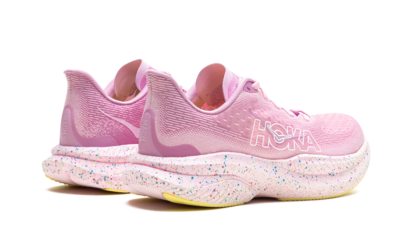 For a fast and fun run, consider the Hoka Mach 6 "Pink / Twilight / Lemonade." This shoe delivers a lightweight and responsive feel, ideal for tempo runs and races. The eye-catching color combination adds a burst of energy to your stride.